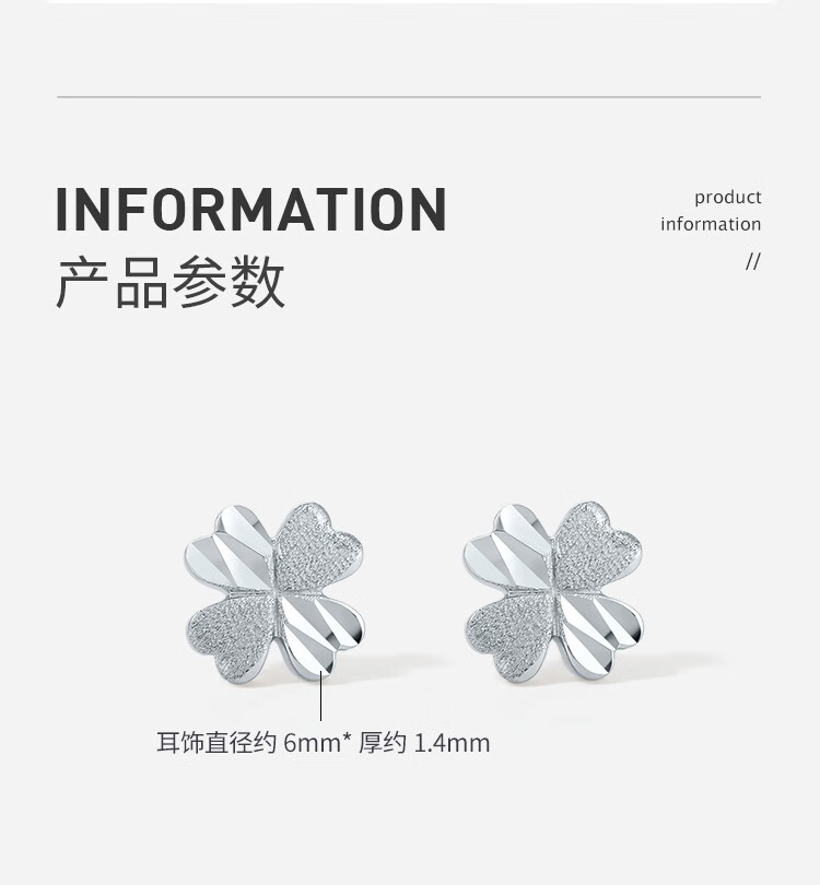 ZLF (ZLF) PT950 platinum earrings for women, lucky four-leaf clover earrings 1.75g