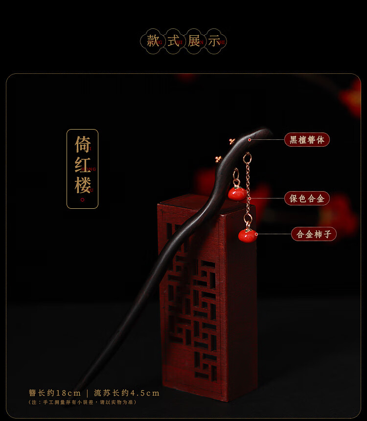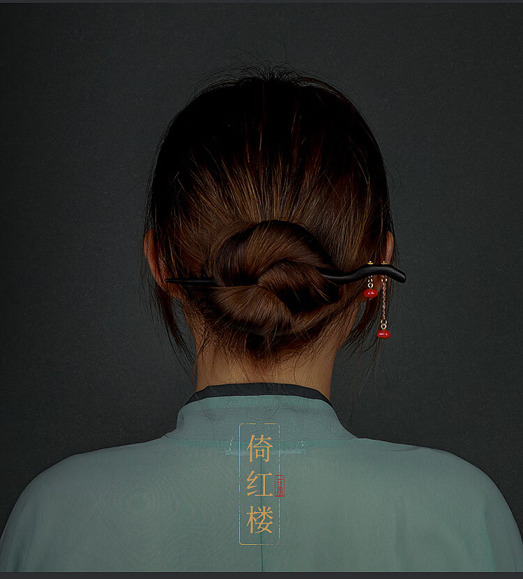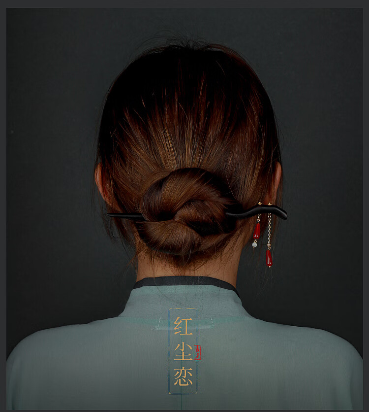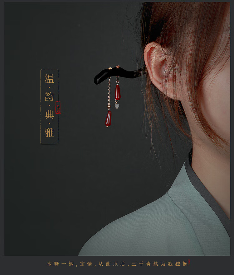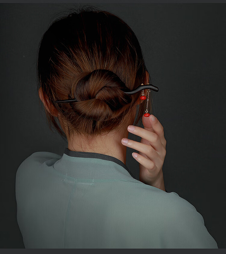 Zhuishi Black Sandalwood Hairpin Ancient Style Tassel Stepping Wooden Hairpin Chinese Style Simple and High-end Updo Mid-Autumn Festival Gift Yihonglou No Specifications