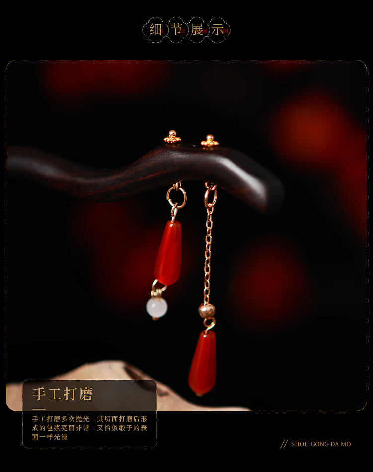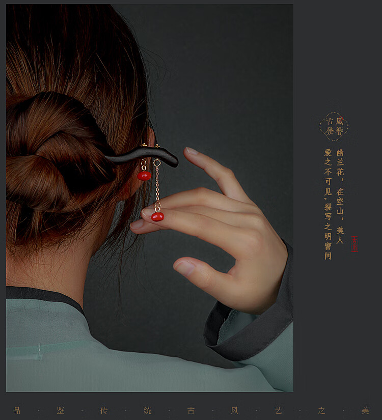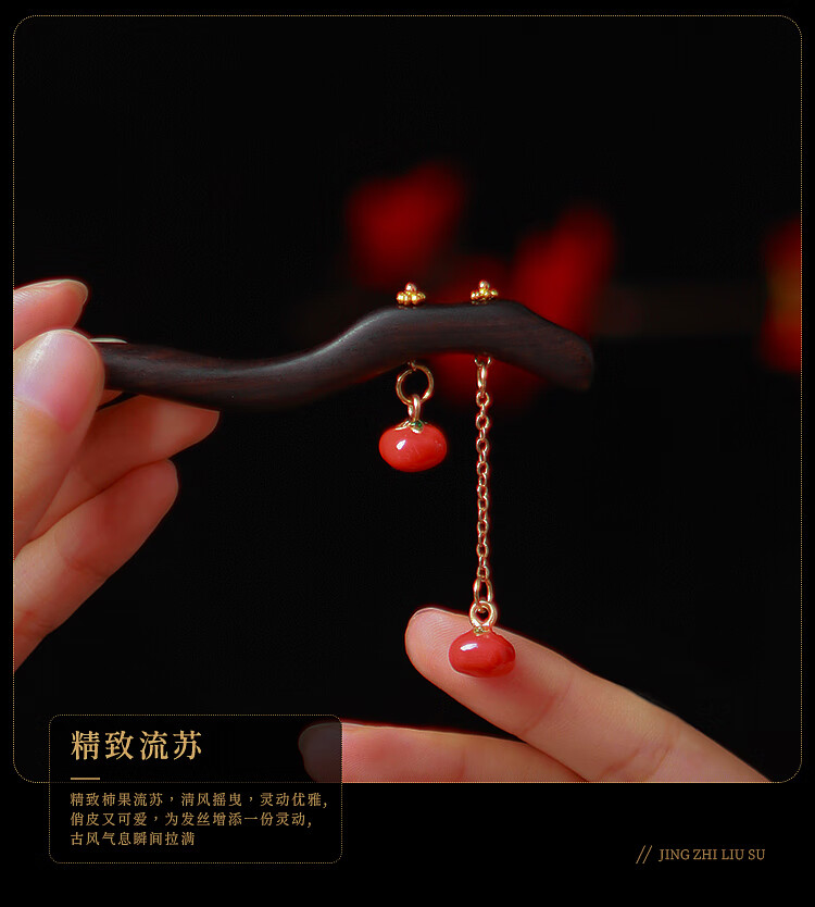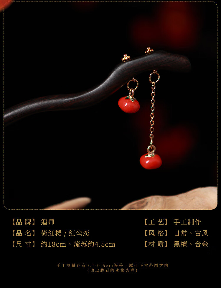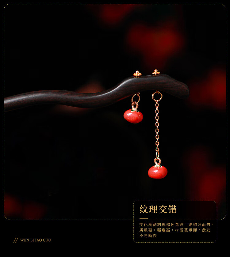 Zhuishi Black Sandalwood Hairpin Ancient Style Tassel Stepping Wooden Hairpin Chinese Style Simple and High-end Updo Mid-Autumn Festival Gift Yihonglou No Specifications