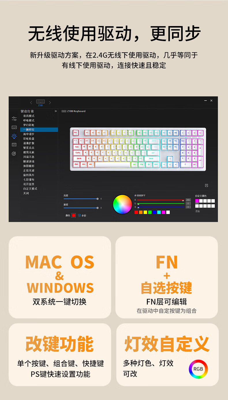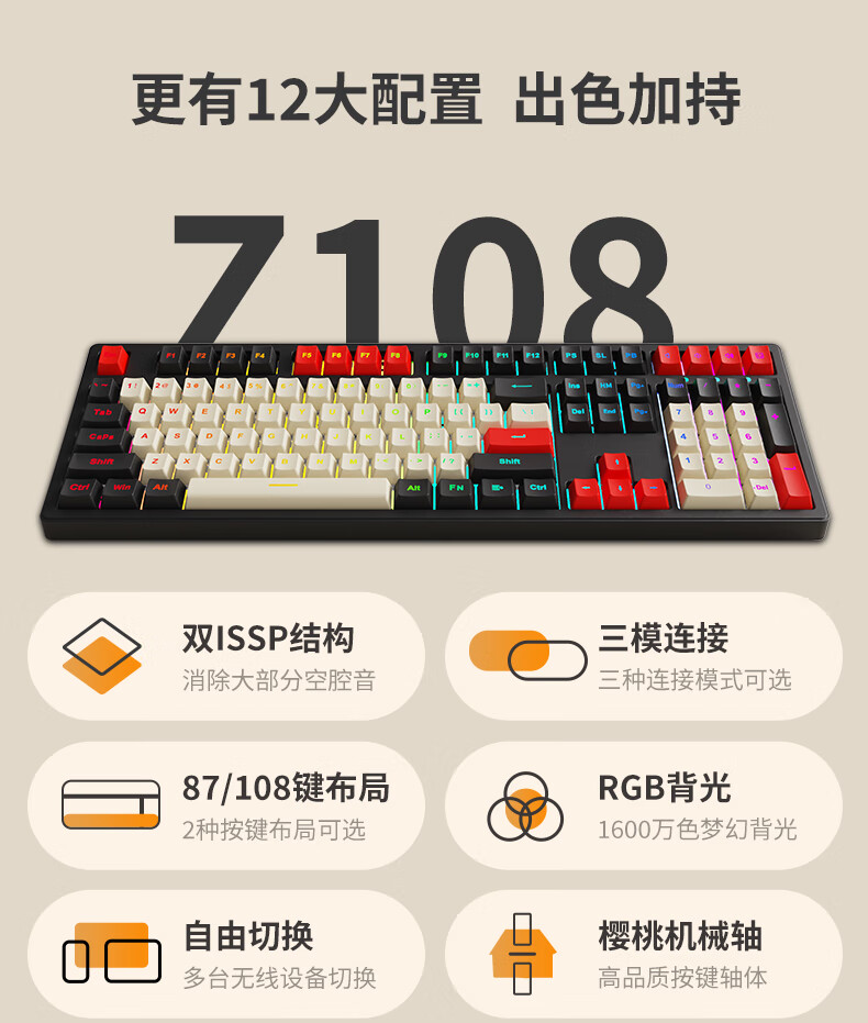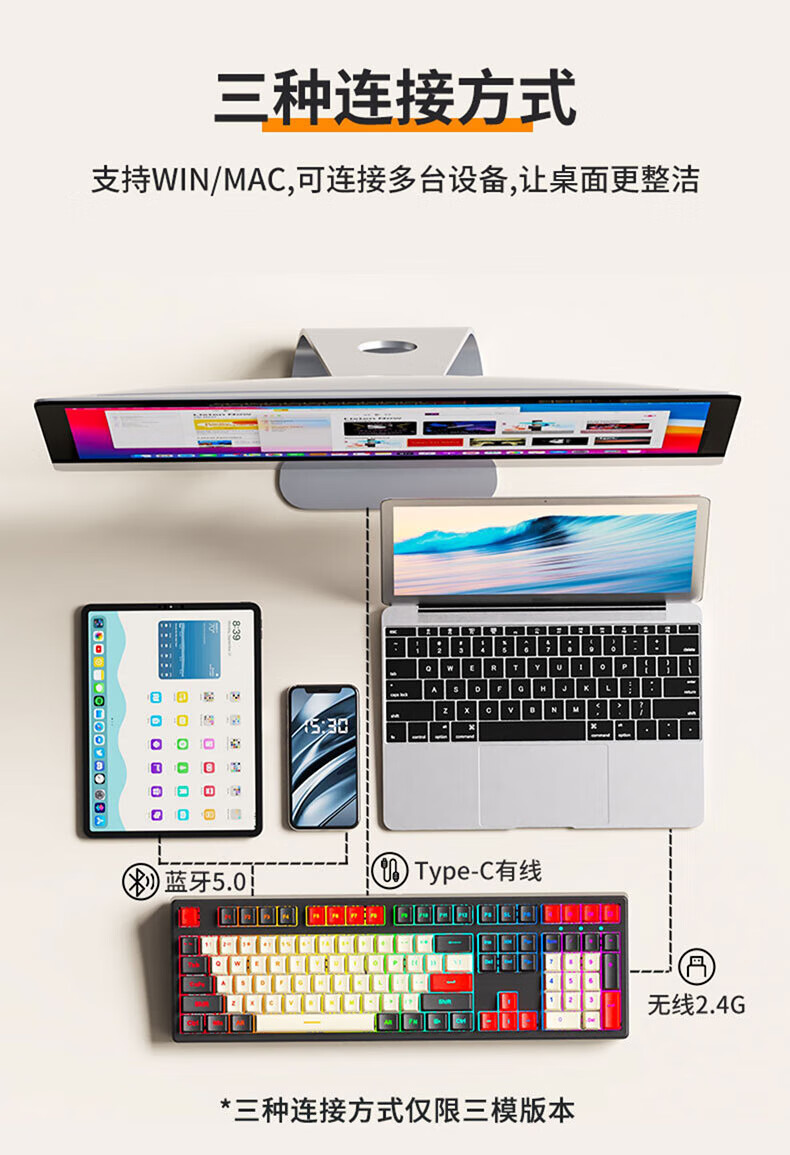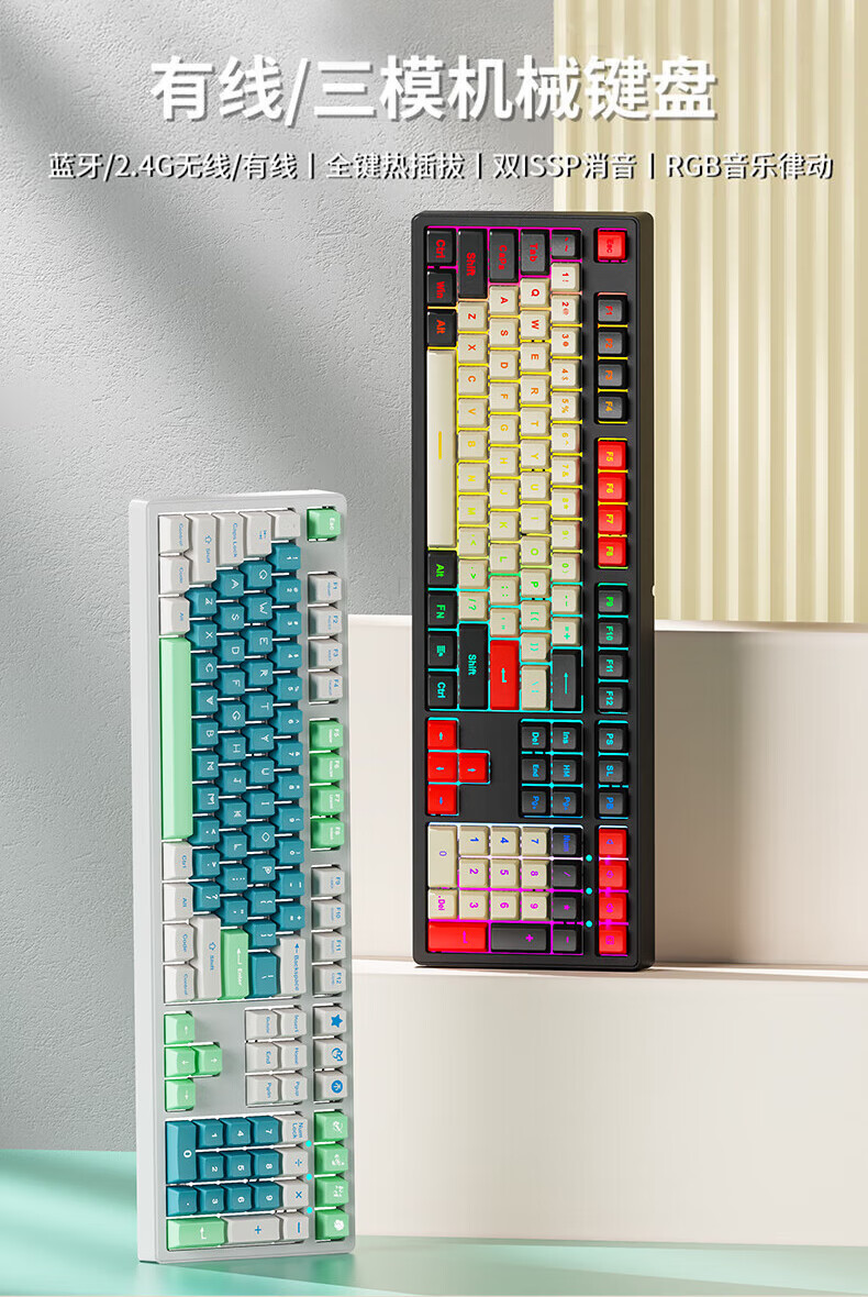 UnoooZ108 Cherry axis wireless mechanical keyboard and mouse set wired Bluetooth three-mode customized RGB game e-sports office side engraving DIY computer notebook special black-white light-108 key wired version German Cherry MX green axis