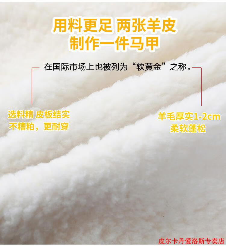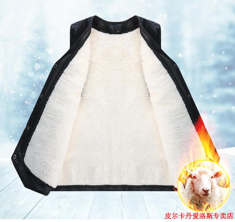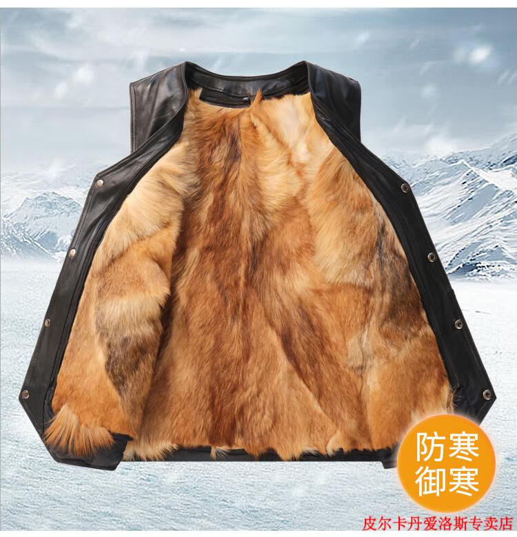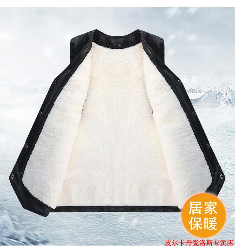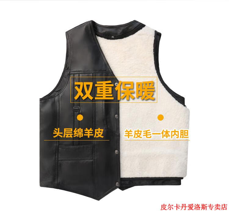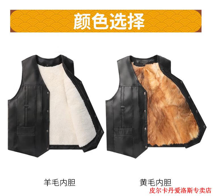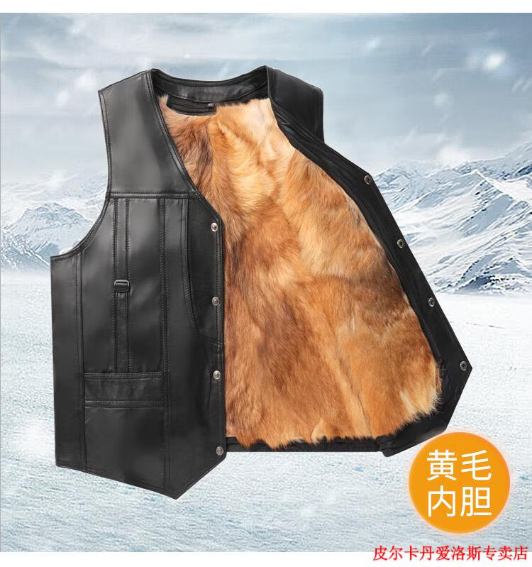 皮尔卡丹(pierre cardin)真皮马甲男士皮毛一体冬季羊毛背心加厚羊皮保暖坎肩中老年人爸爸 黄毛内胆款 3XL 3尺6