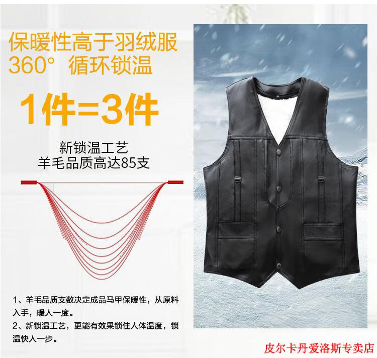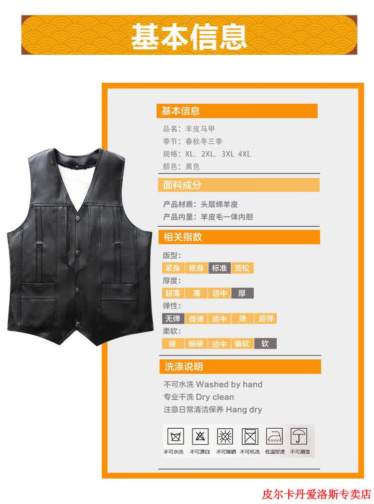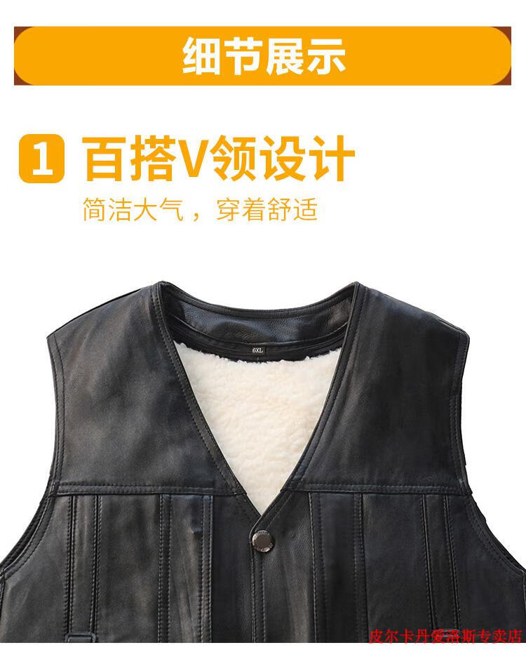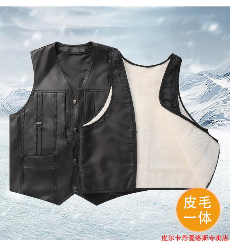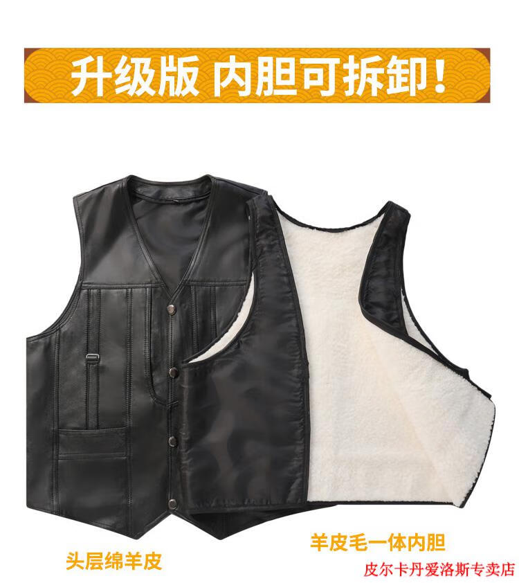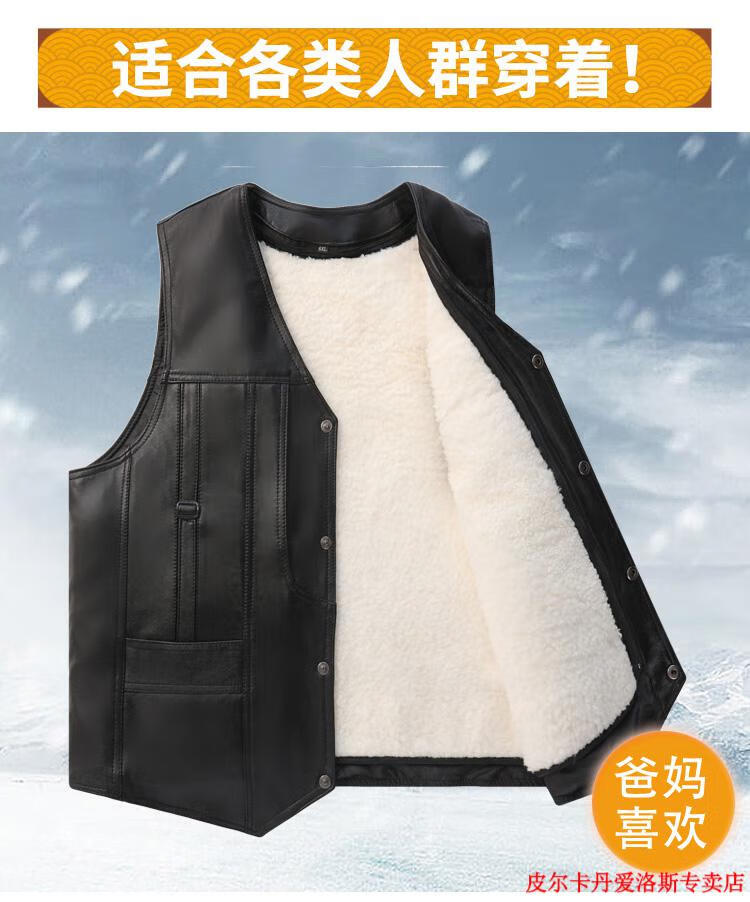 皮尔卡丹(pierre cardin)真皮马甲男士皮毛一体冬季羊毛背心加厚羊皮保暖坎肩中老年人爸爸 黄毛内胆款 3XL 3尺6