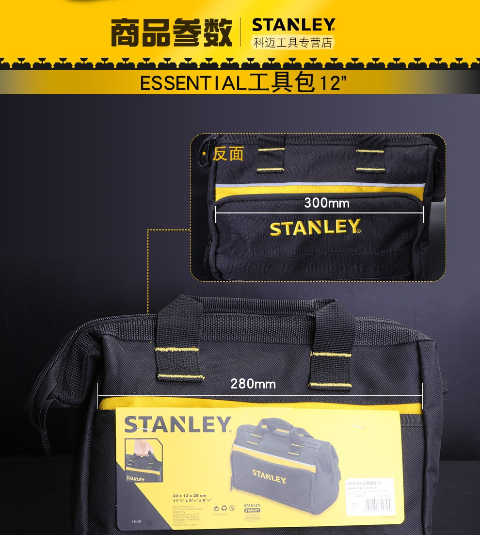 Stanley (STANLEY) ESSENTIAL tool bag thickened wear-resistant canvas bag property maintenance tool bag portable electrician bag handbag 12 inches 1-93-330-23