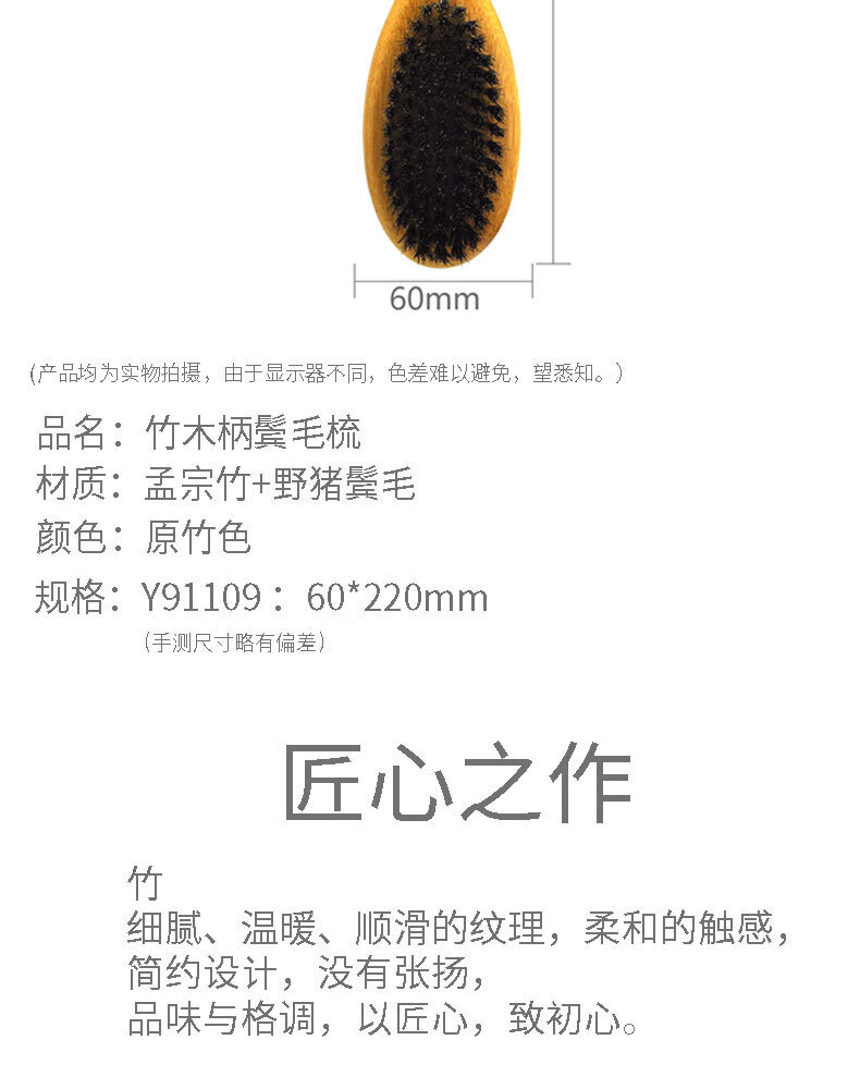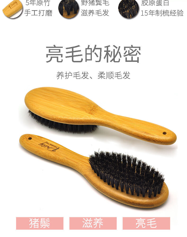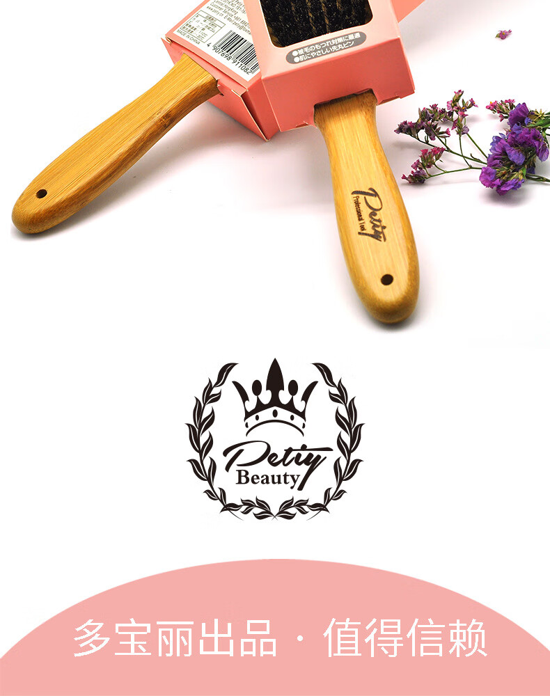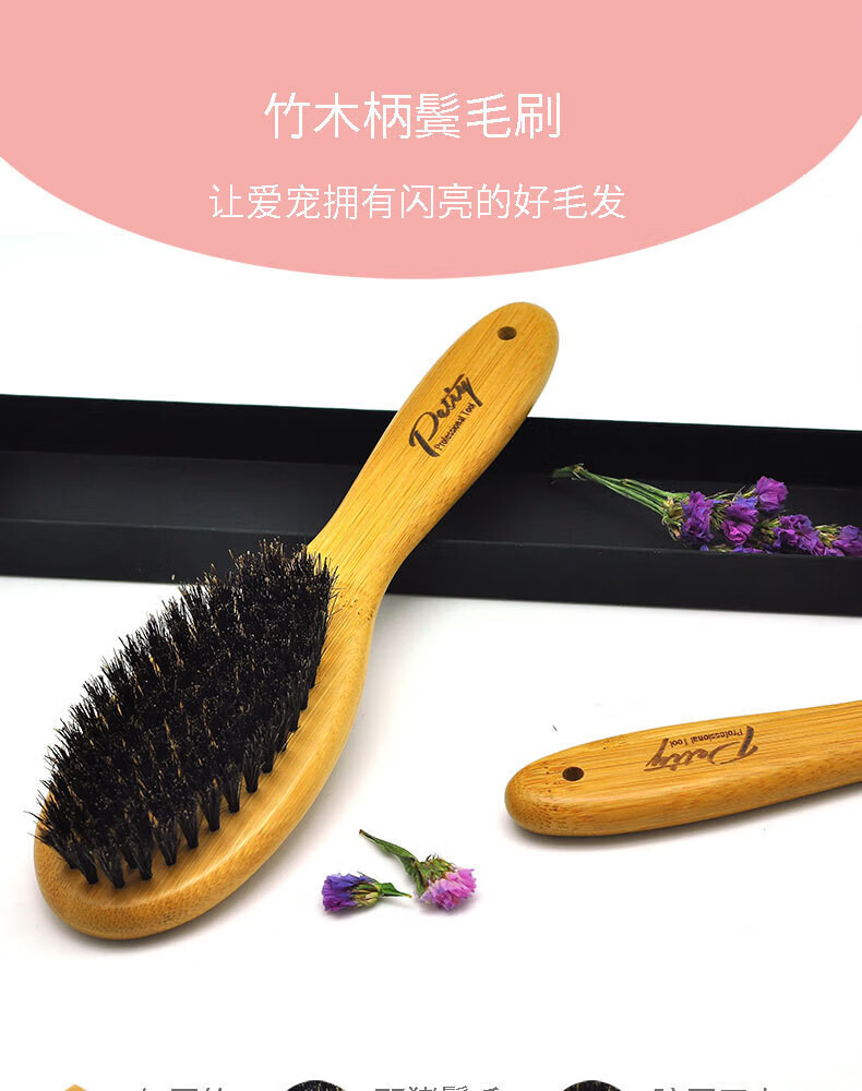 Premium pig bristle comb, pet grooming comb, Labrador Dou short-haired dog and cat universal hair brush, French Dou massage comb M 60*22MM Polaroid bristle comb