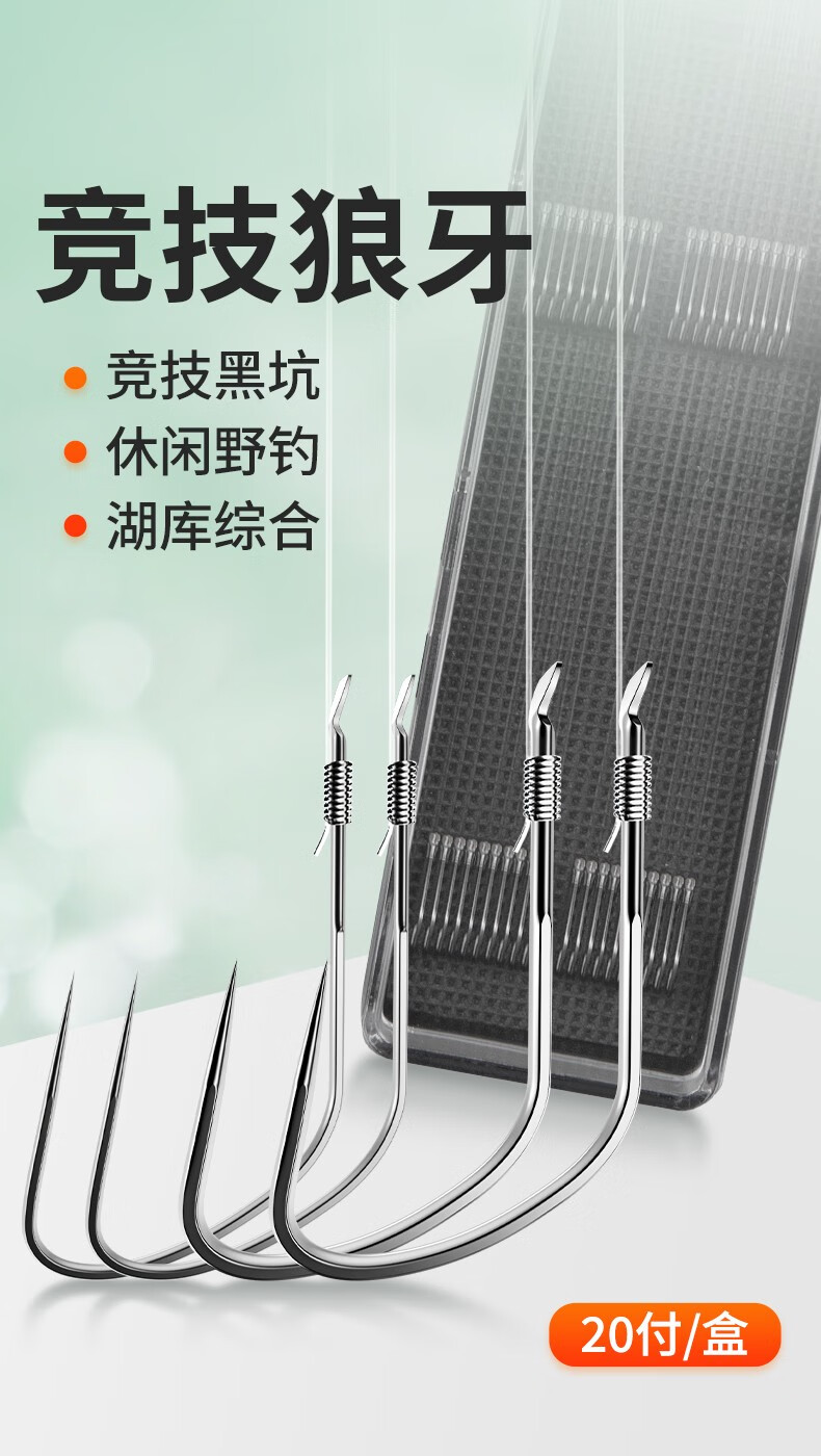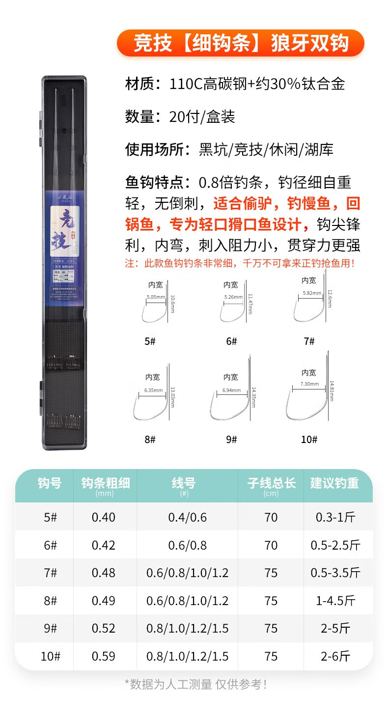 Xiaofeng Fairy Line Double Hook Wolf Tooth Competitive Black Pit Anti-Tangle Finished Handmade Finely Tied Fishhook Fishing Accessories 20 Packs Competitive Wolf Tooth Hook 8#/Thread 0.6# 20 Pay/Box
