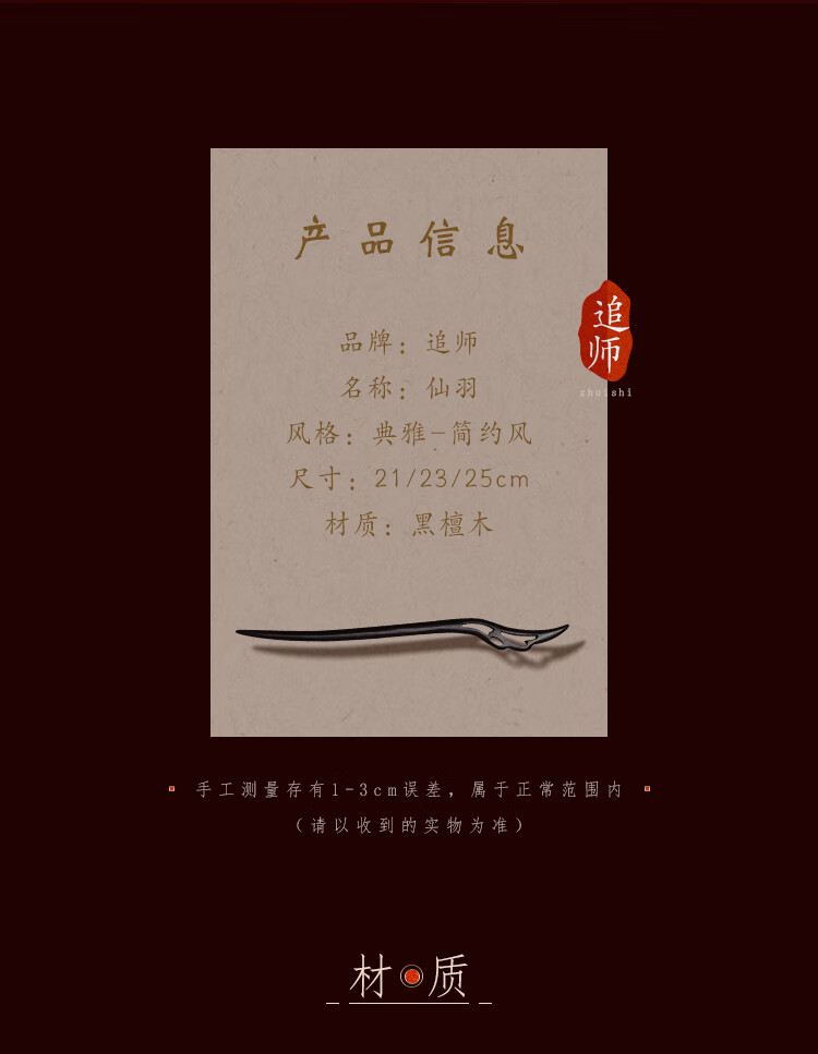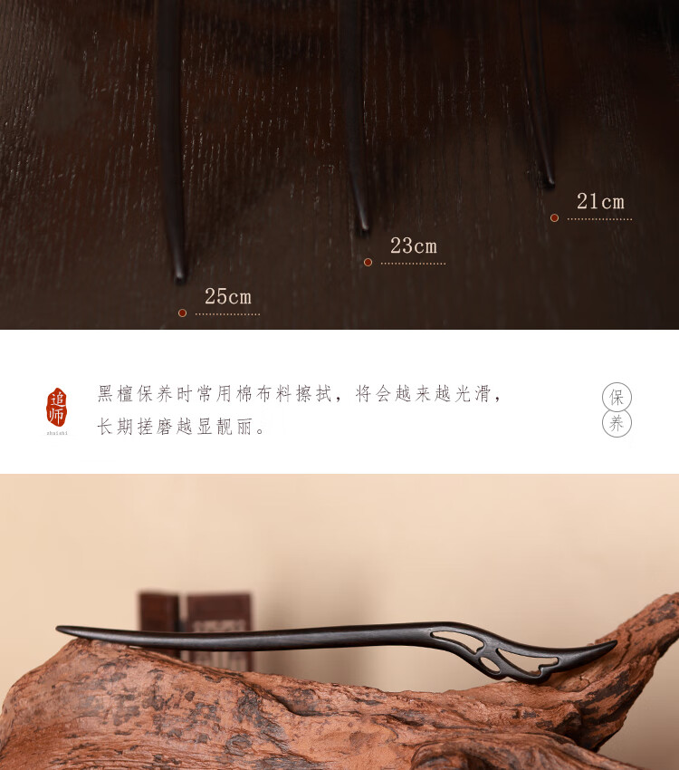 Zhuishi <Zhuishi> Extra long hairpin extra long ebony fairy feather ancient style hairpin simple daily hairstyle Mid-Autumn Festival gift ebony fairy feather 23CM 1
