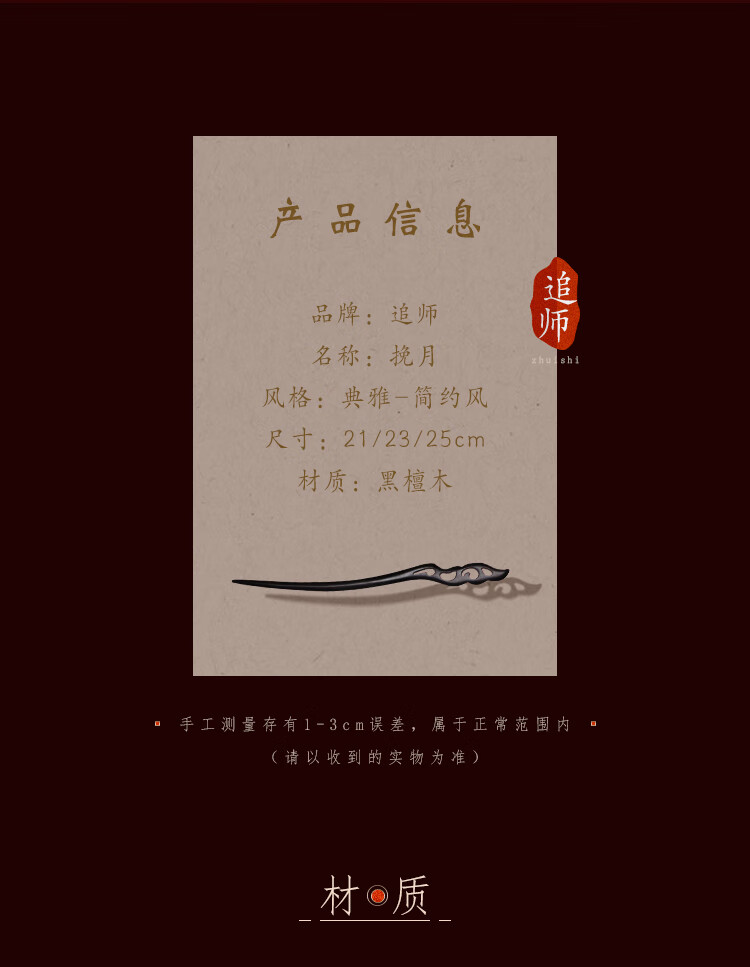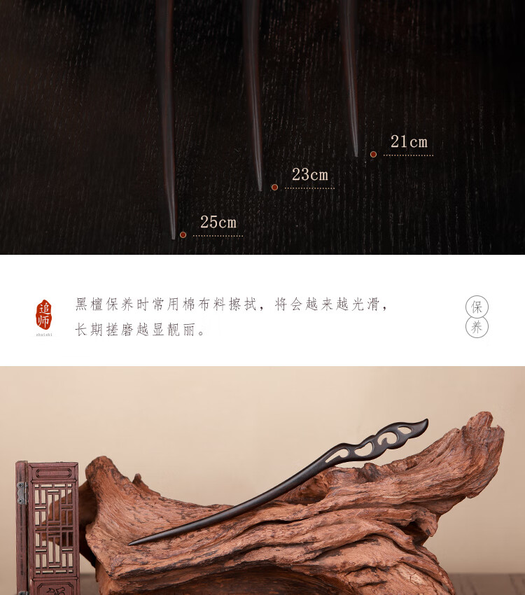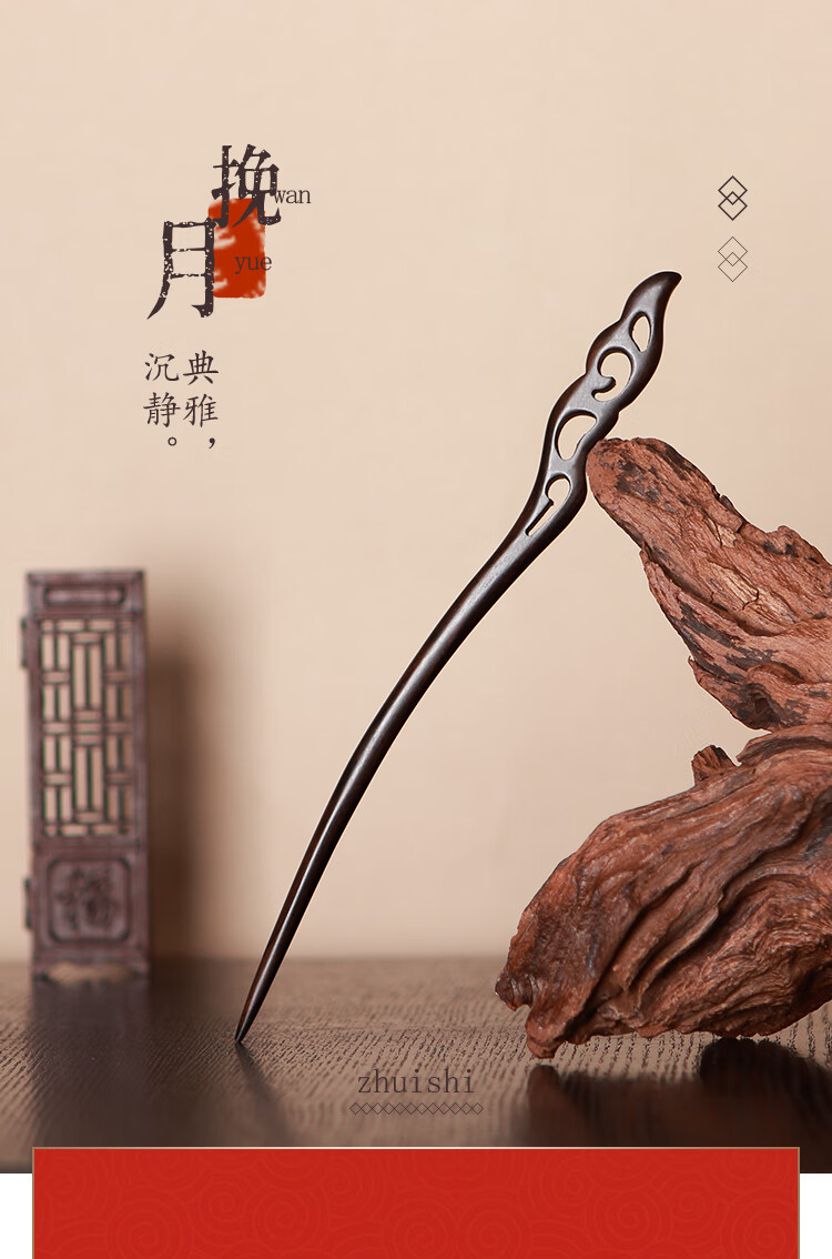 Zhuishi Extra long hairpin ebony extra long hairpin to hold the moon, ancient style hair extensions for women, Mid-Autumn Festival gift, ebony moon 25CM 1 hairpin