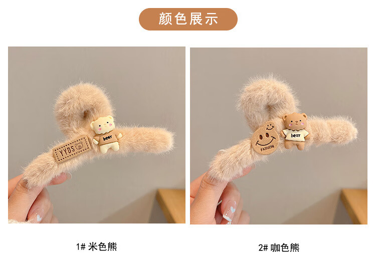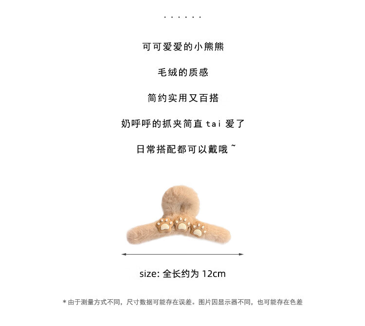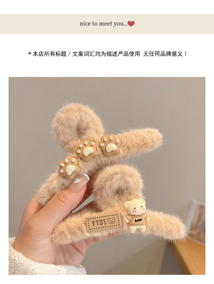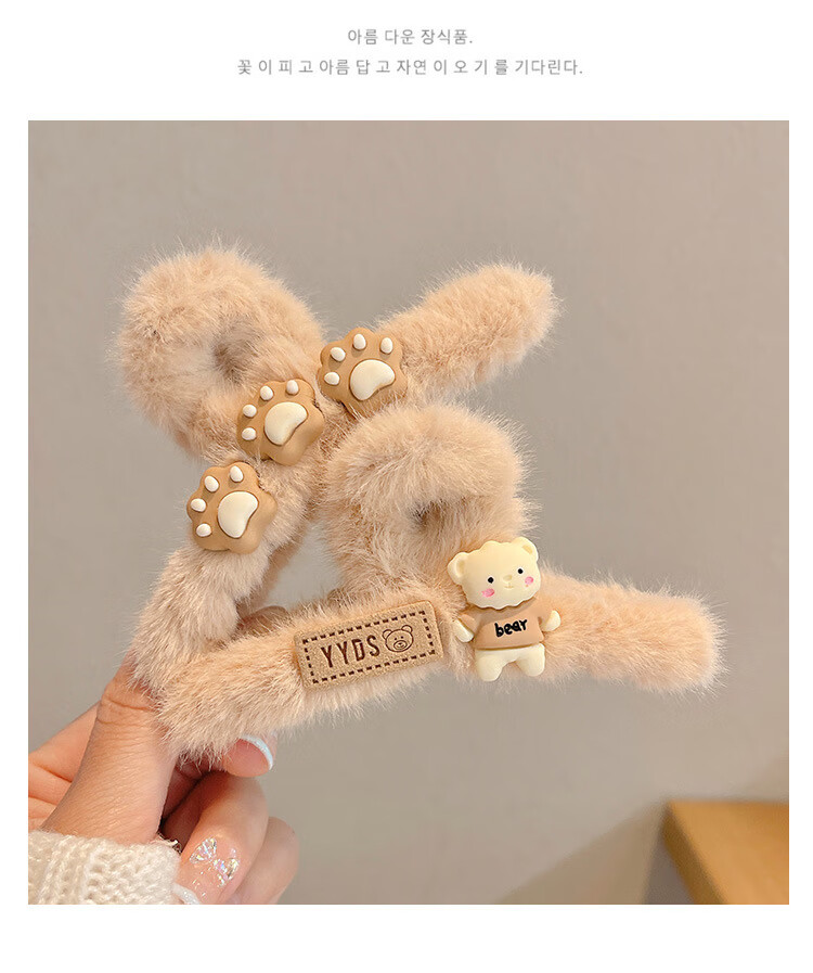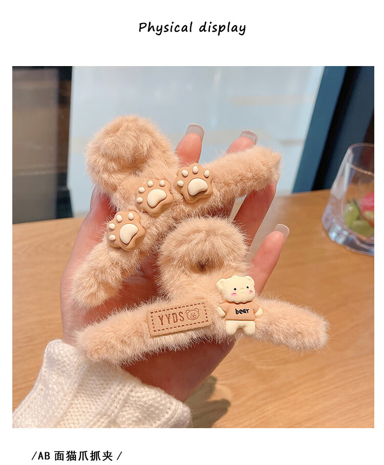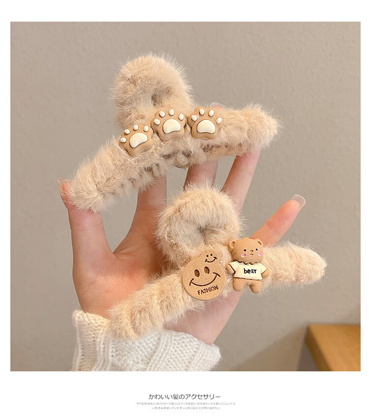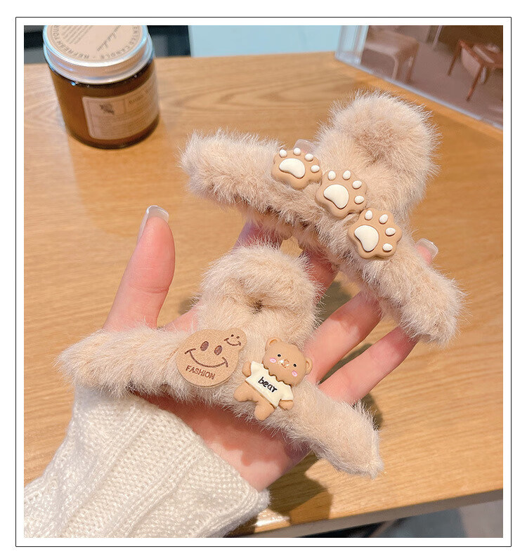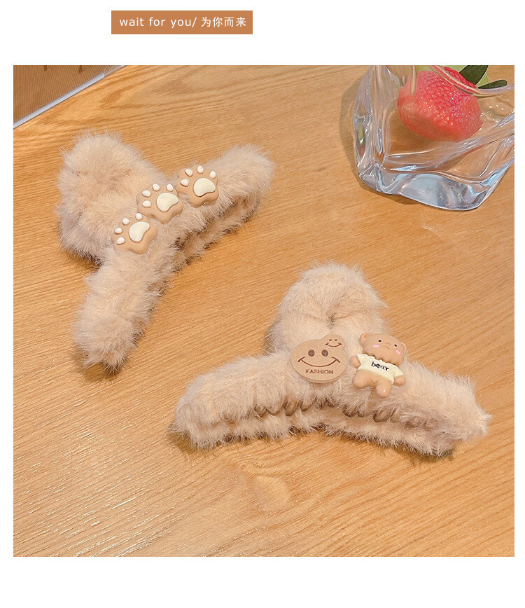 MiU Se Autumn and Winter Plush Clip Large Style Shark Clip Back of Head Hair Clip Hair Clip Women's Hair Clip YYDS Cat Claw Bear (1 Pack) B02-301