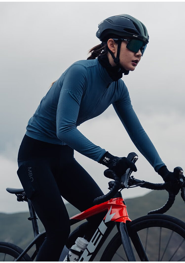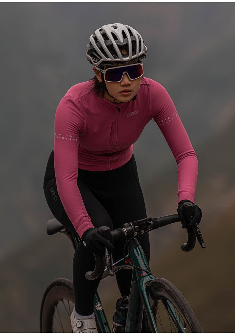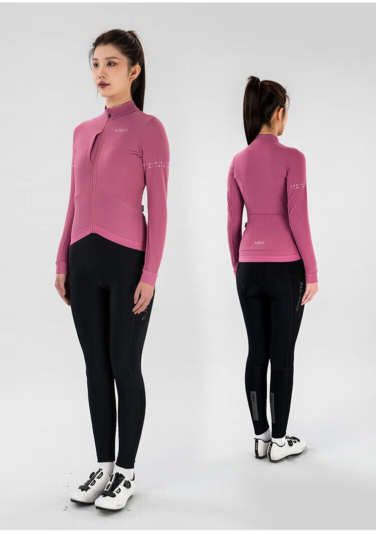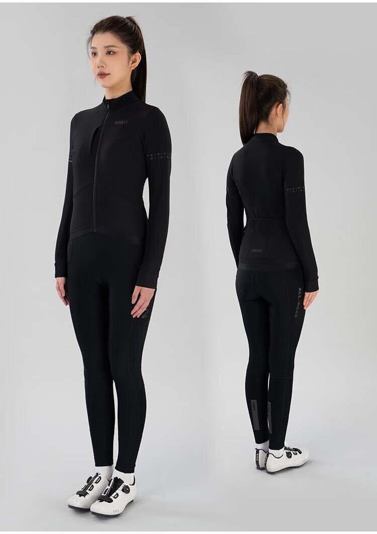 MBO Autumn and Winter Women's Fleece Long Sleeve Cycling Jersey Lightyear Road Cycling Top Black S