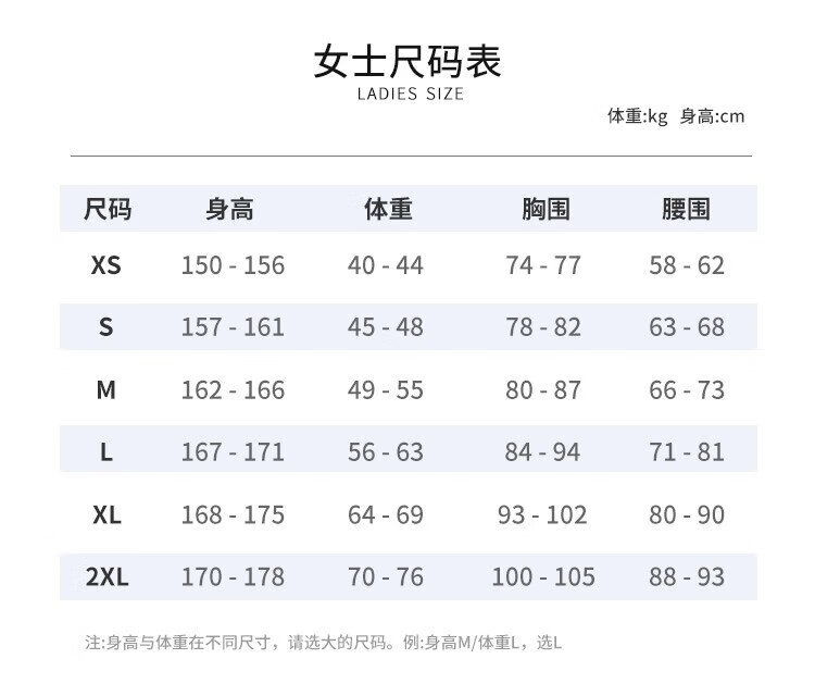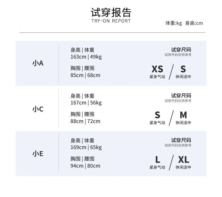 China (cm) 160-165/84-86 165-170 / 88-90 167-172 / 92-96 168-173 / 98-102 170-176 / 106-110
