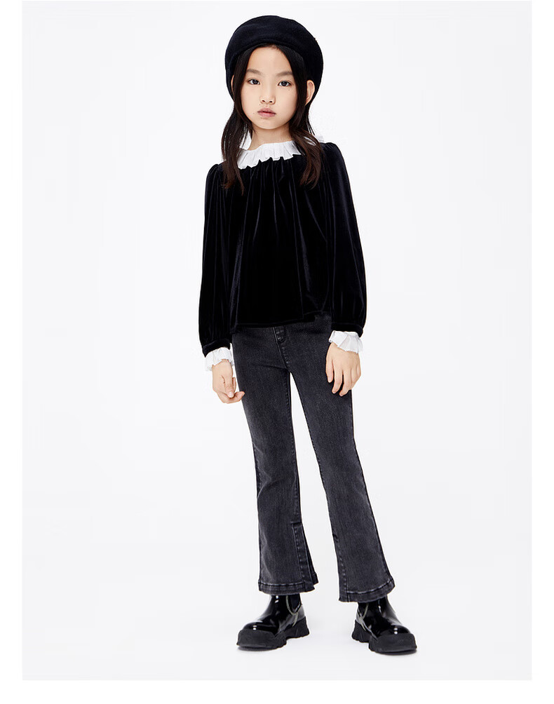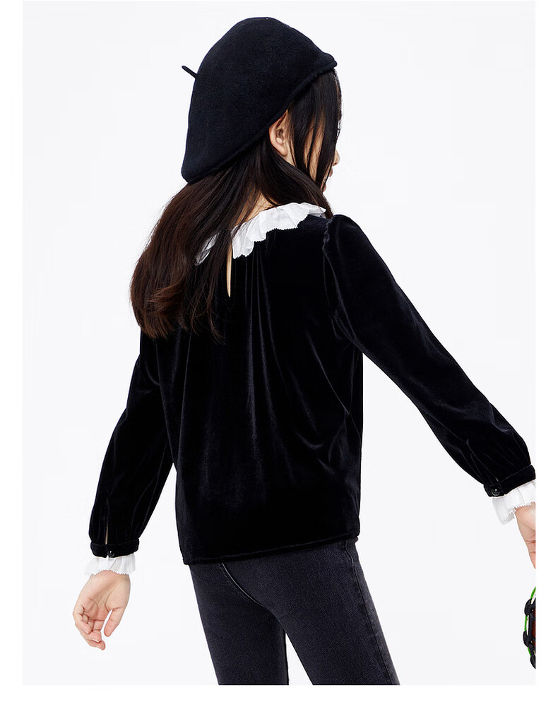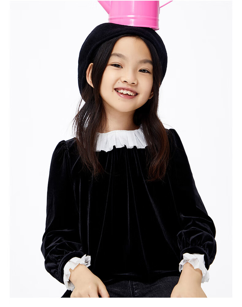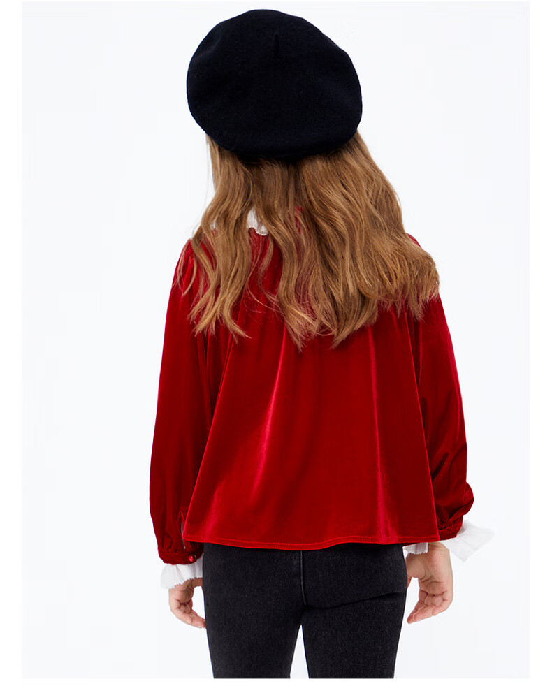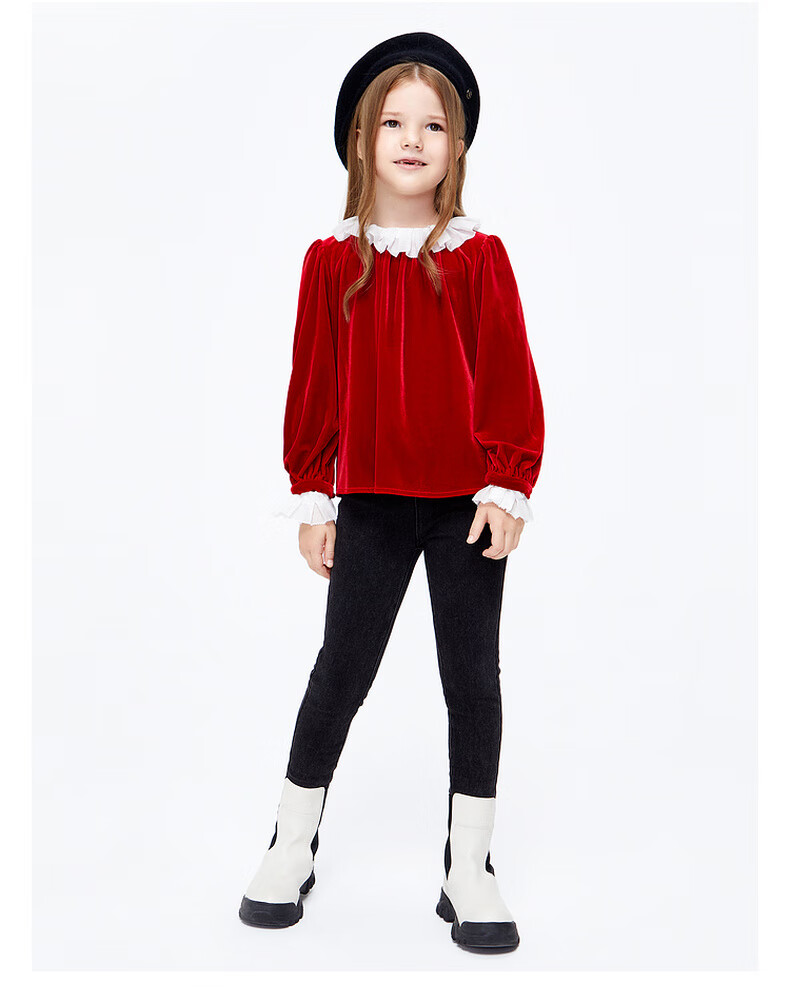 Little MO&Co. Children's clothing winter clothing children's girls velvet long-sleeved red top New Year's dress dress baby sweater black 110 110/56
