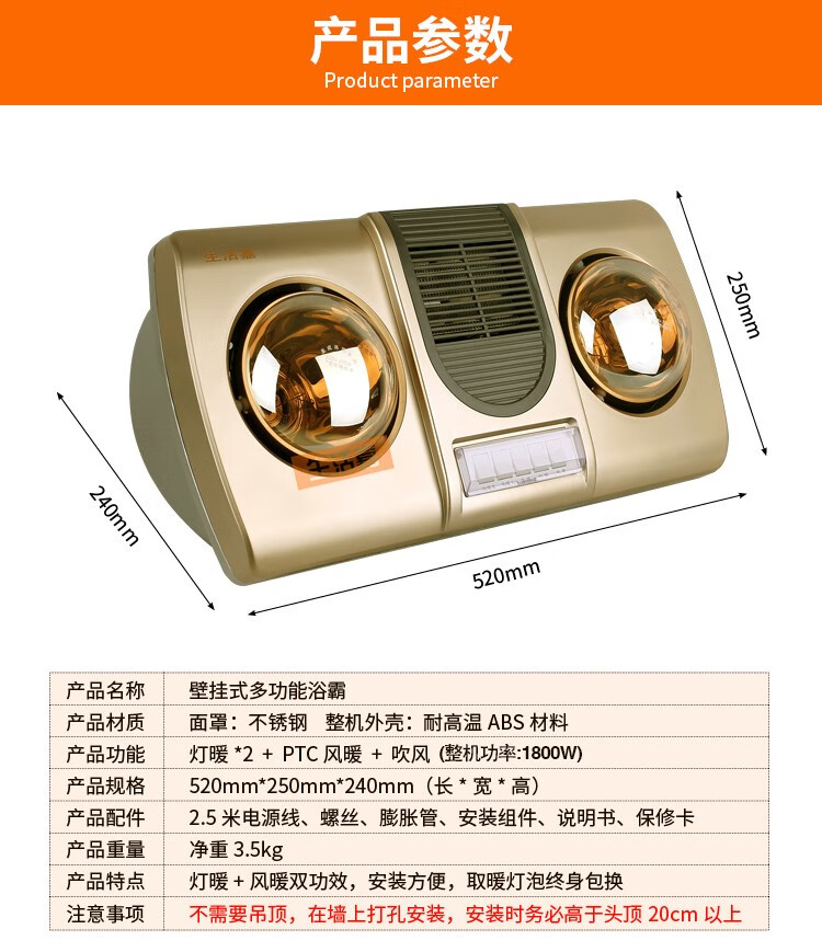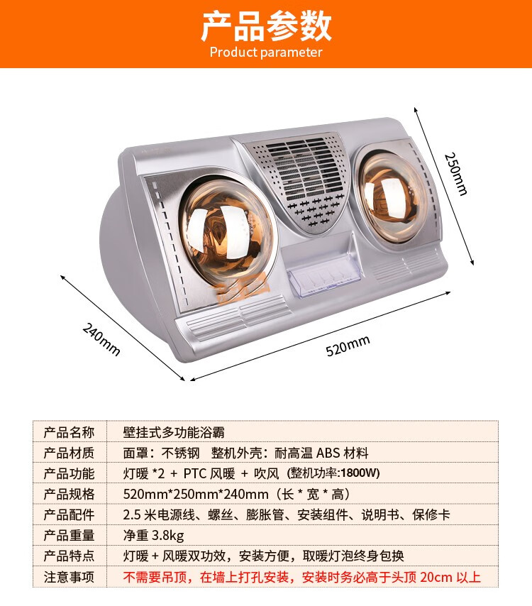 Lechenxin Yuba lamp bathroom heater Yuba wall-mounted bathroom fan heating Bath room heating lamp wall-mounted fan heater Remote control + touch control Anti-leakage Titanium air silver Eye protection white bubble Lamp heating + air heating