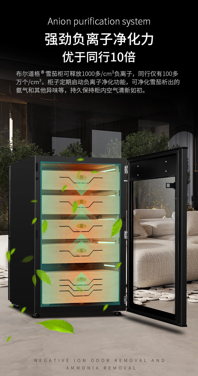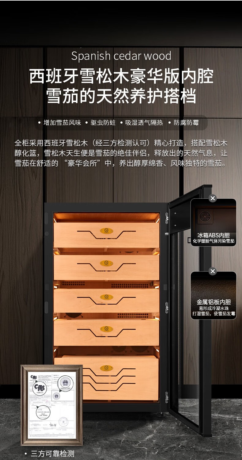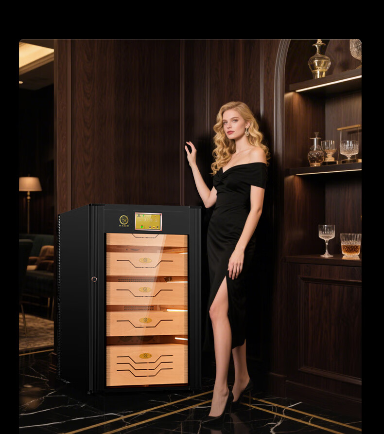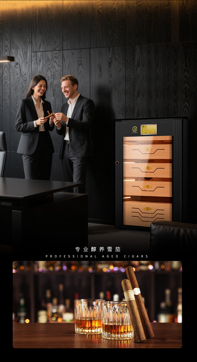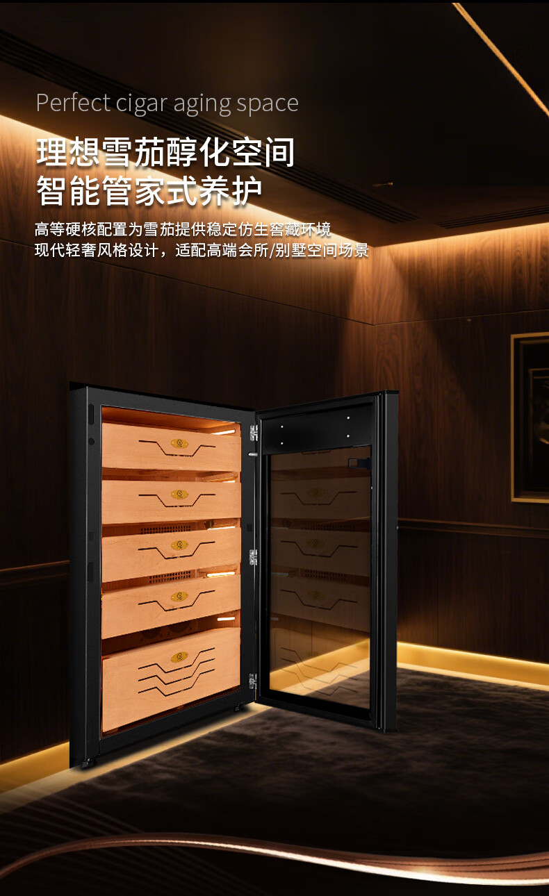 Bulldog cigar cabinet, constant temperature and humidity control, eggplant ammonia removal, German compressor, household moisturizing, wine cabinet, energy-saving, variable frequency, imported fingerprint password lock, WiFi Bulldog vc308, new product, fourth generation coffee color, 1000 pieces capacity, key lock