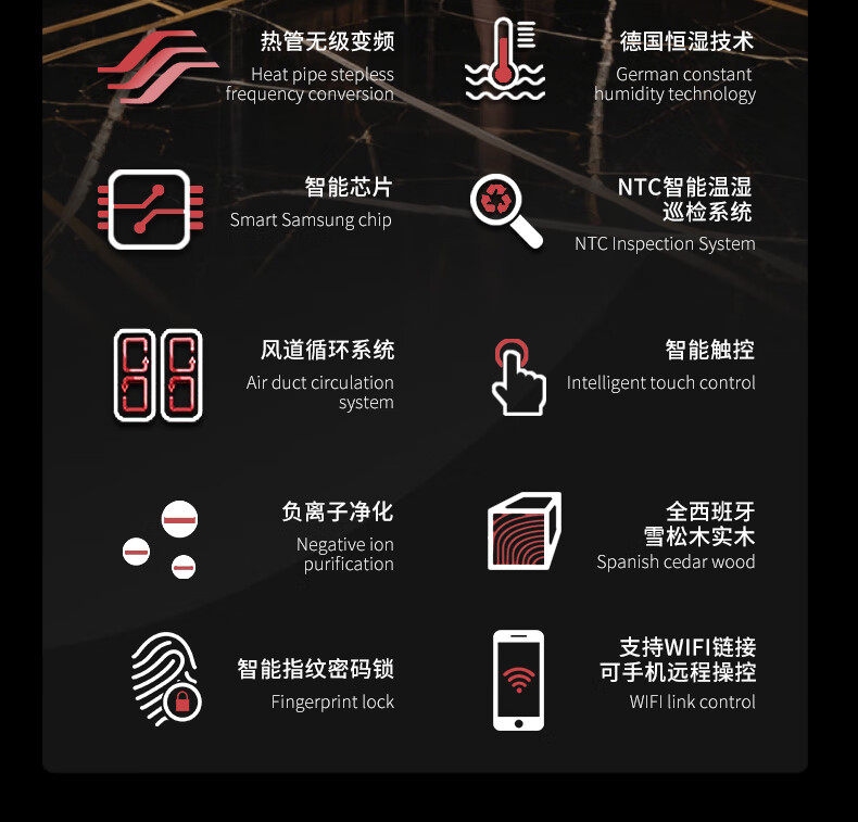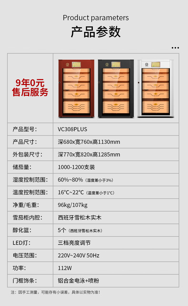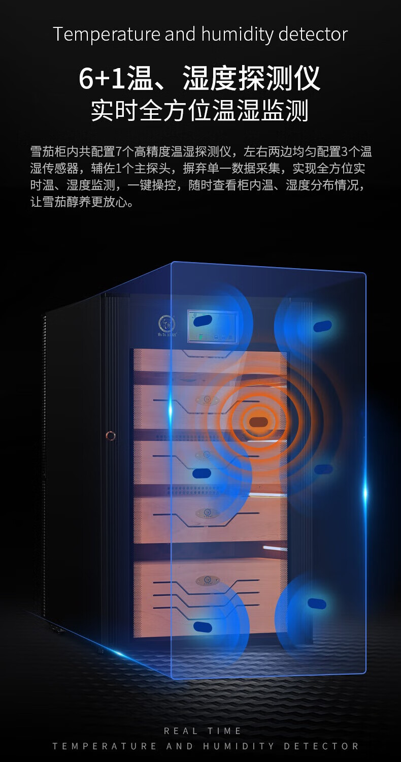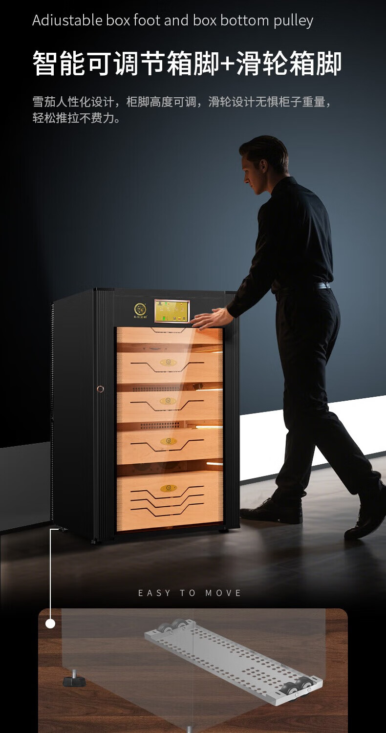 Bulldog cigar cabinet, constant temperature and humidity control, eggplant ammonia removal, German compressor, household moisturizing, wine cabinet, energy-saving, variable frequency, imported fingerprint password lock, WiFi Bulldog vc308, new product, fourth generation coffee color, 1000 pieces capacity, key lock