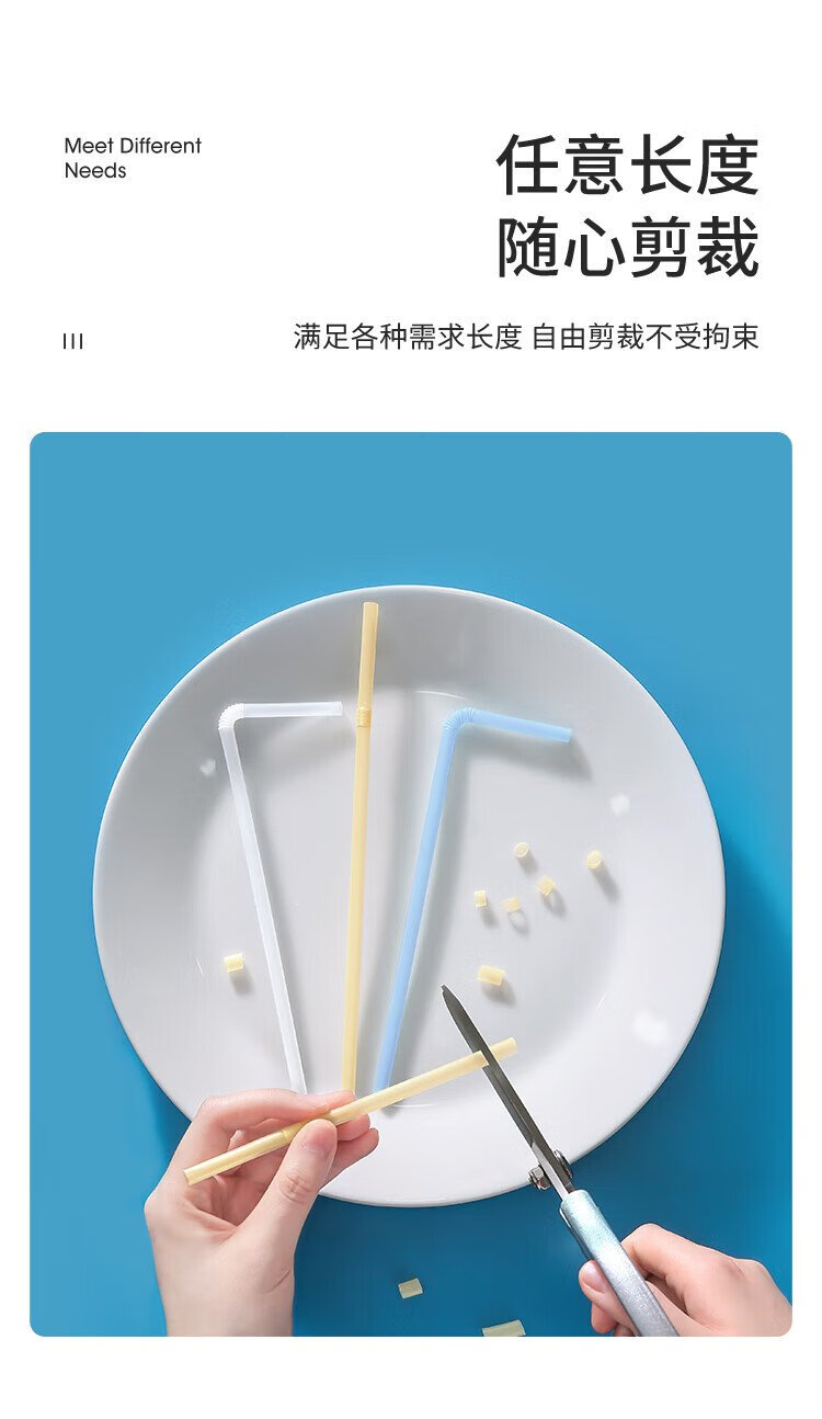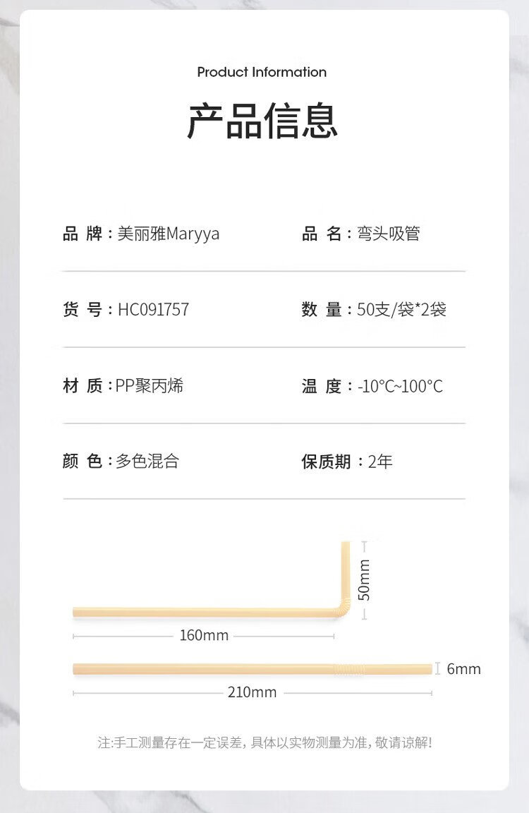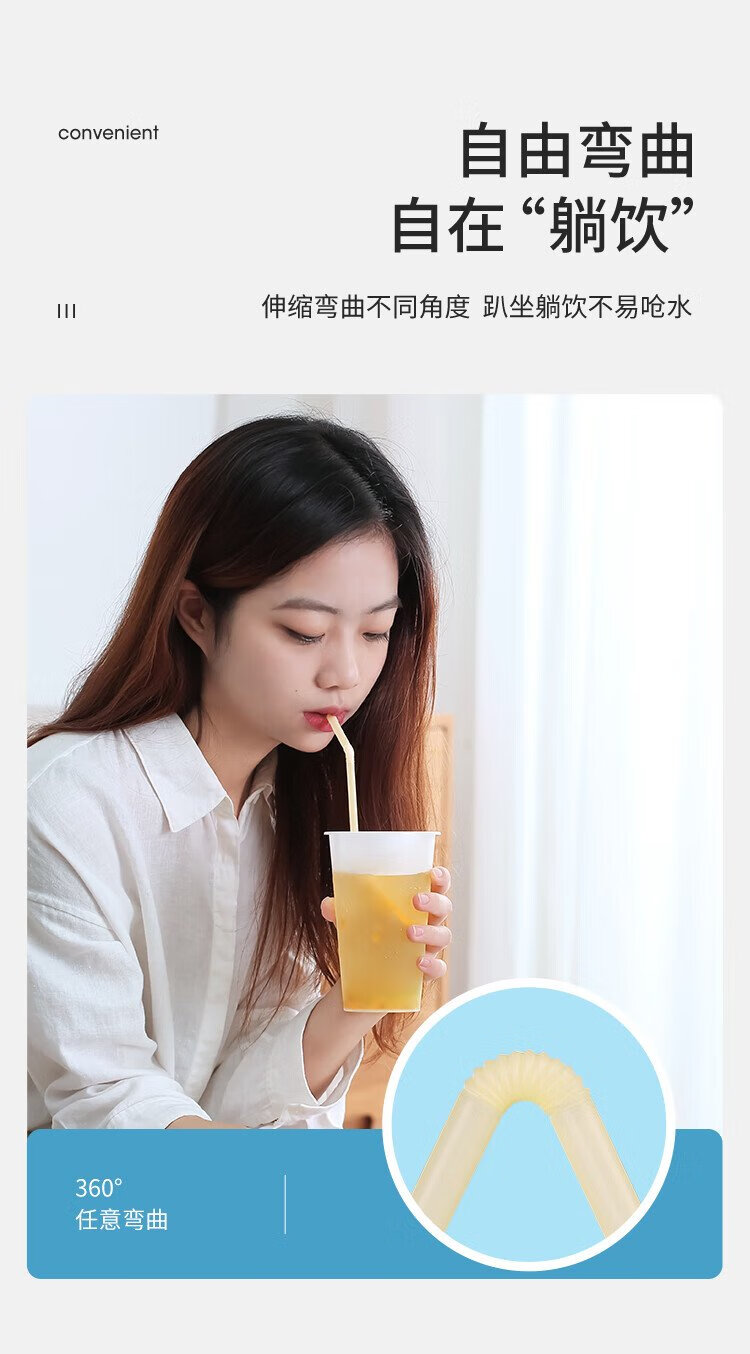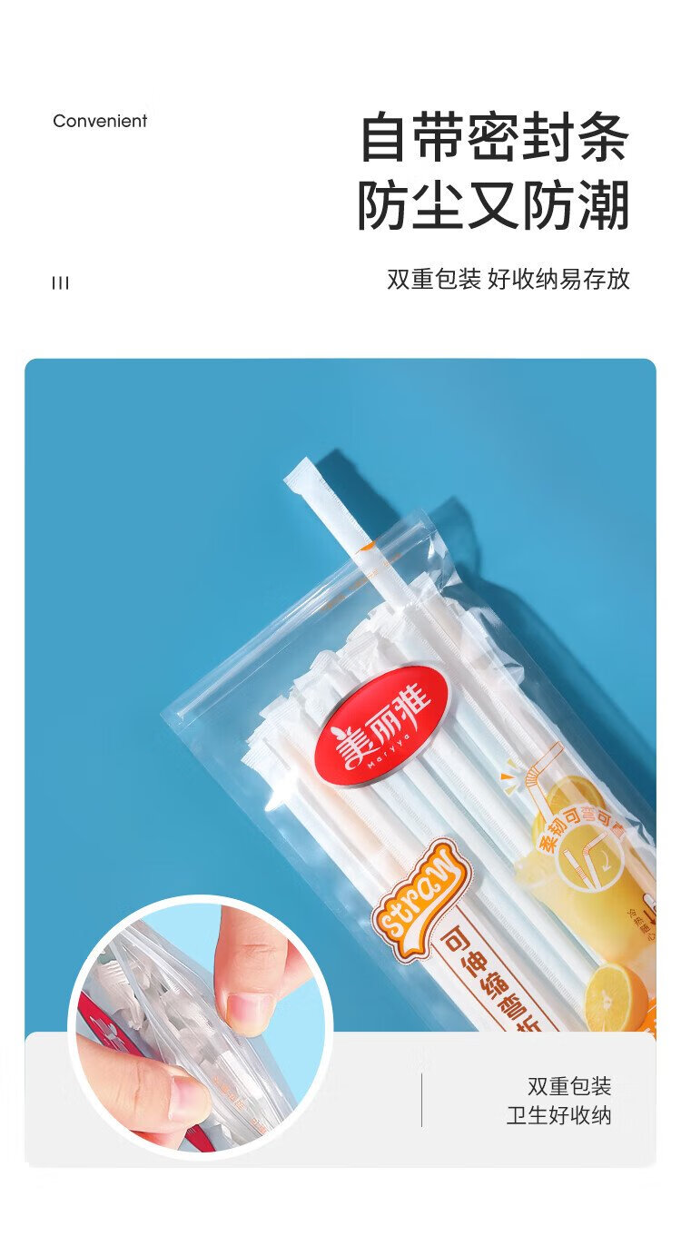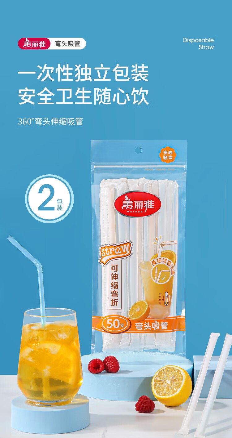 Meliya disposable straws, individually packaged seal outer packaging, flexible food-grade juice drink hose, individually packaged, elbow straws - 50 pieces