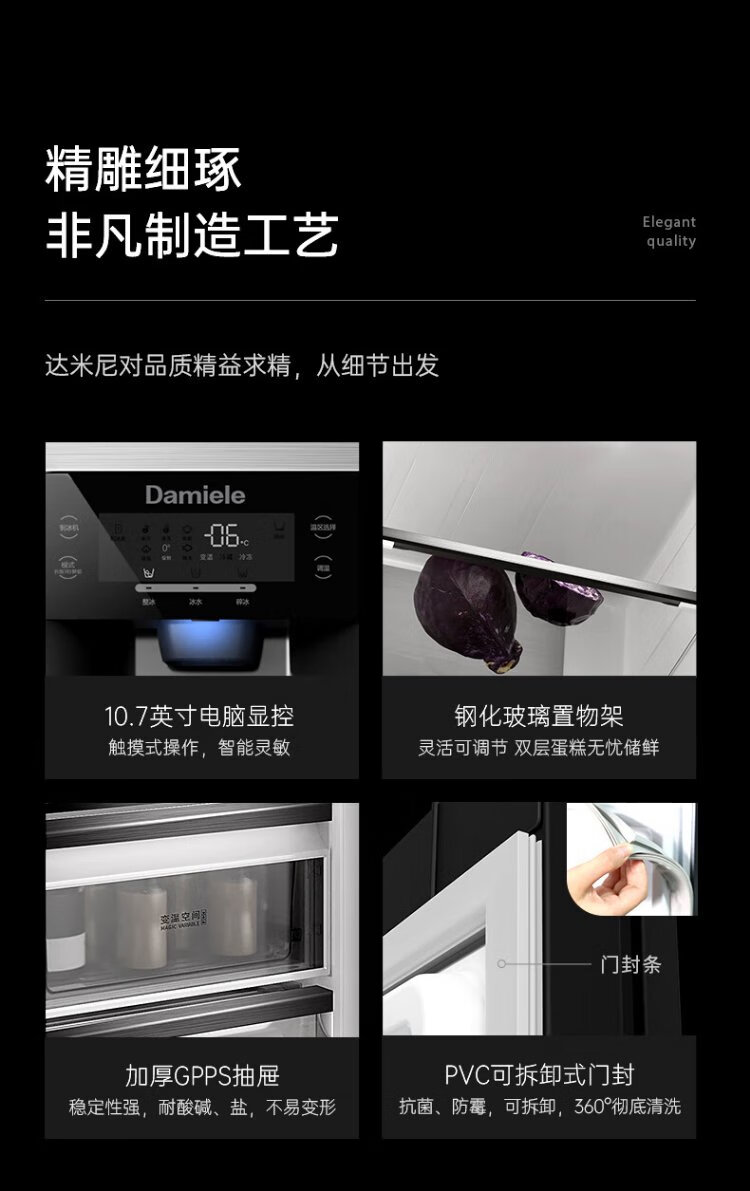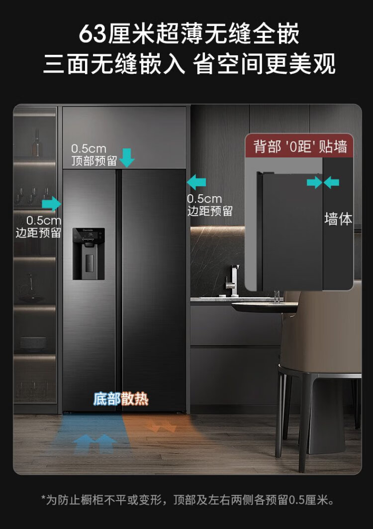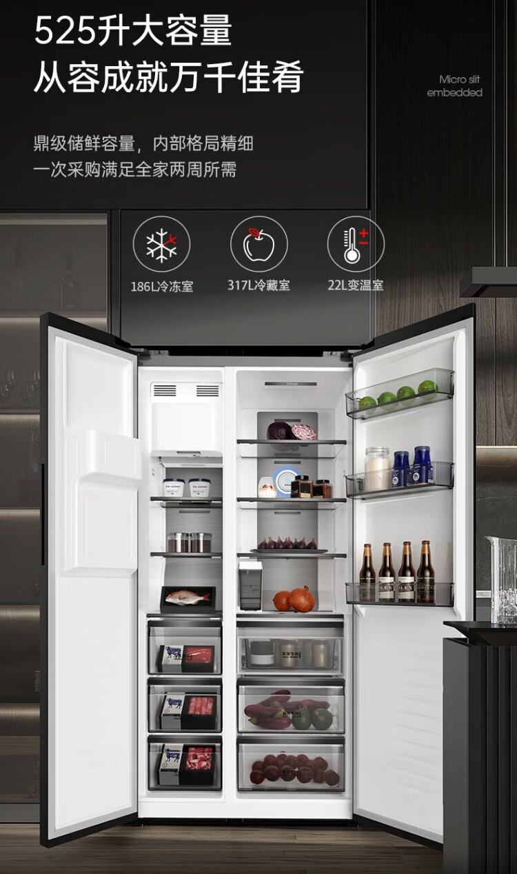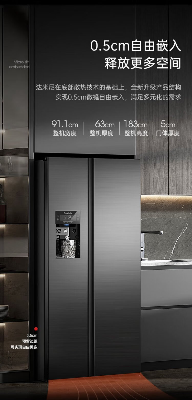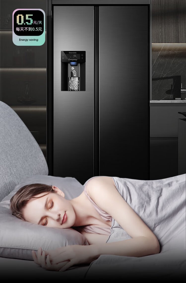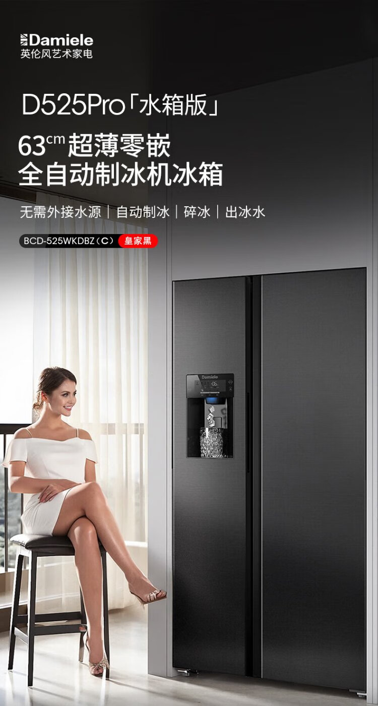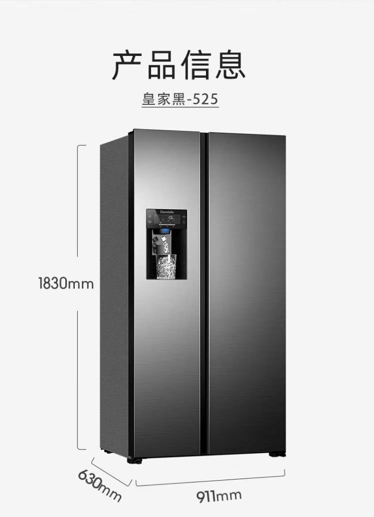 Damini 525-liter ice-making refrigerator, one-level frequency conversion, fully automatic ice-making all-in-one machine, air-cooled, frost-free, zero-embedded double-door refrigerator BCD-525WKDBZ (C) black 525L ice-making refrigerator