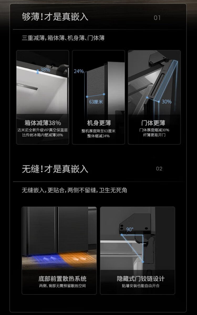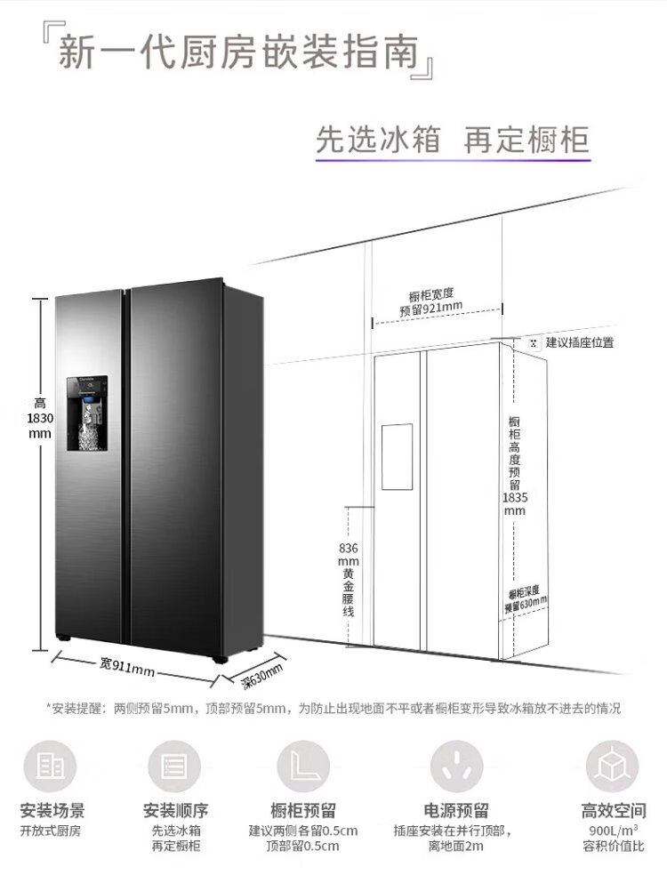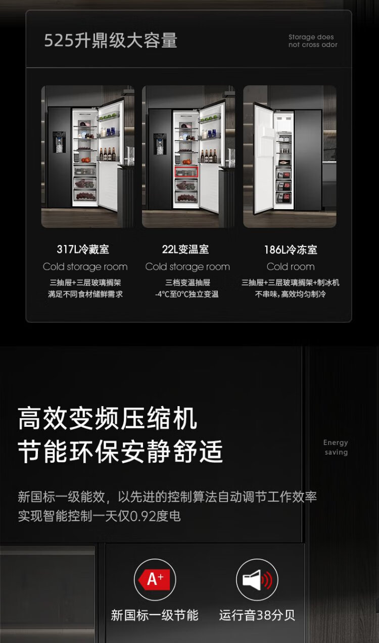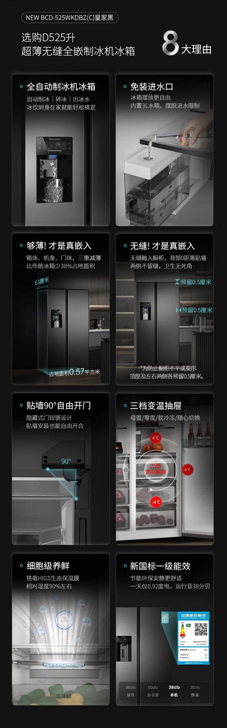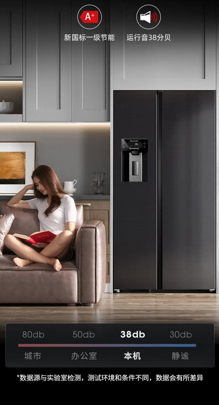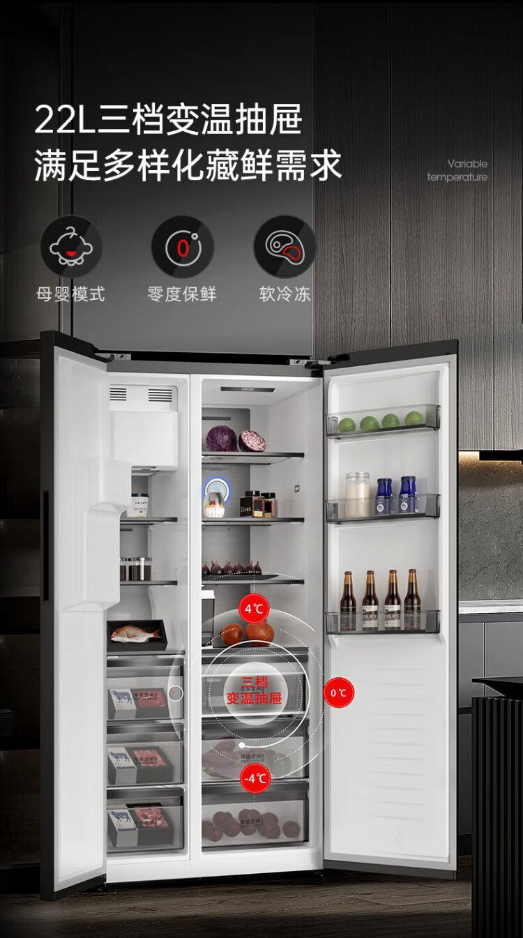 Damini 525-liter ice-making refrigerator, one-level frequency conversion, fully automatic ice-making all-in-one machine, air-cooled, frost-free, zero-embedded double-door refrigerator BCD-525WKDBZ (C) black 525L ice-making refrigerator