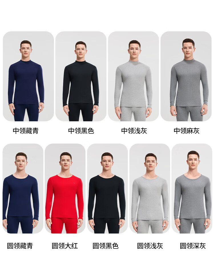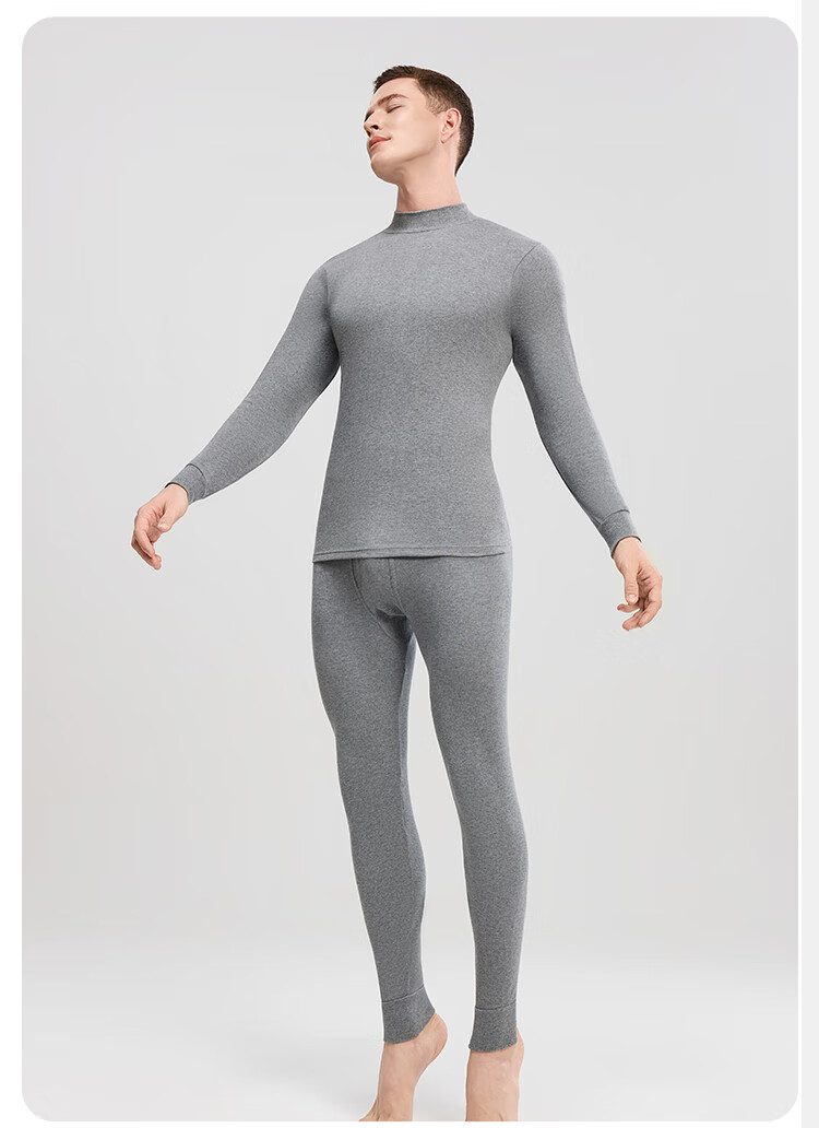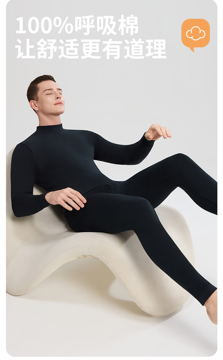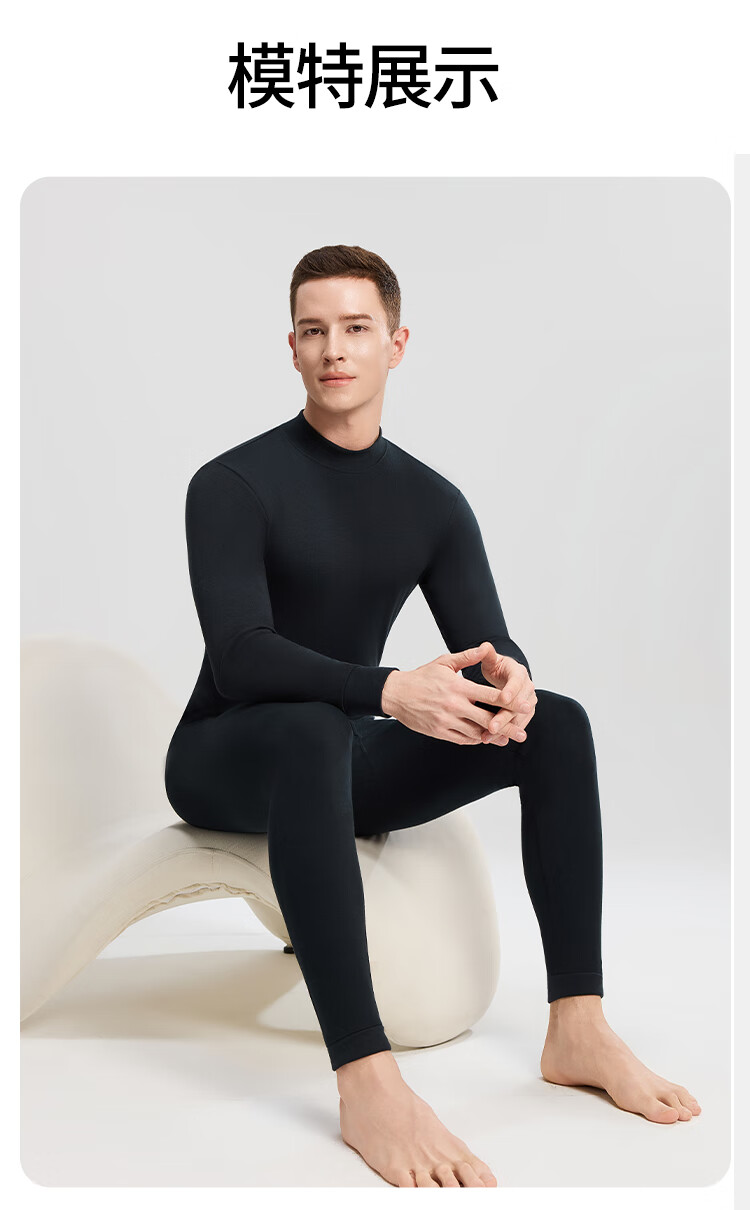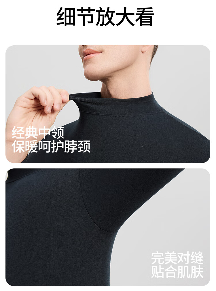Modal 2 sets of autumn clothes and long johns for men, pure cotton mid-high collar warm suits, autumn and winter men's base underwear, large size cotton sweaters, mid-collar 2 sets, black + navy blue XL /175 (weight 130-150Jin Jin is equal to 0.5 kg)
