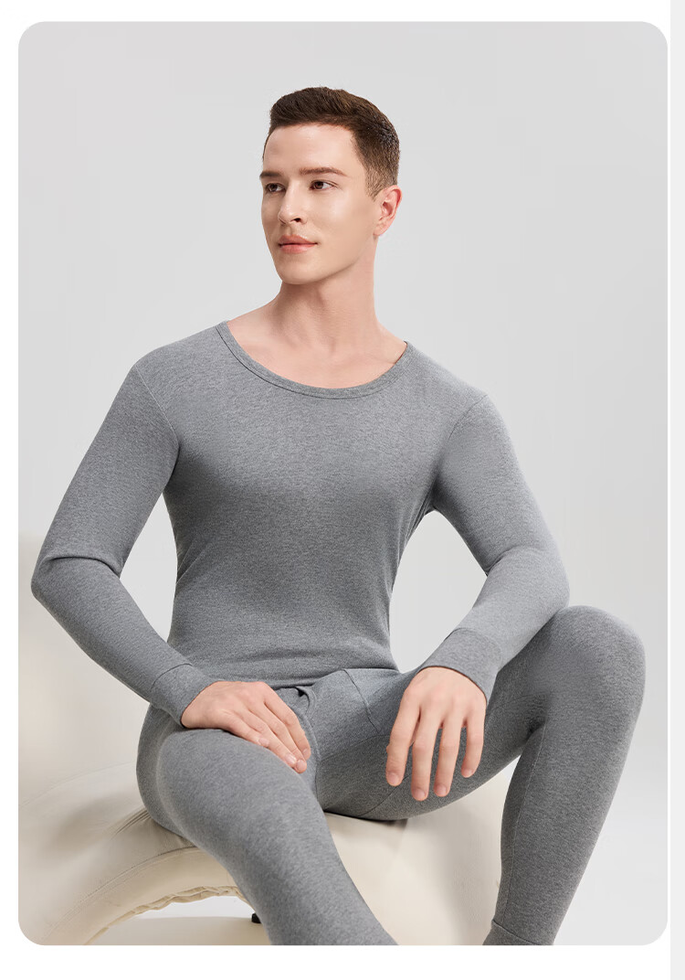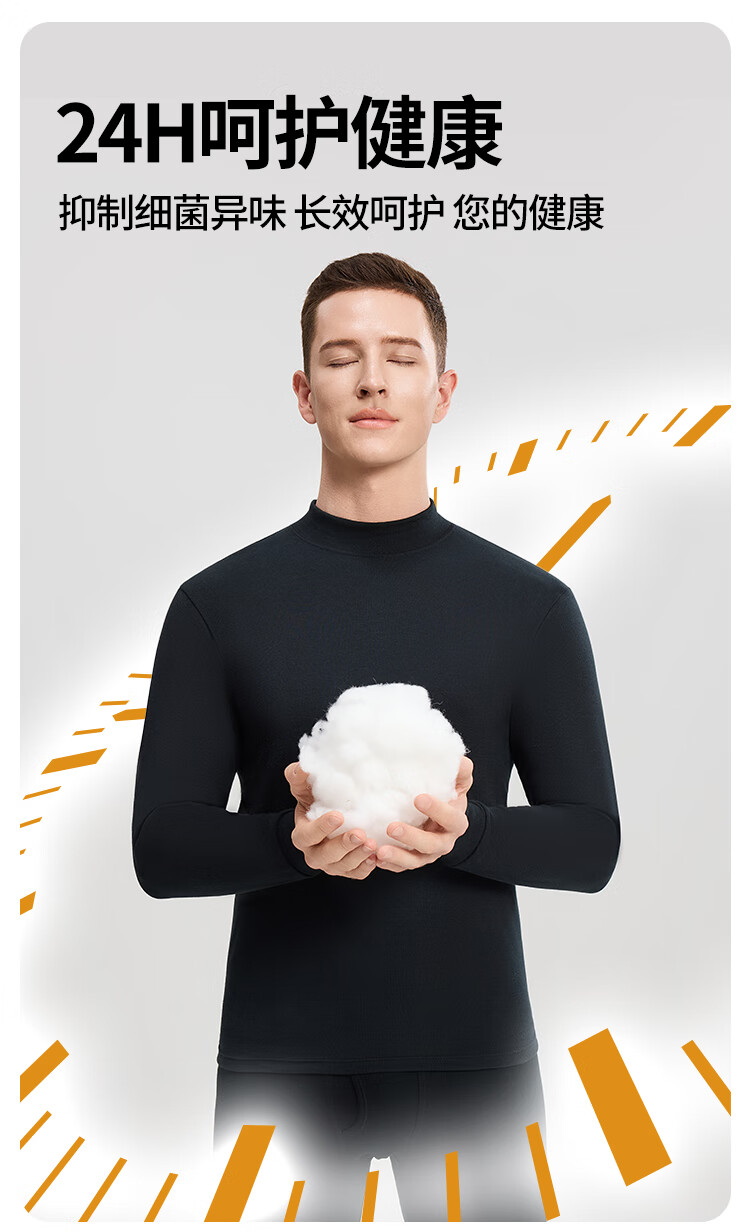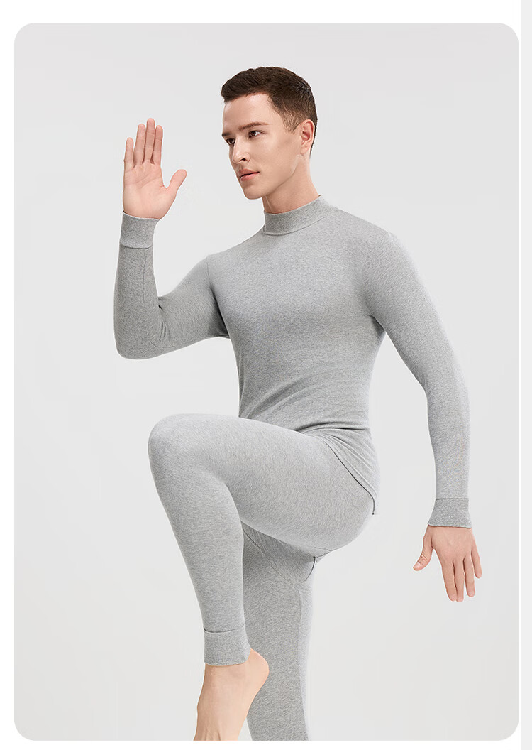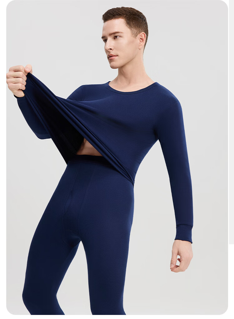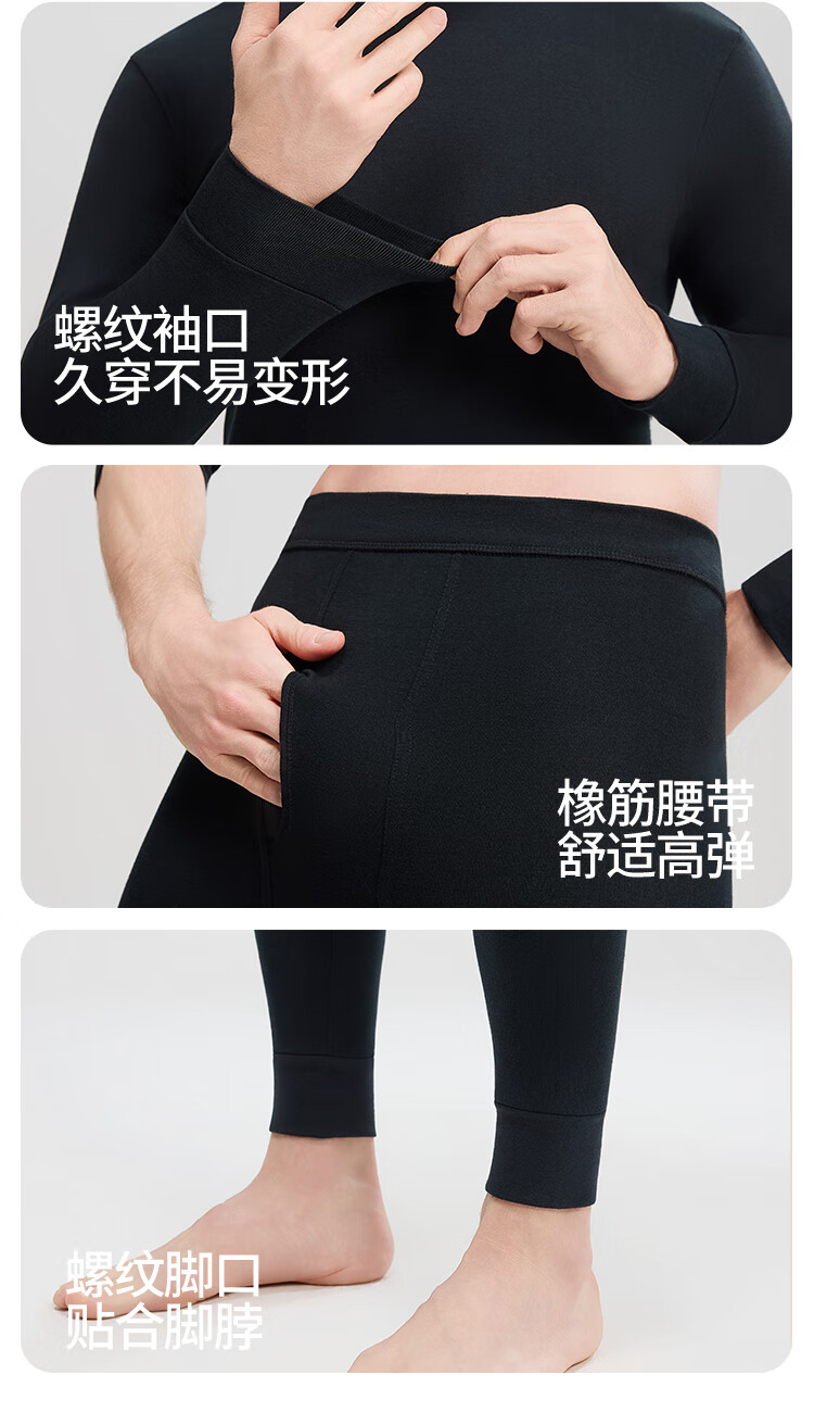 Modal 2 sets of autumn clothes and long johns for men, pure cotton mid-high collar warm suits, autumn and winter men's base underwear, large size cotton sweaters, mid-collar 2 sets, black + navy blue XL /175 (weight 130-150Jin Jin is equal to 0.5 kg)