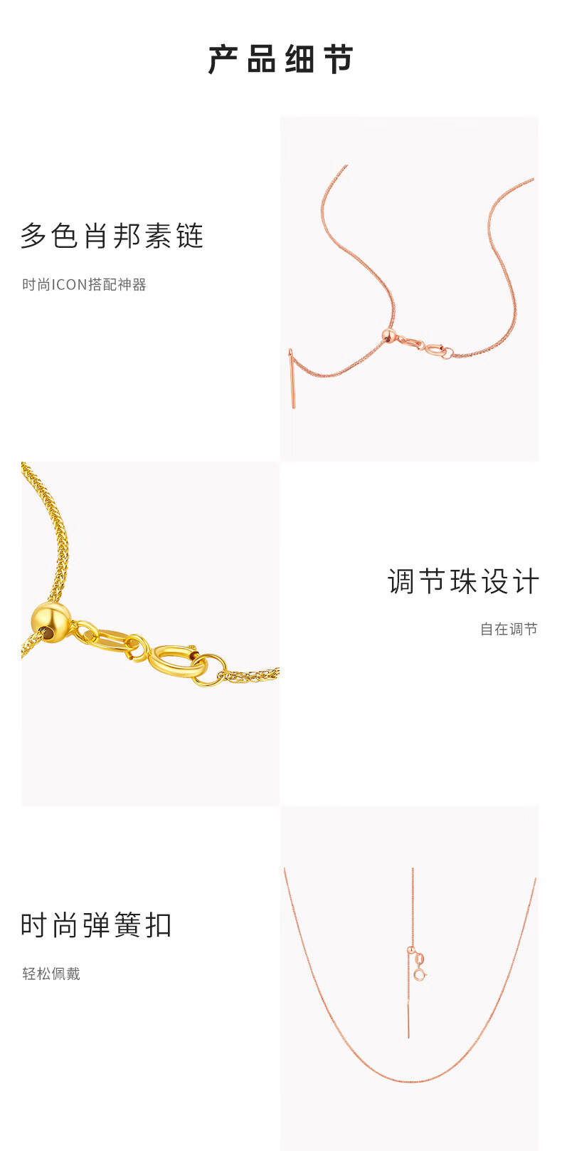 Chao Acer Chopard chain 18K gold necklace for women, plain chain, universal pin chain, adjustable, birthday gift for girlfriend, red 18K gold, adjustable tail chain