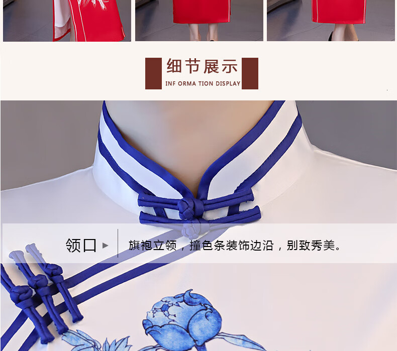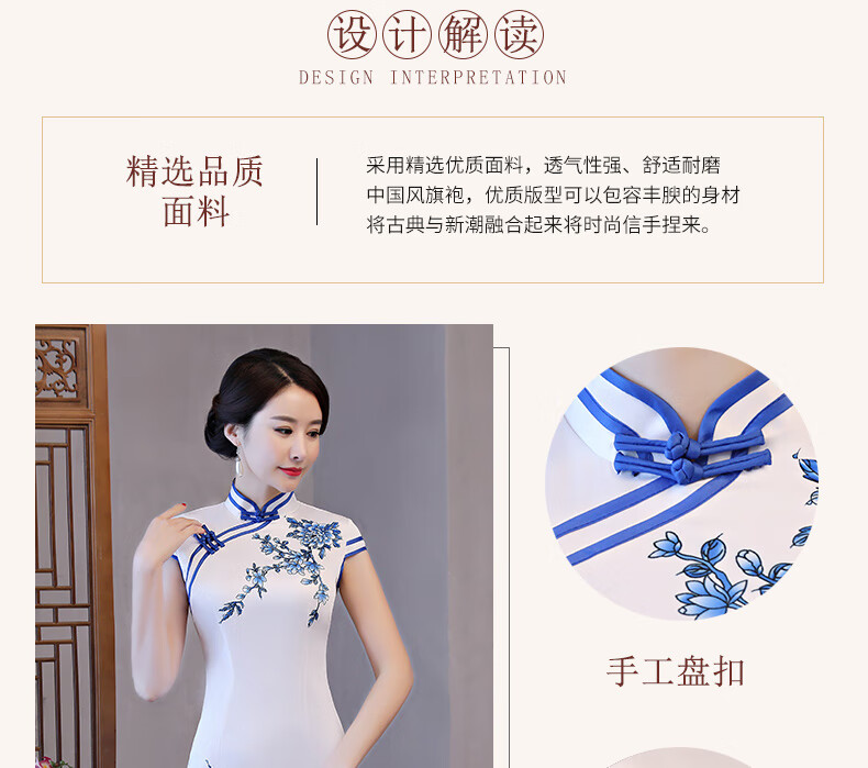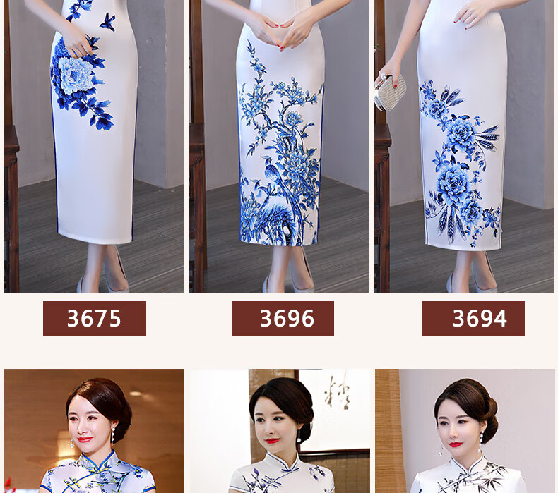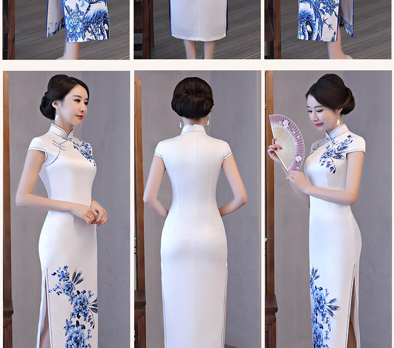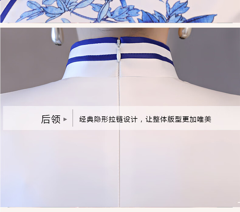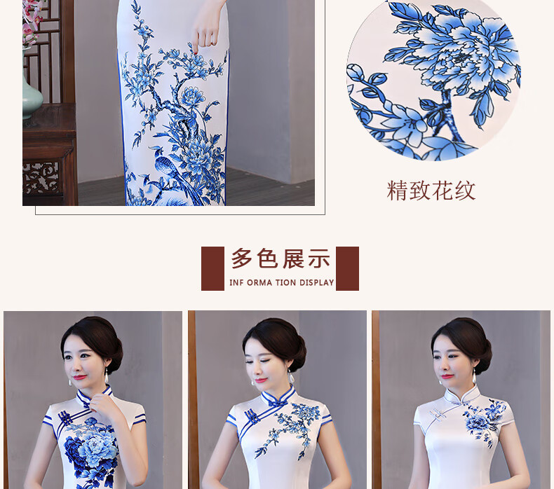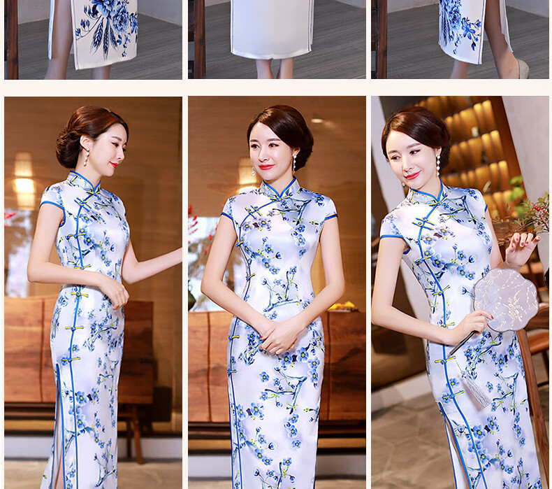 Timochi catwalk welcome cheongsam Chinese style blue and white porcelain long elegant young girl 2022 improved performance dress 2806 XL