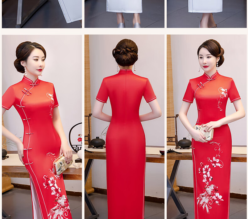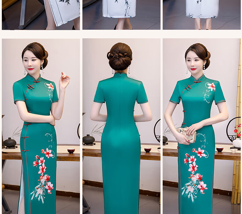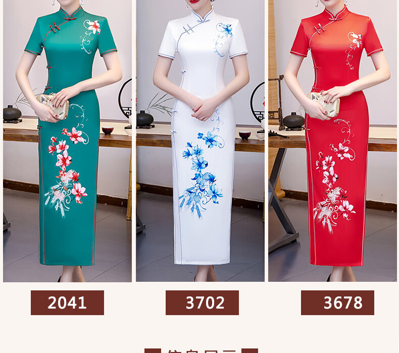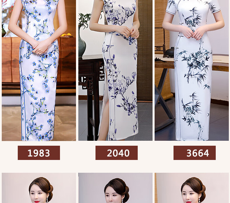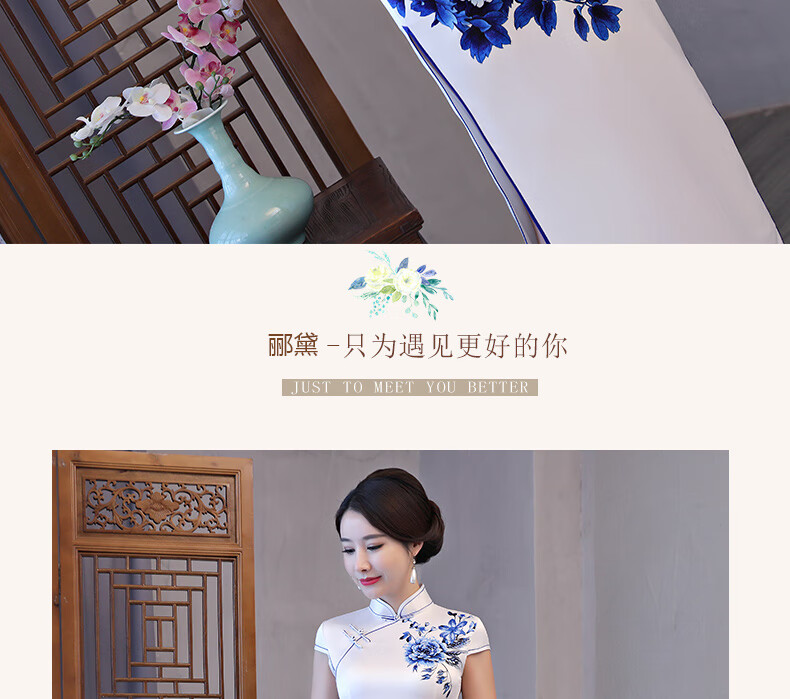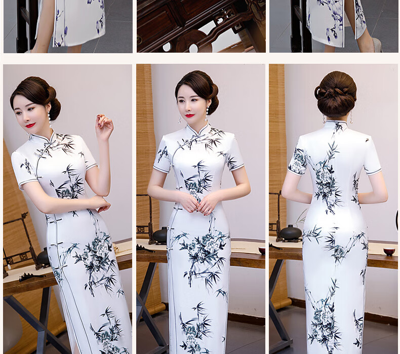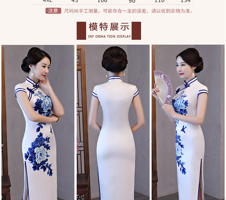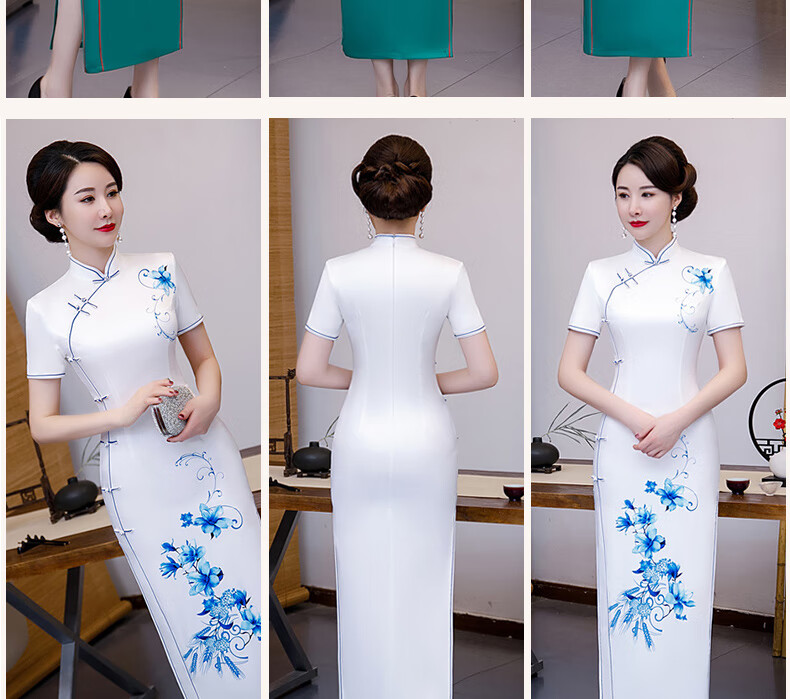 Timochi catwalk welcome cheongsam Chinese style blue and white porcelain long elegant young girl 2022 improved performance dress 2806 XL