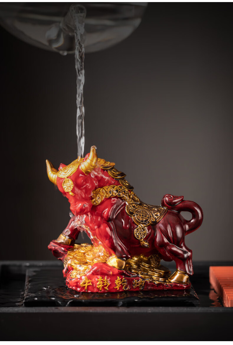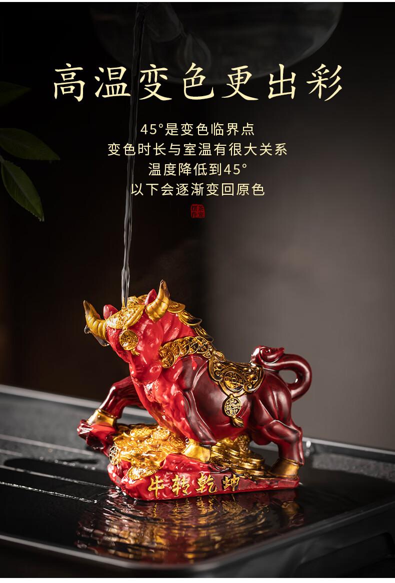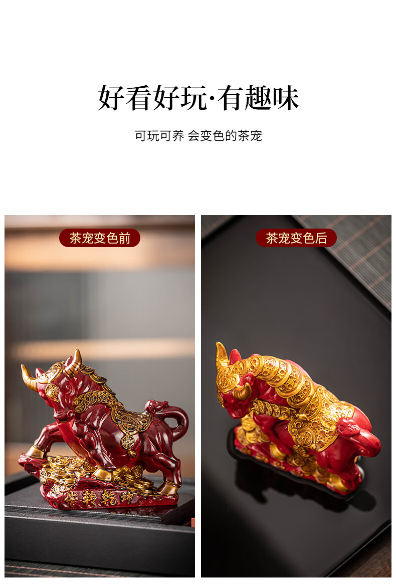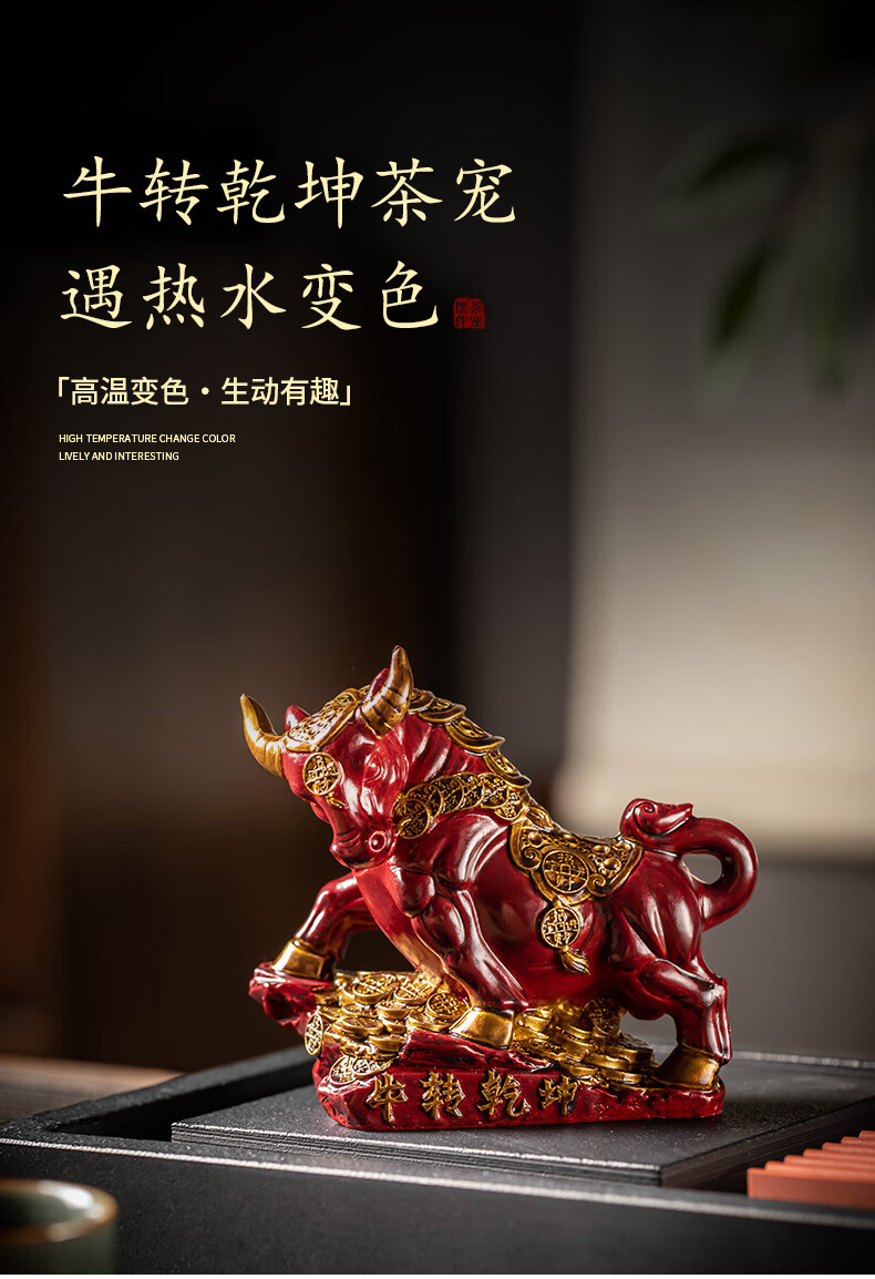 Porcelain brand tea Ox turns color color-changing tea pet ornaments Zodiac tea play tea table creative personality interesting can raise tea table accessories <Battle Cow> Color-changing tea pet