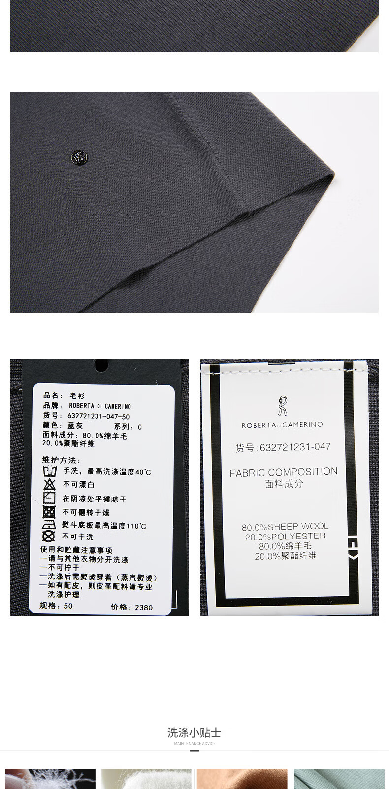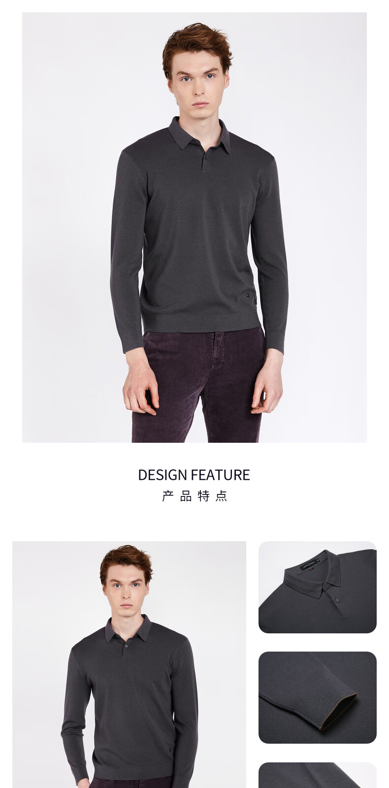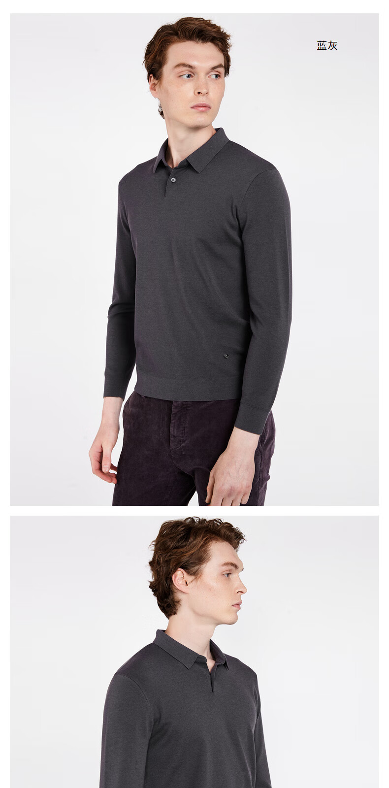 Nobeda Roberta autumn new sheep sweater long-sleeved polo shirt style sweater pullover casual sweater men's blue gray 56