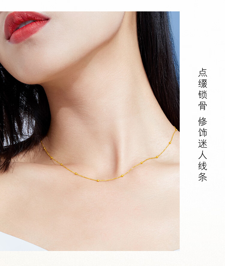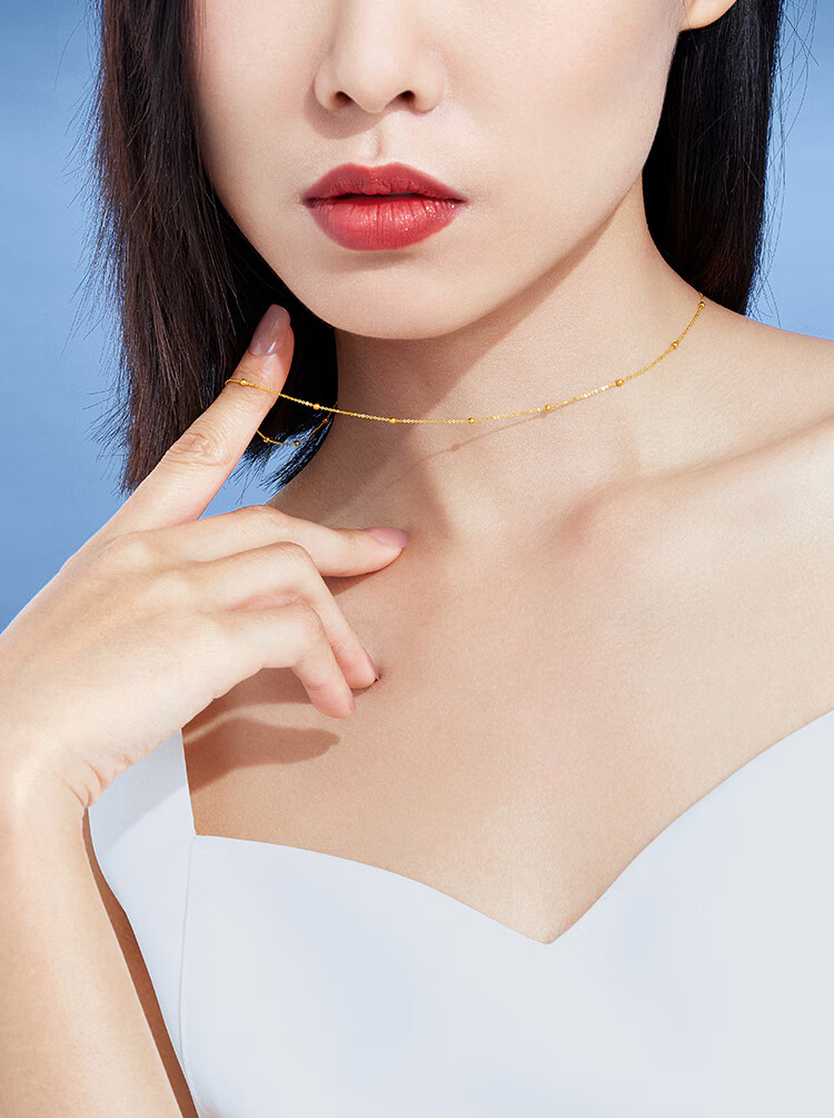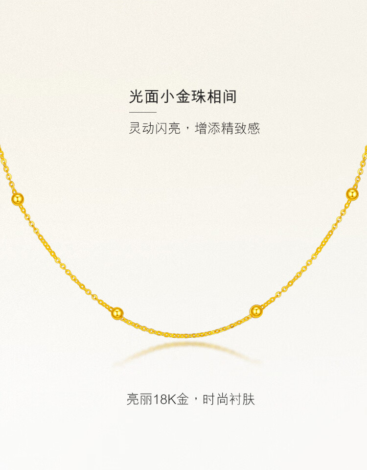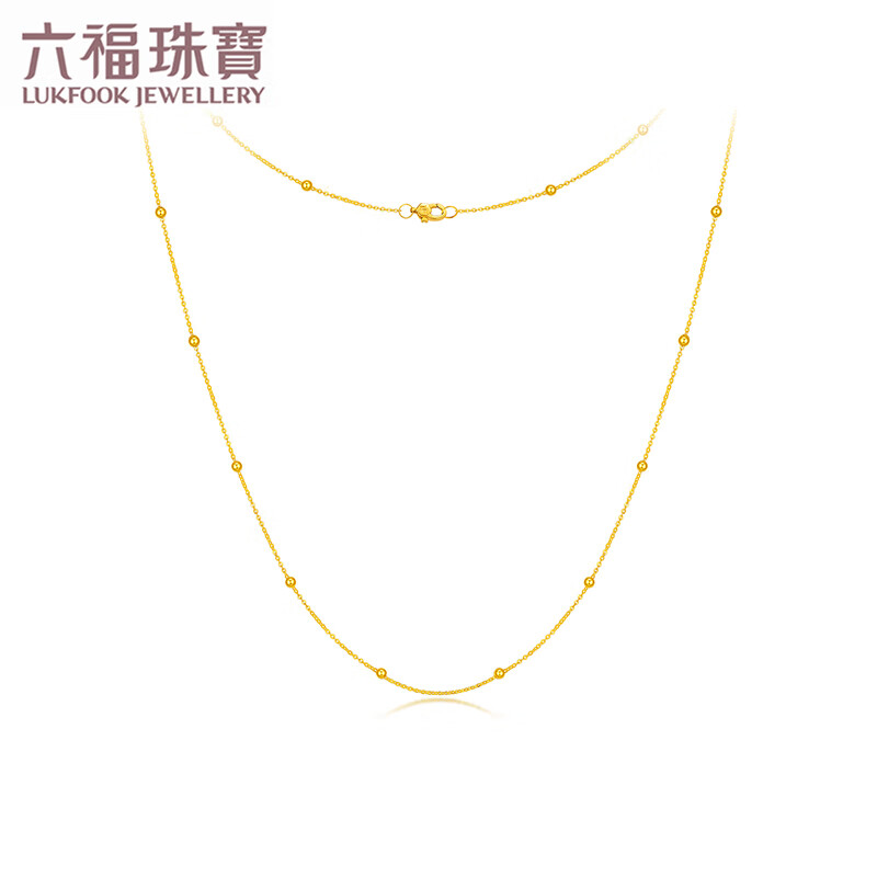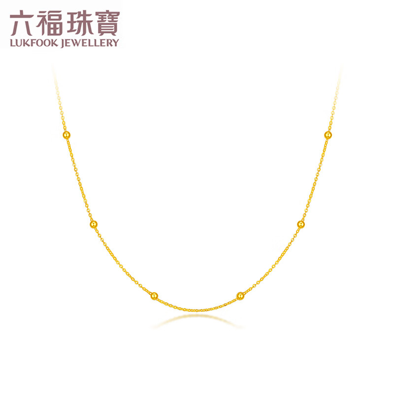 Lukfook Jewelry 18K gold round pearl necklace plain chain versatile gift L18TBKN0068Y 40cm - total weight 1.11 grams