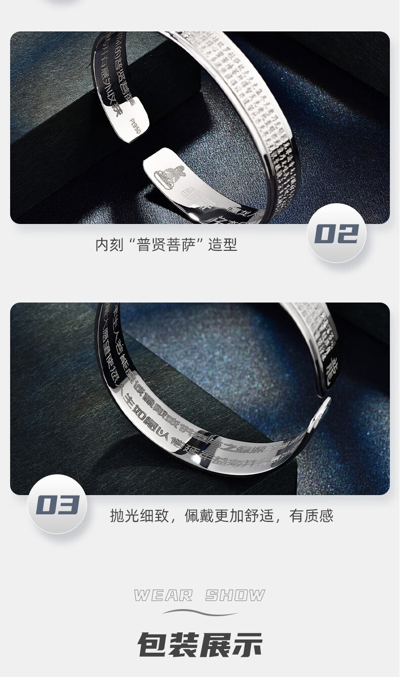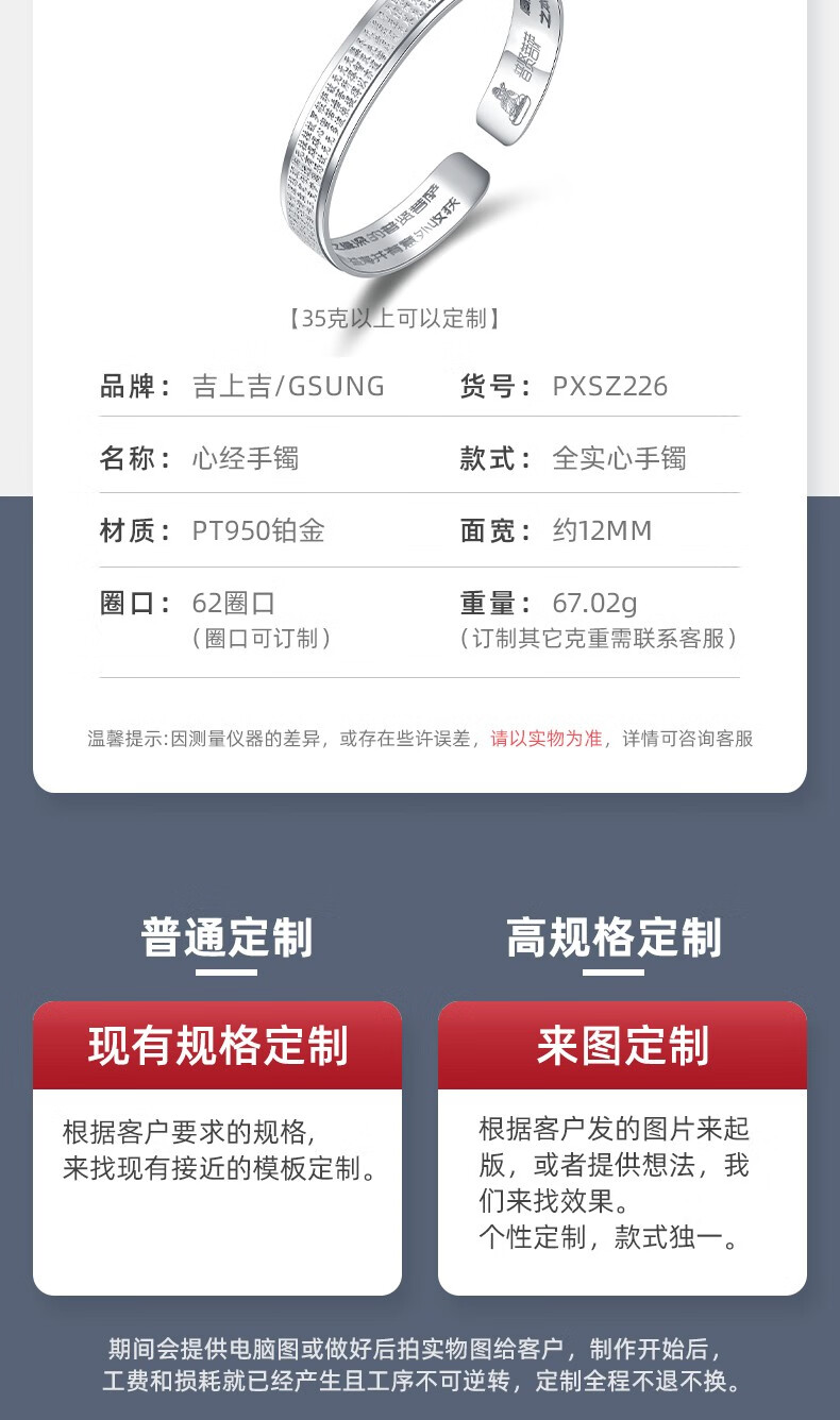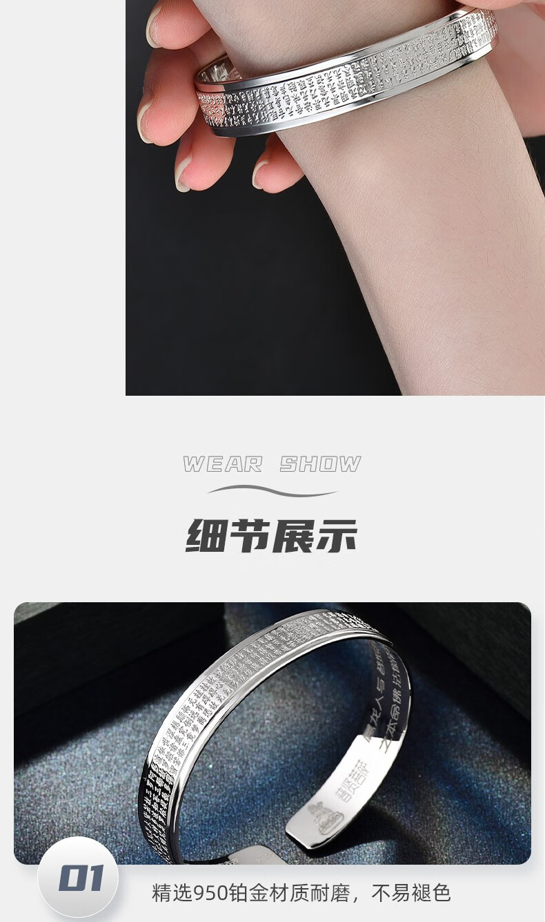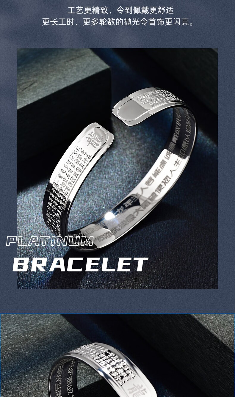 GsunG Platinum Men's Bracelet PT950 Heart Sutra Bracelet Platinum Women's Solid Bracelet Simple Glossy C-shaped Bracelet About 100g Customized Priced by the Gram