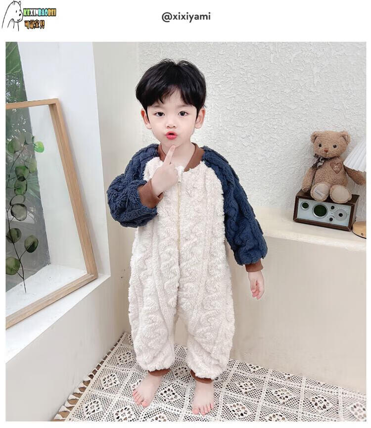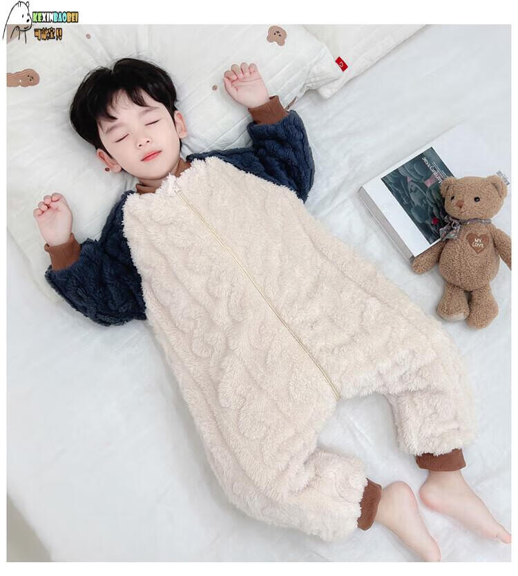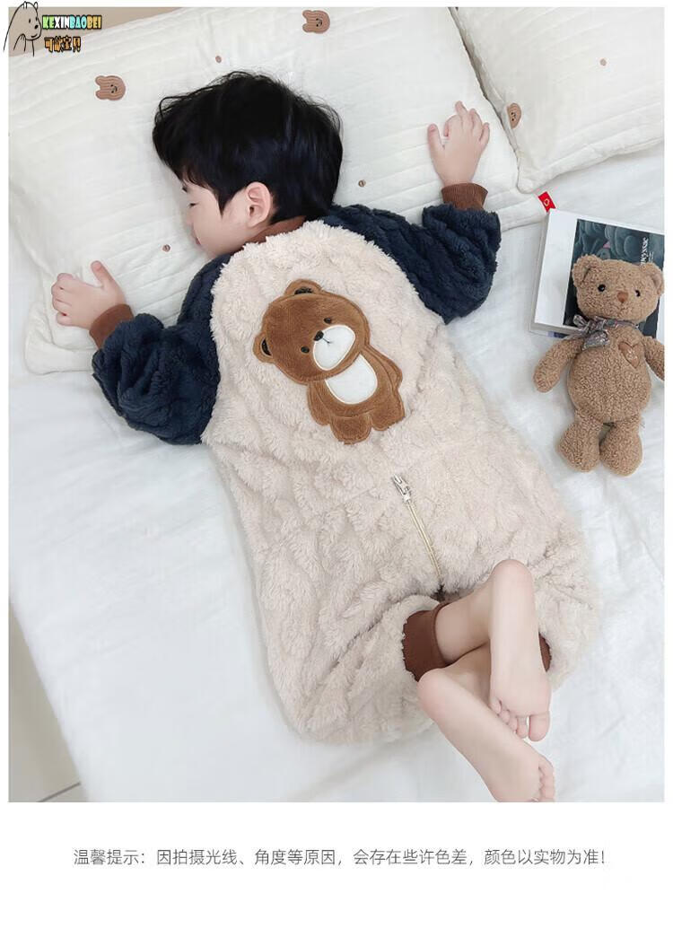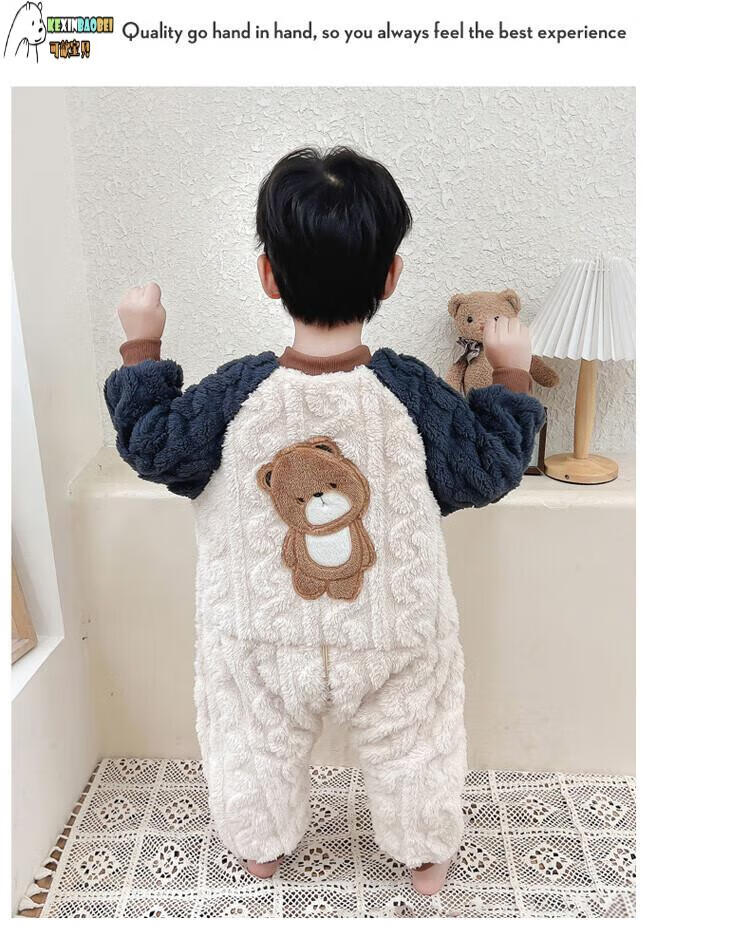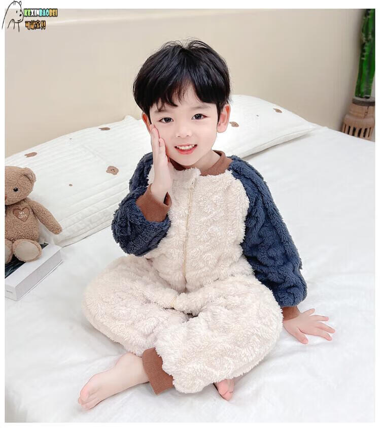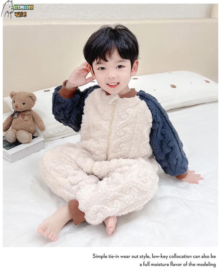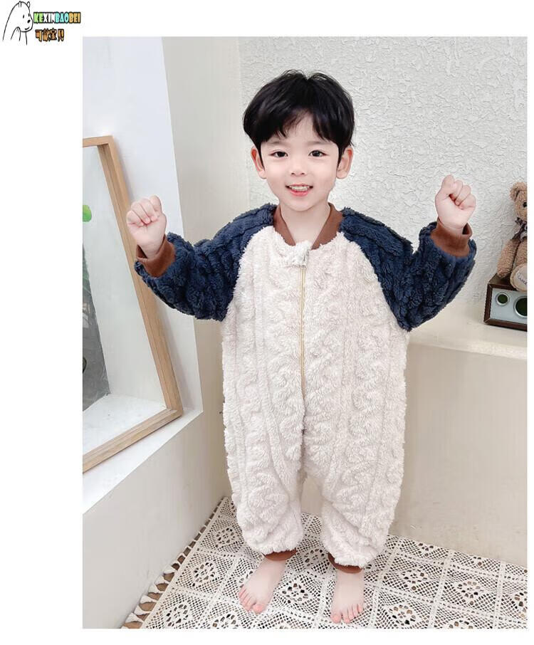 Kexin baby children's clothing children's flannel coral velvet one-piece pajamas autumn and winter double-layer thickened boy baby home clothes anti-kick sleeping bag picture color 100 size recommended 2-3 years old (height around 95)
