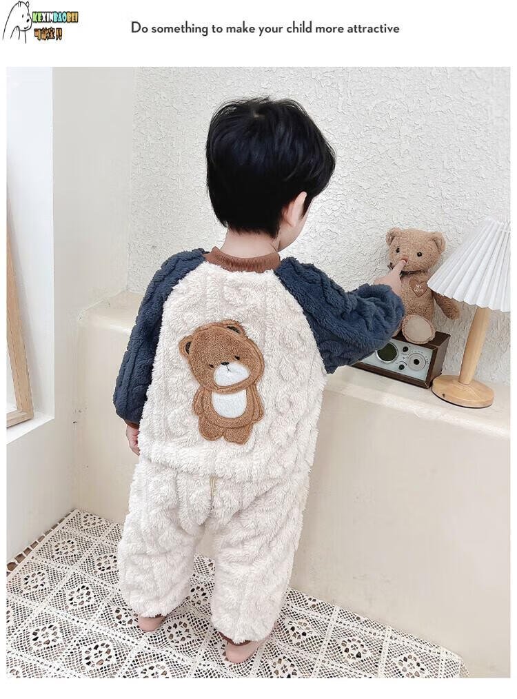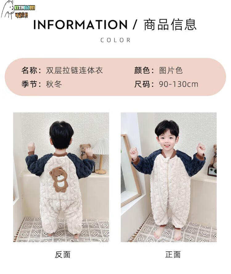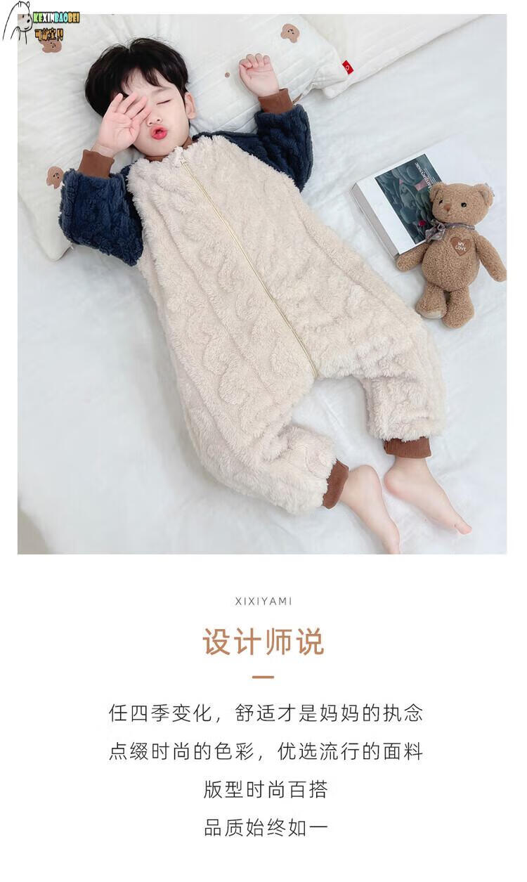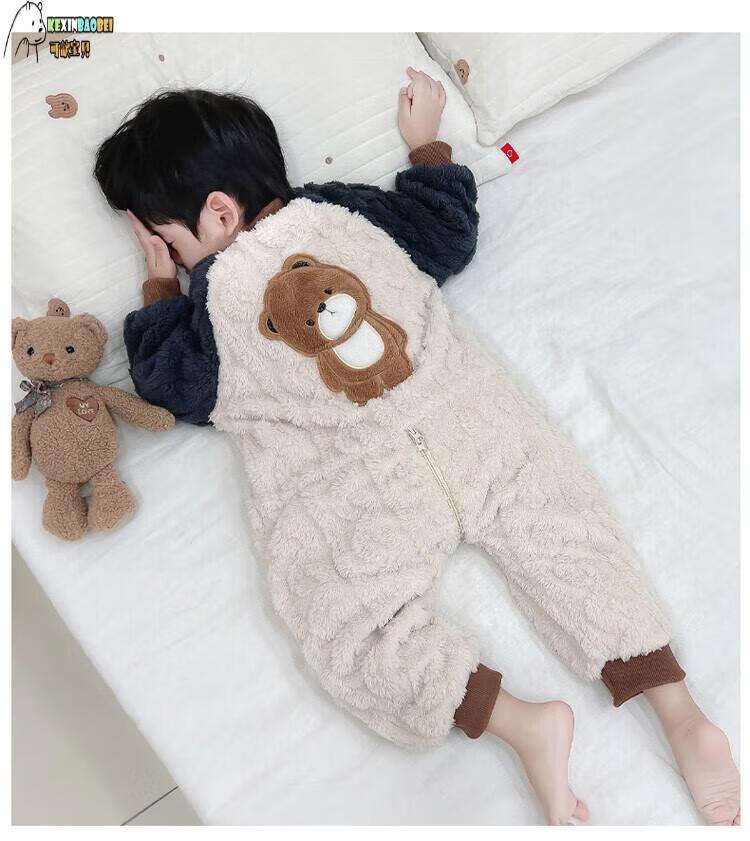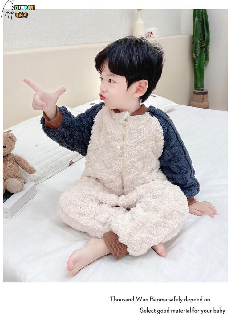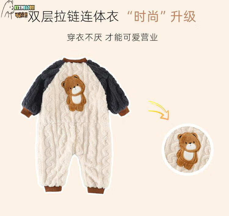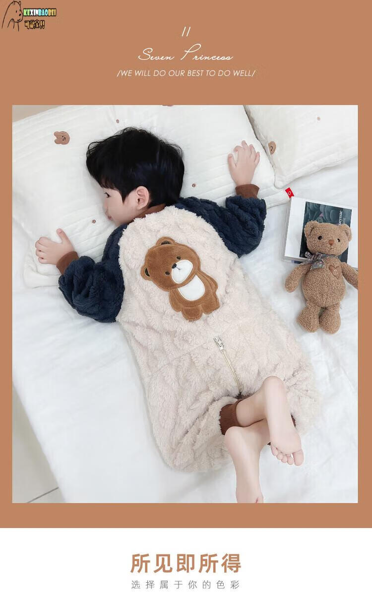 Kexin baby children's clothing children's flannel coral velvet one-piece pajamas autumn and winter double-layer thickened boy baby home clothes anti-kick sleeping bag picture color 100 size recommended 2-3 years old (height around 95)
