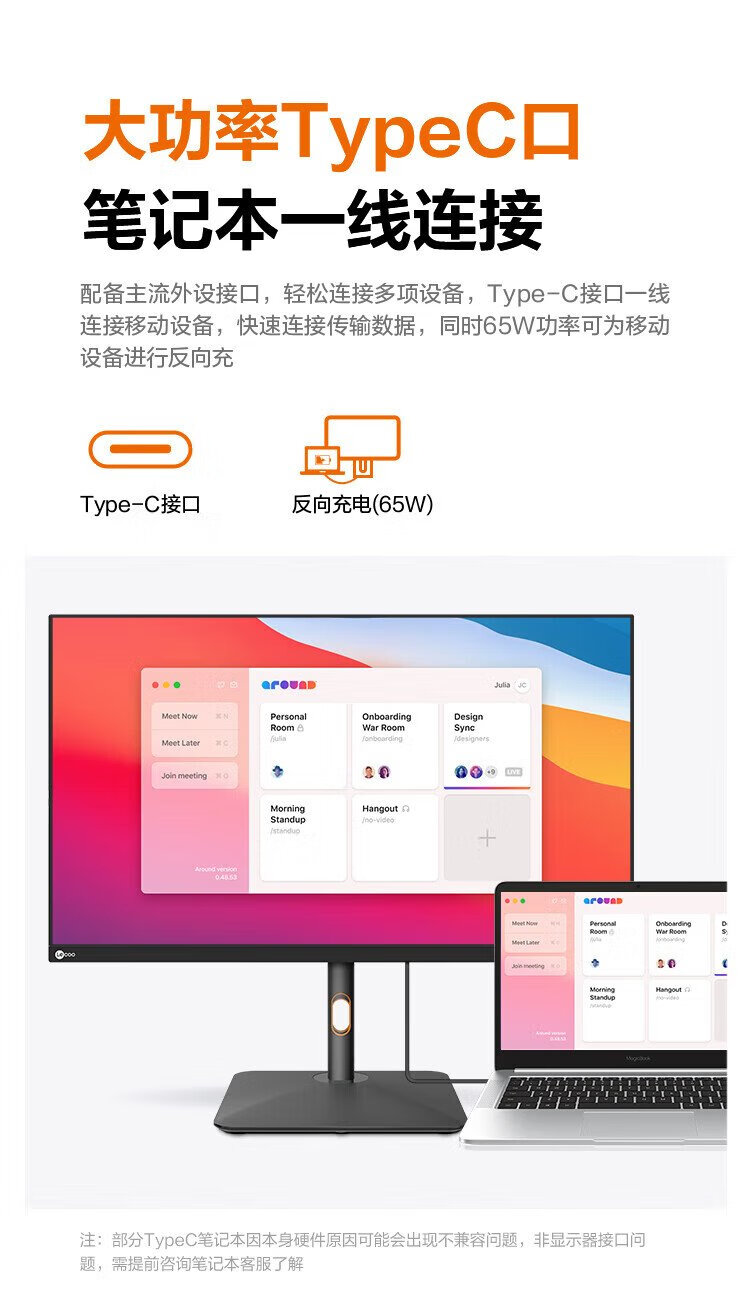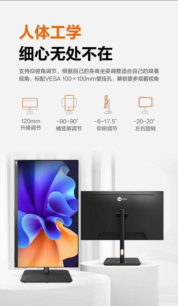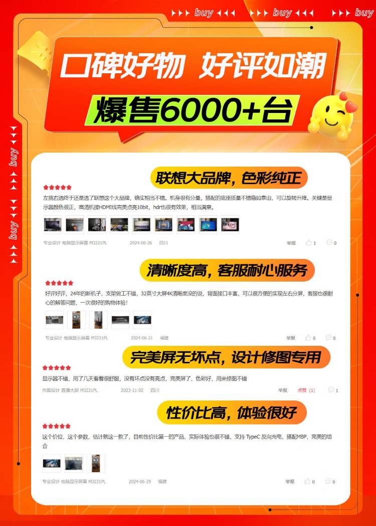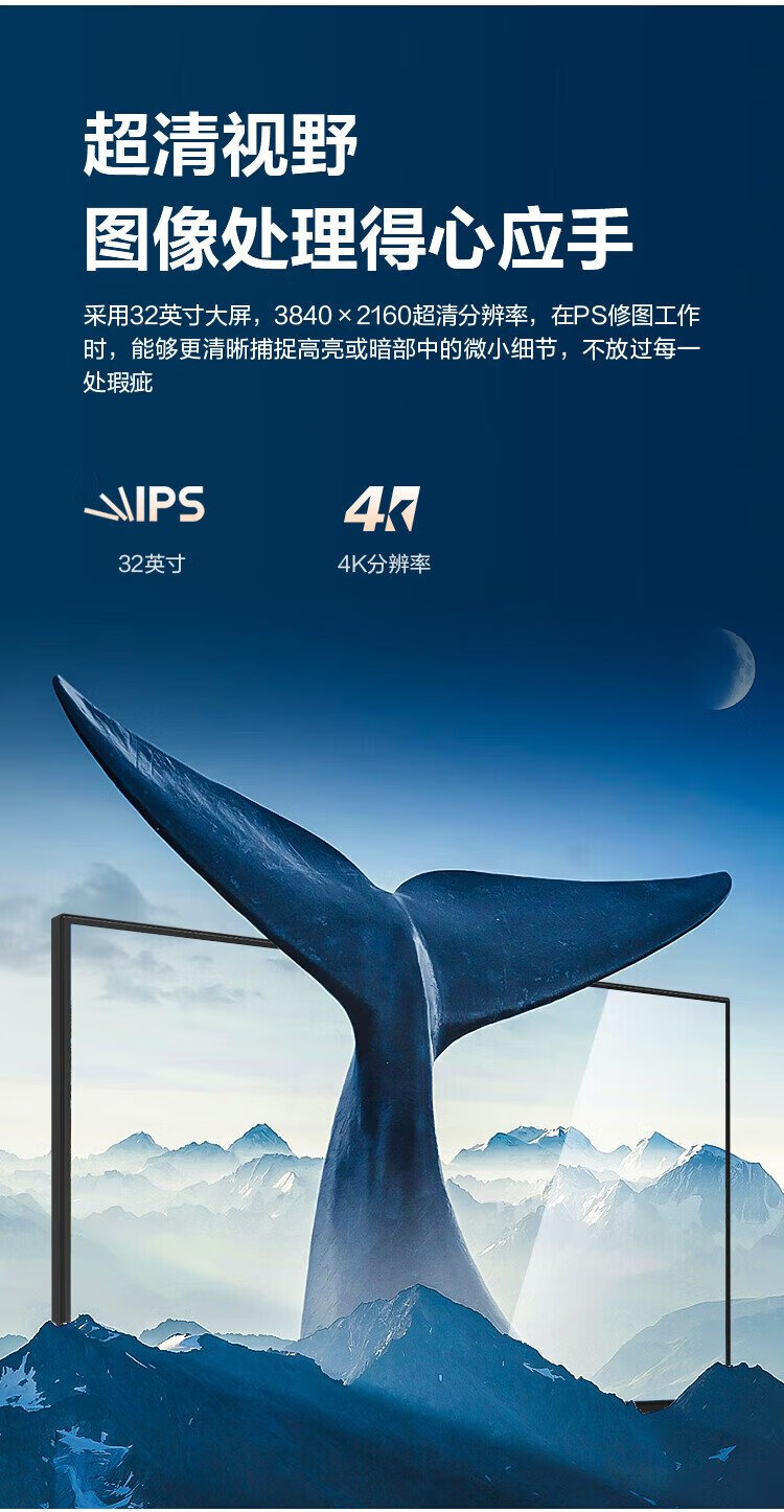 Lenovo 32-inch 4K monitor IPS screen HDR400 wide color gamut 10bit factory calibration Type-C65w interface built-in speaker rotating lift professional design computer display screen M3221PL
