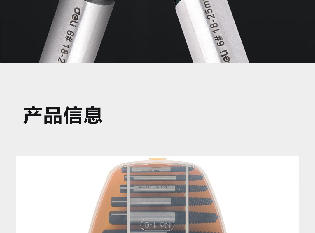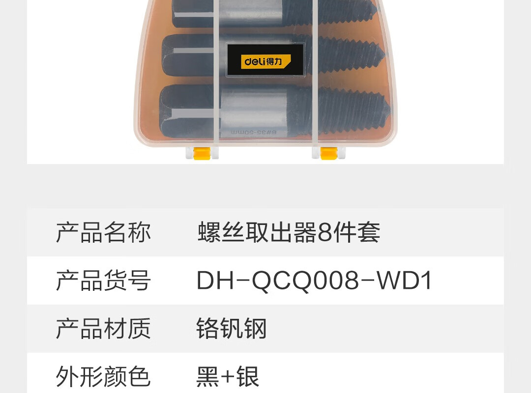 Deli Broken Screw Remover 8-piece Set Repair Sliding Sliding Screw Anti-Tooth Repair and Removal Tool Double-Headed Broken Wire Remover 3-55mm Remover 8-piece Set DH-QCQ008-WD1