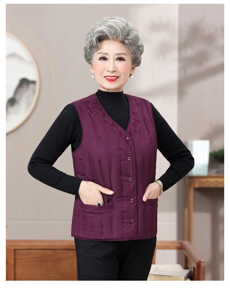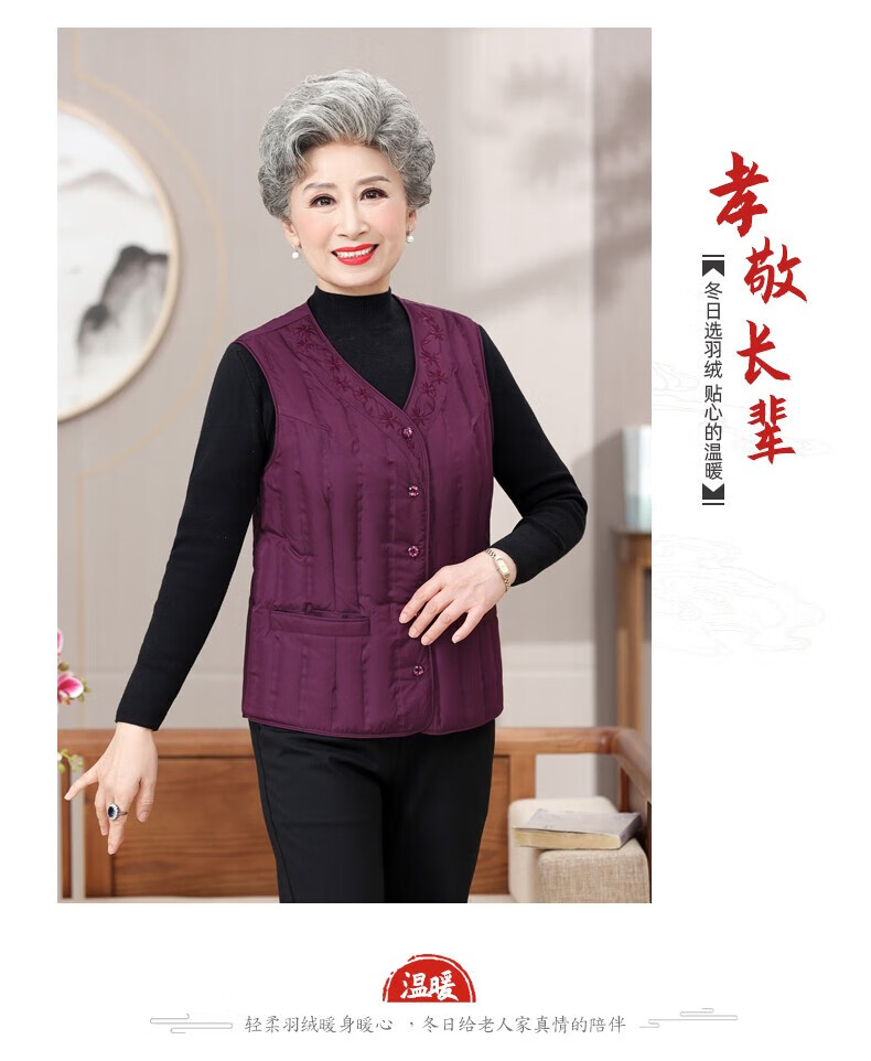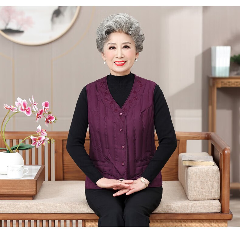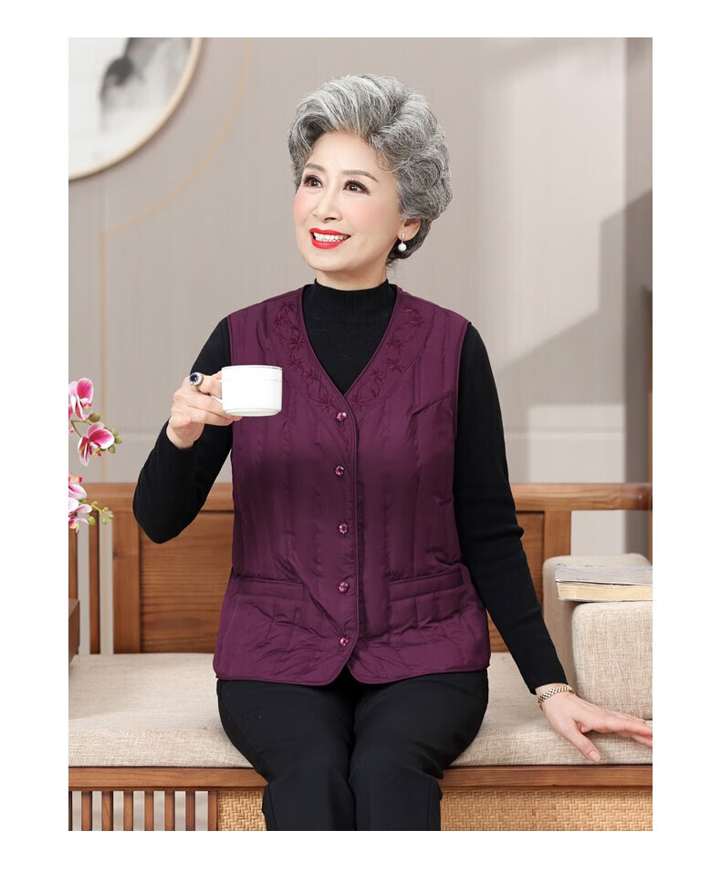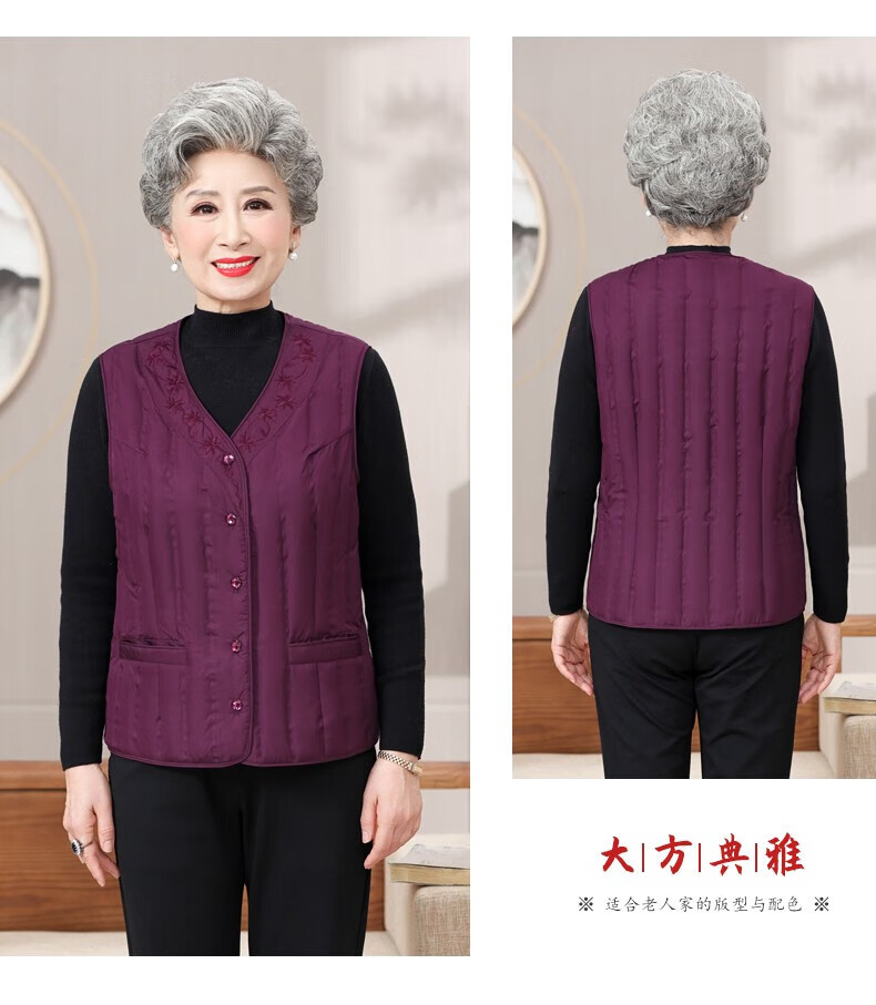 Yaya (YAYA) grandma down vest for women and the elderly, inner waistcoat, middle-aged and elderly mother's outer wear autumn and winter vest jacket K Purple XL