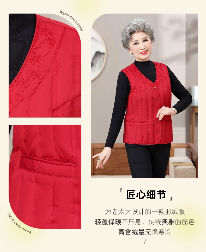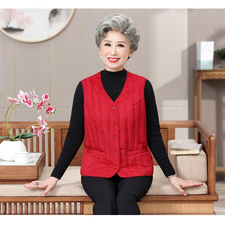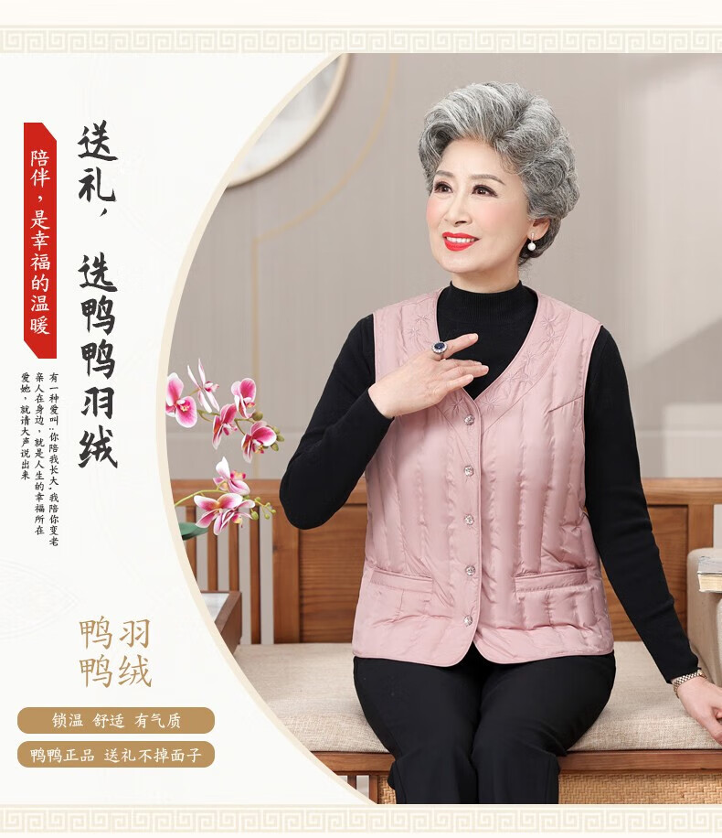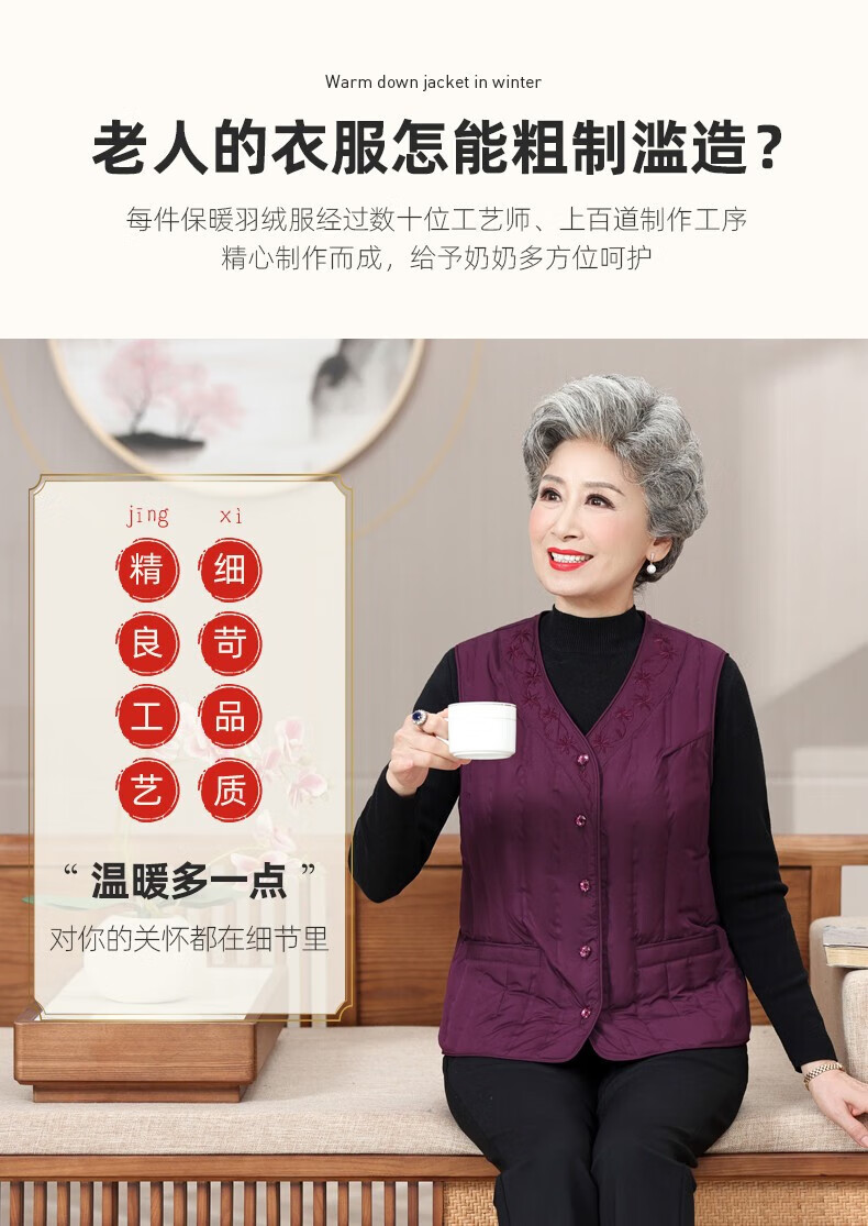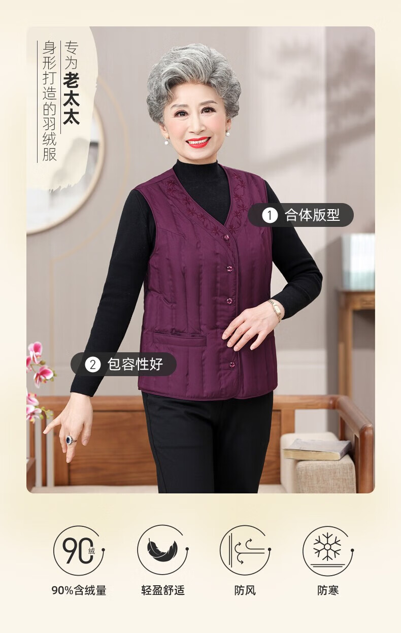 Yaya (YAYA) grandma down vest for women and the elderly, inner waistcoat, middle-aged and elderly mother's outer wear autumn and winter vest jacket K Purple XL
