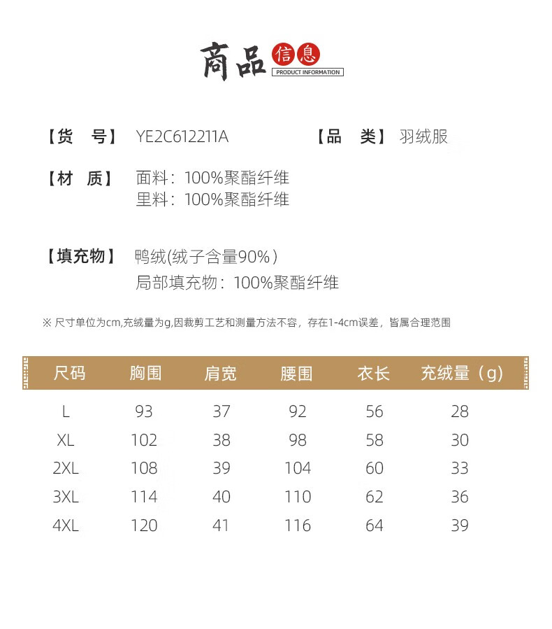 China (cm) 165 / 88-90 170 / 96-98 175 / 108-110 180 / 118-122 185 / 126-130