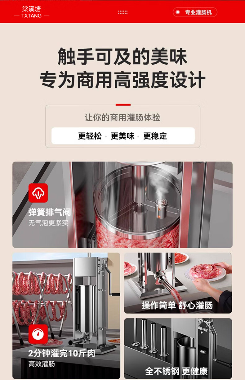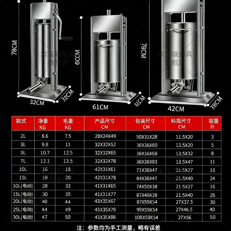 Tangxitang Vertical Stainless Steel Sausage Filling Machine Home Commercial Manual Electric Sausage Stuffing Machine Sausage Stuffing Device Sausage Filling Tool 2L Manual Meat Filling Approximately 3.5 Jin Jin is equal to 0.5 kg