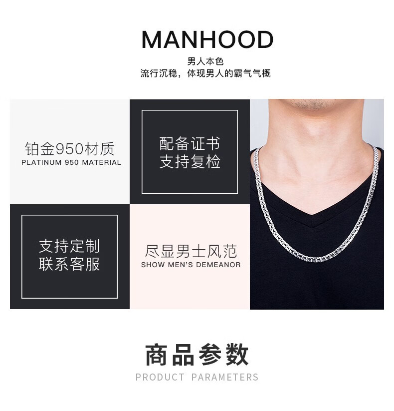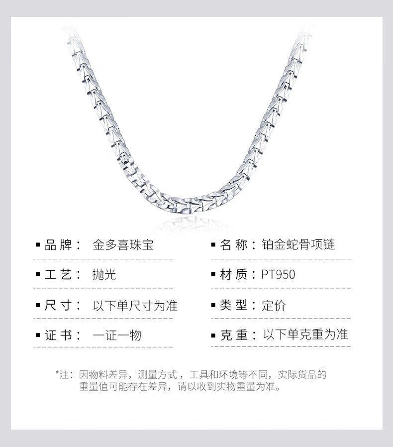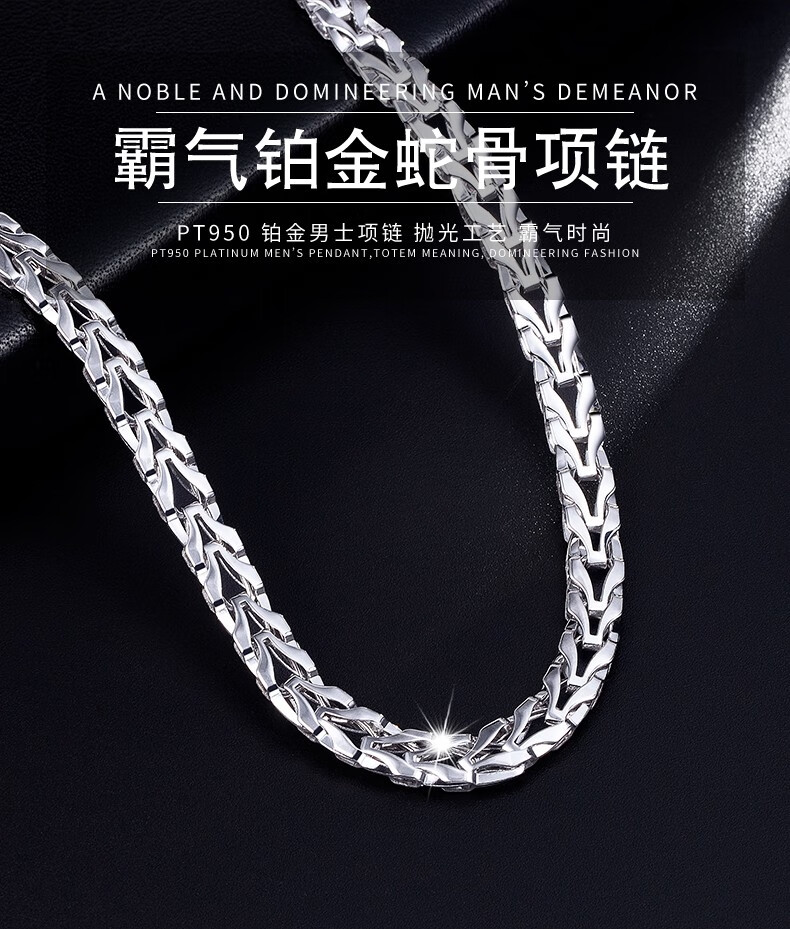Jin Duoxi pt950 platinum necklace men's snake bone thick platinum necklace plain chain men's and women's platinum thick chain about 26.66 grams long 62 cm thick 4.2mm