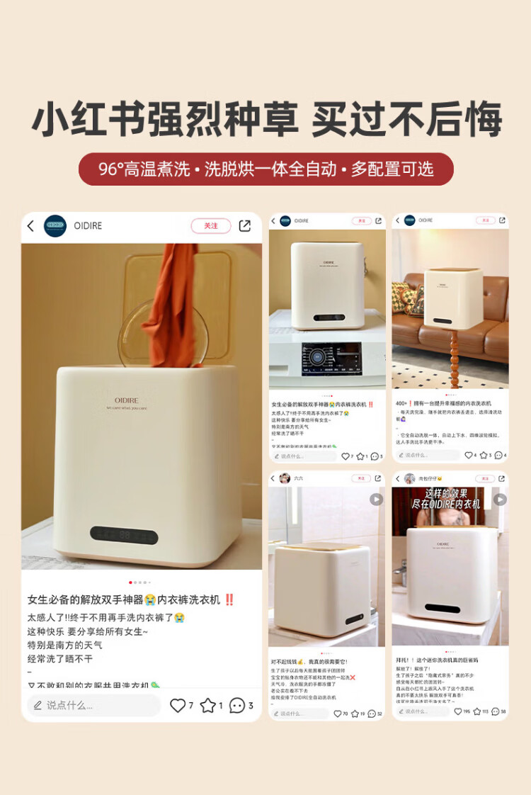 OIDIRE (Odd) Underwear Washing Machine High Temperature Cooking, Washing and Sterilization Mini Washing Machine Small Underwear Washing Machine Underwear Washing Socks Special Fully Automatic Washing and Drying Washing Machine ODI-XYJ13A Boiling and Washing + 304 Barrels + Ions + Drying