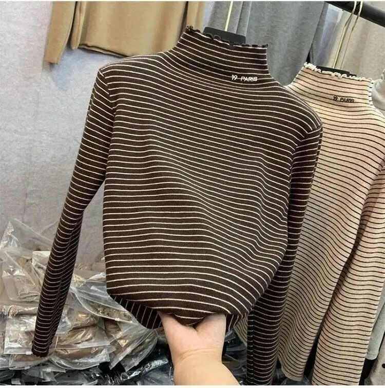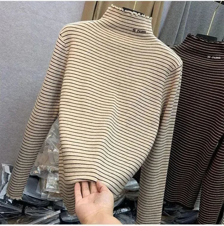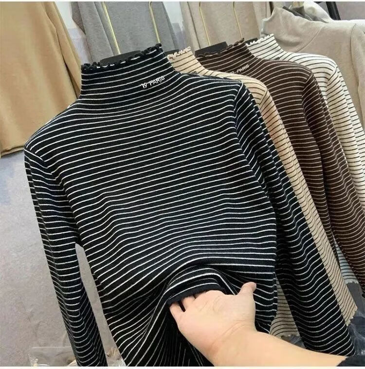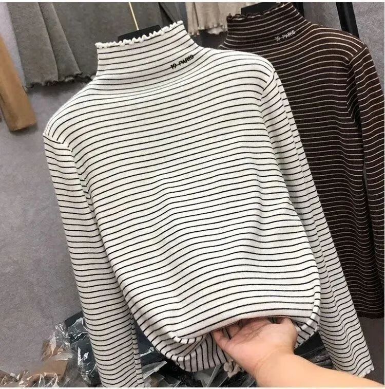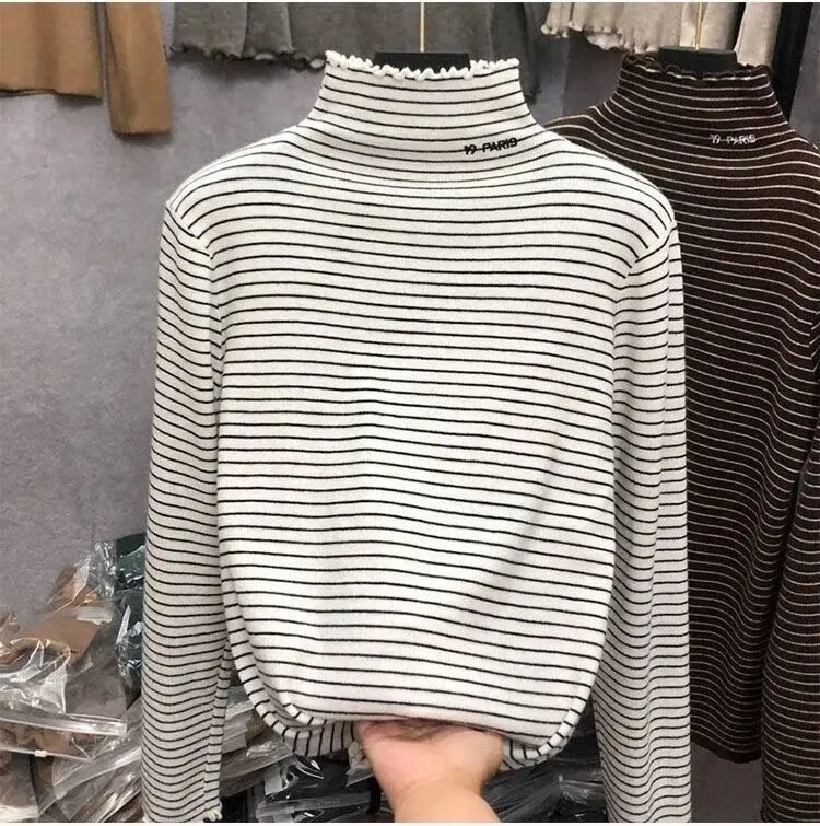 Hanghe 2-pack new German velvet bottoming shirt for autumn and winter with velvet warm half turtleneck long-sleeved T-shirt for middle and large children, apricot letter + black cat 130 recommended height 120-130cm