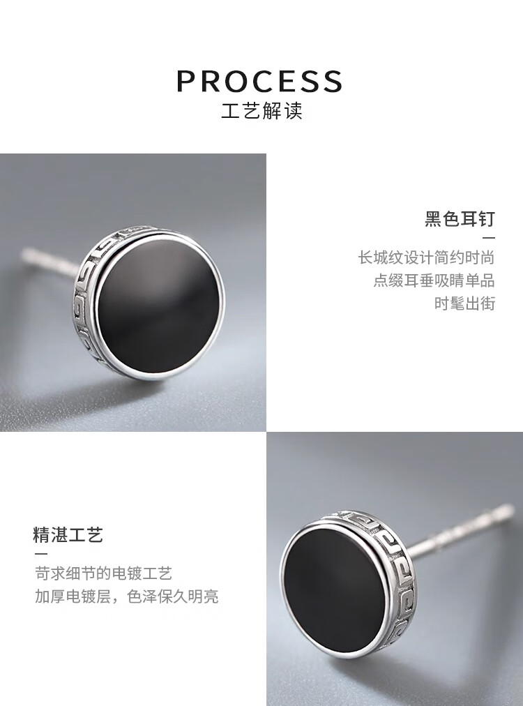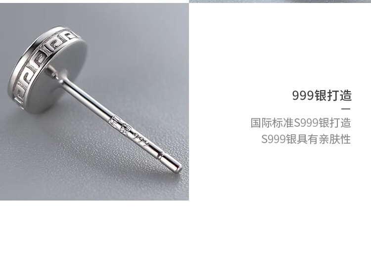 Lnieer 999 Pure Silver Men's Earrings Single Men's Earrings Trendy Black Round Simple Couple Style Silver Earrings for Boys Single Price 999 Pure Silver Earrings