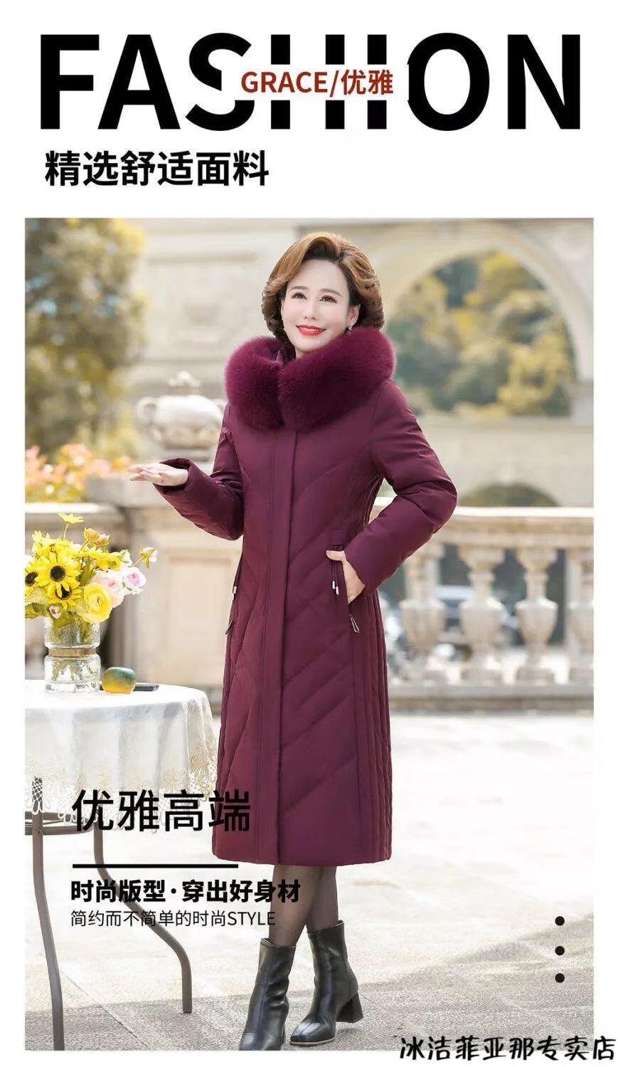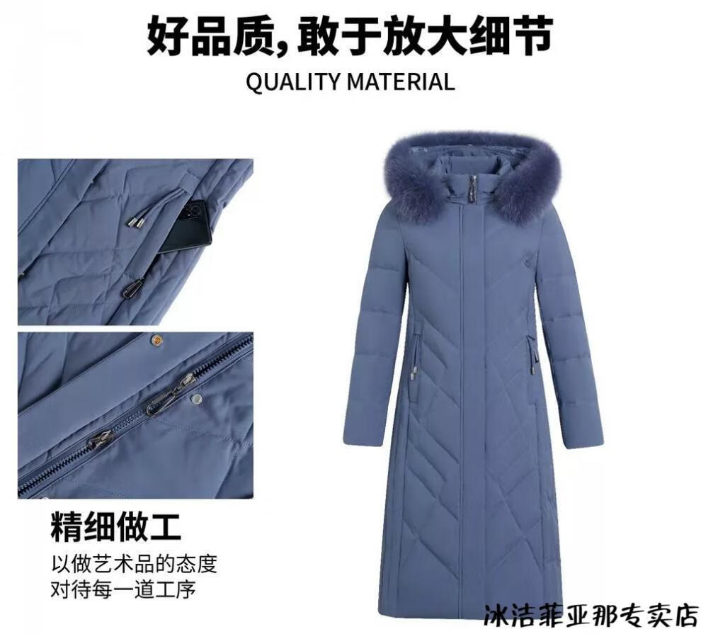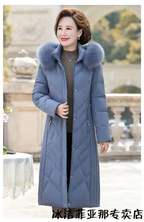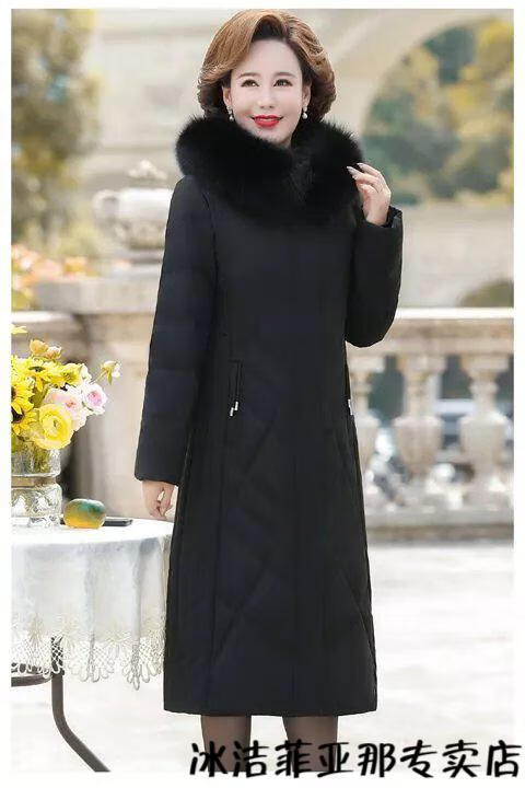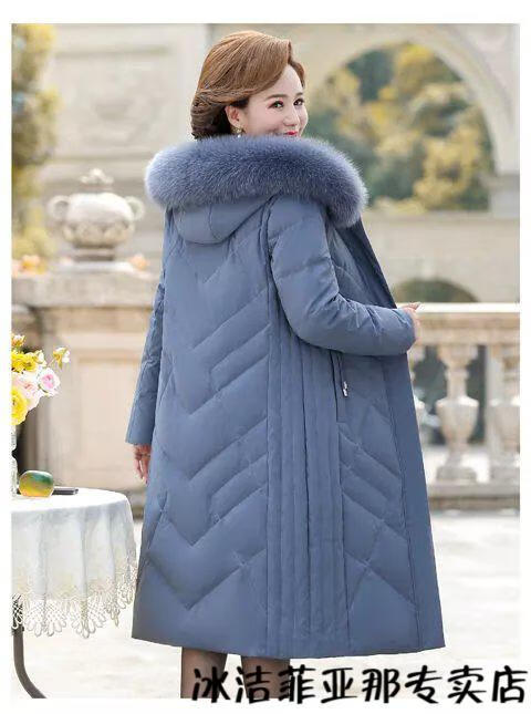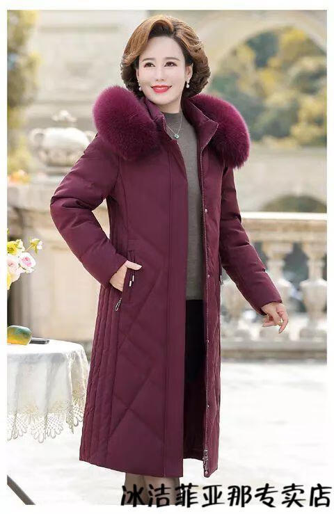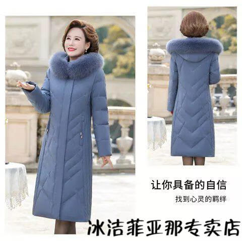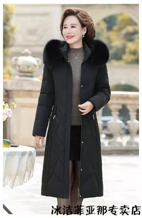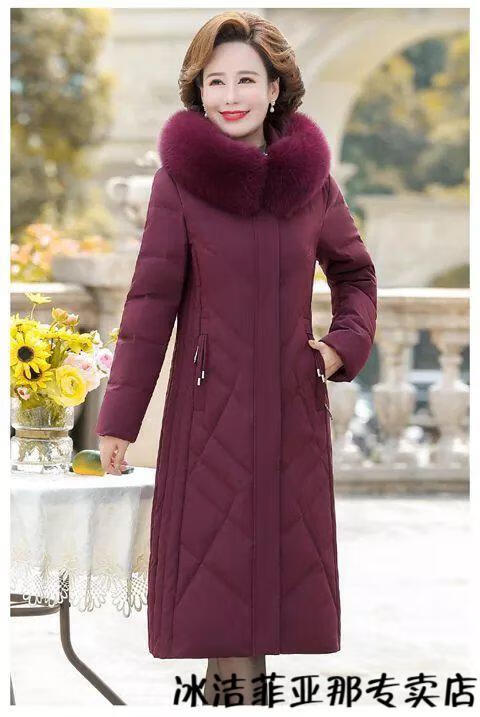 Pierre Cardin middle-aged and elderly down jacket women's new white duck down mother's wear long knee-length slim large size winter jacket pea green temperament and fashionable hat removable 5XL recommended 156-170Jin Jin equals 0.5 kg