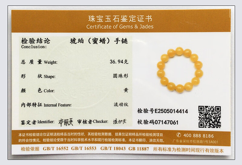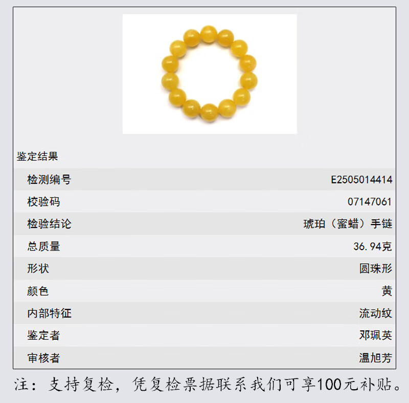 Hupai One thing, one picture, one certificate, natural beeswax bracelet, men's bracelet, Russian raw material, chicken fat yellow, no cracks, bracelet 36.94g 16.6mm