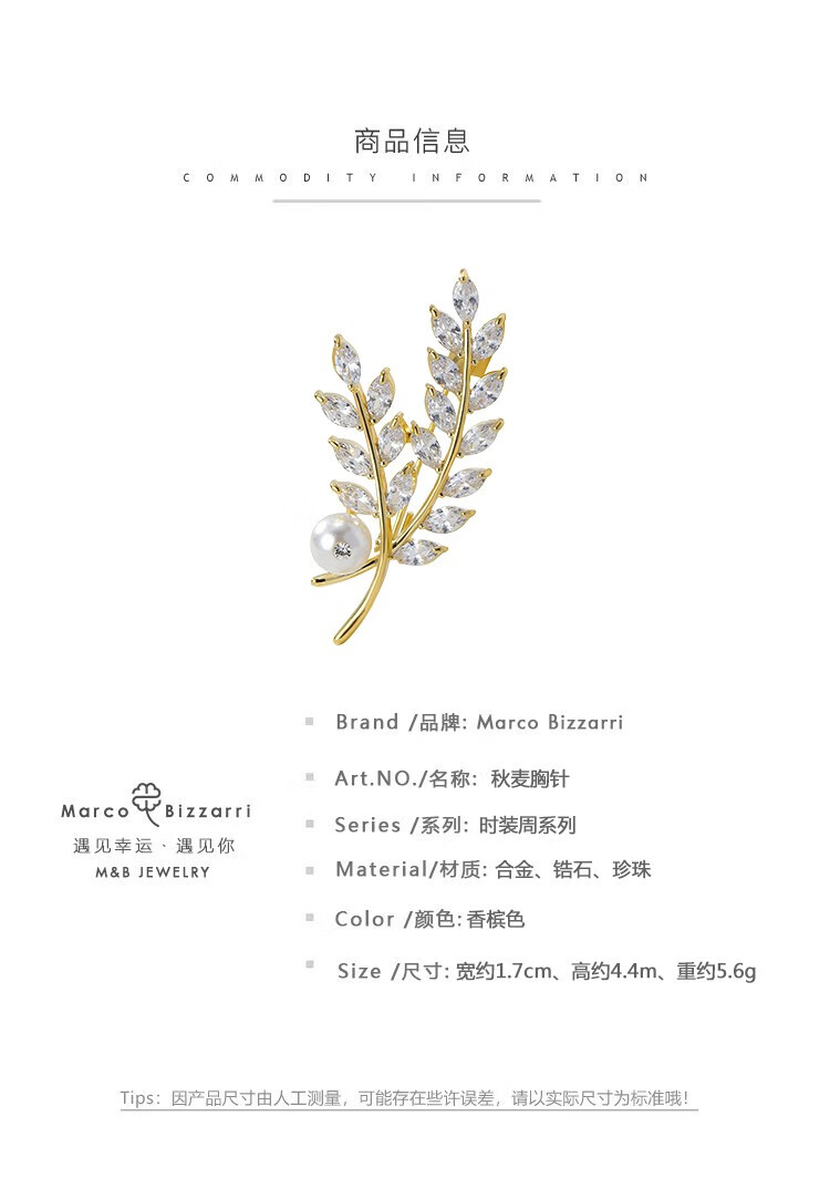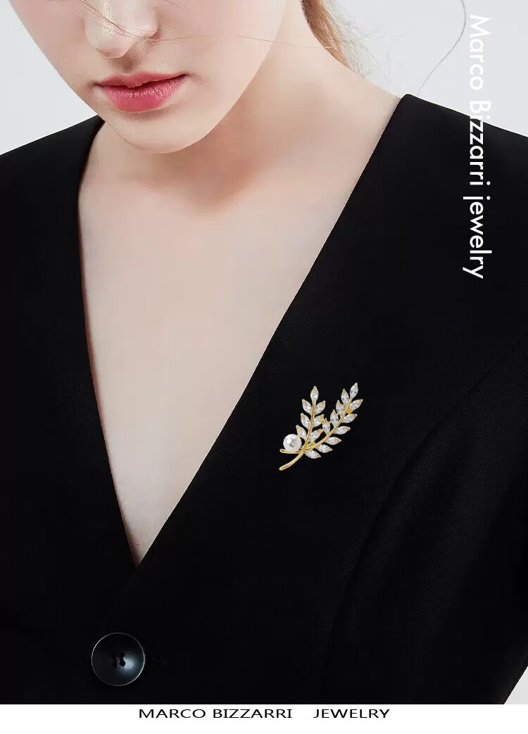 Marco Bizzarri high-end brand brooch, wheat ear pearl brooch, high-end feminine and exquisite corsage, suit anti-exposure accessories, Valentine's Day gift for girlfriend, wife's birthday gift