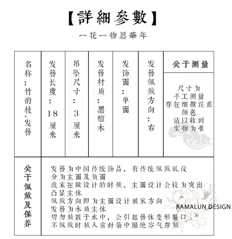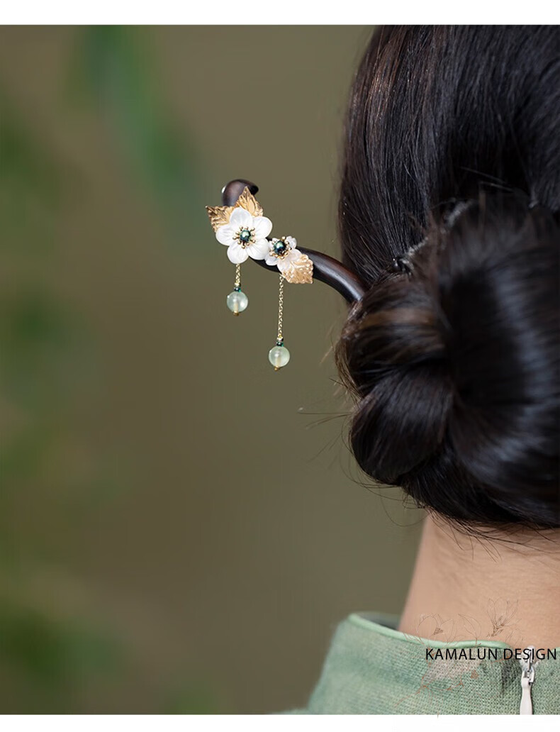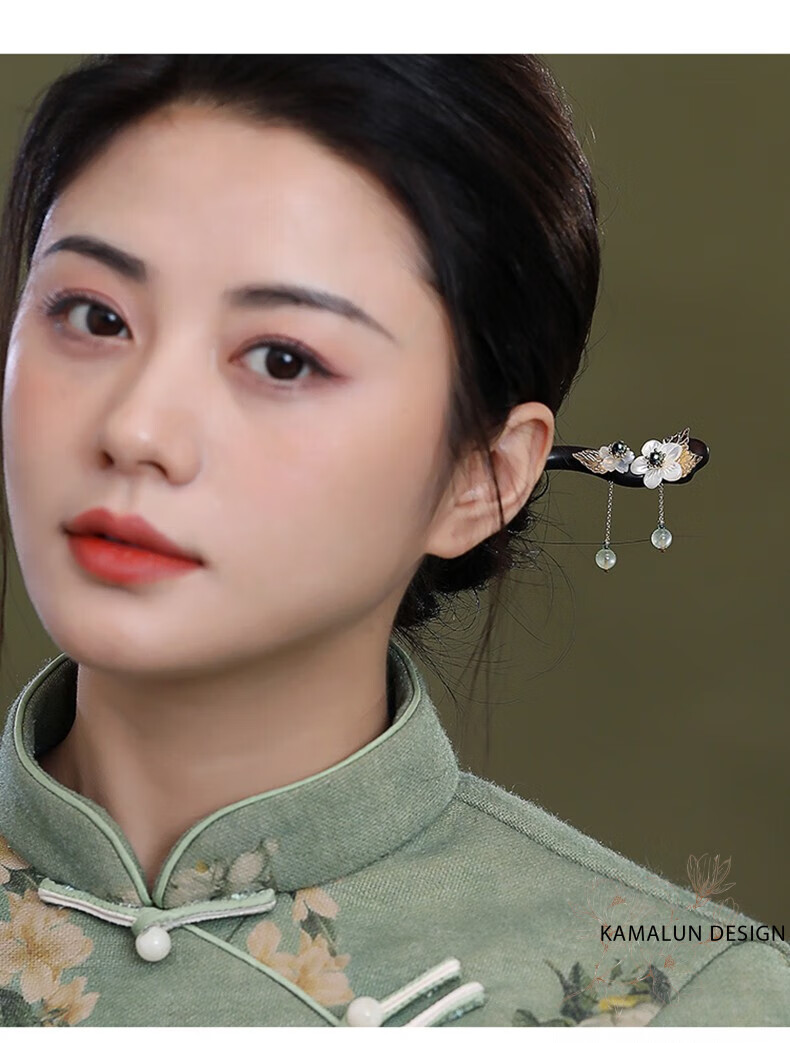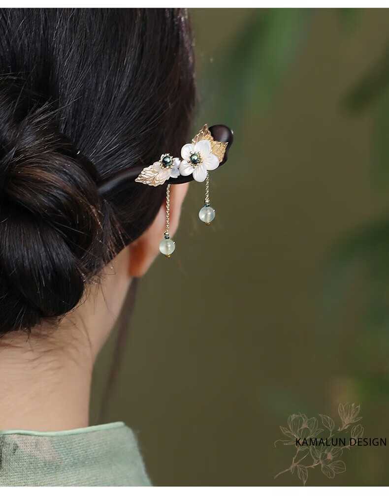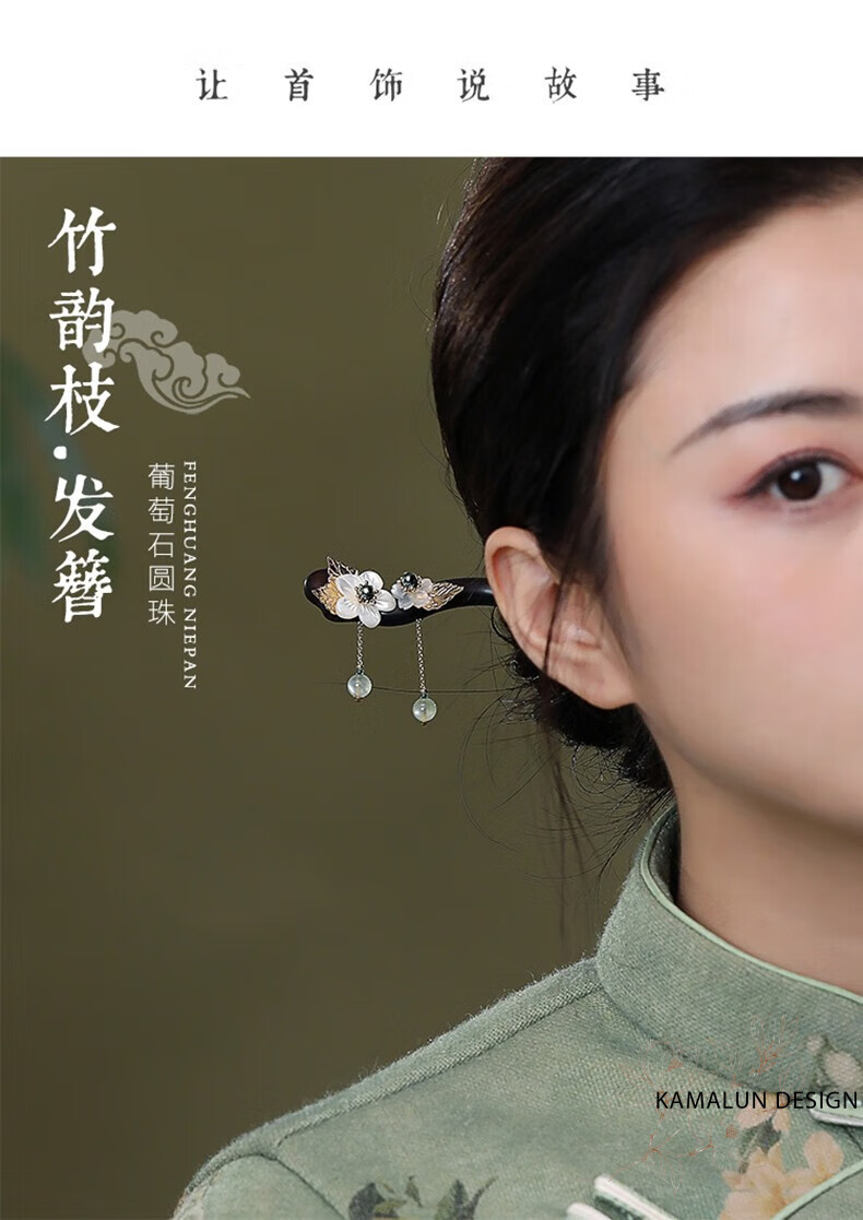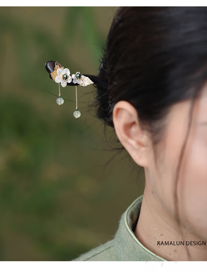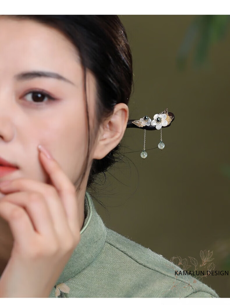 Kamalun (KAMALUN) ebony hairpin, ancient style hairpin, tassel step rocking hairpin, elegant Hanfu headdress, Chinese style hairpin, gift to girlfriend, bamboo rhyme branch hairpin + brand gift box