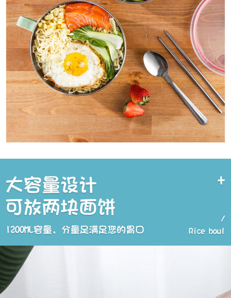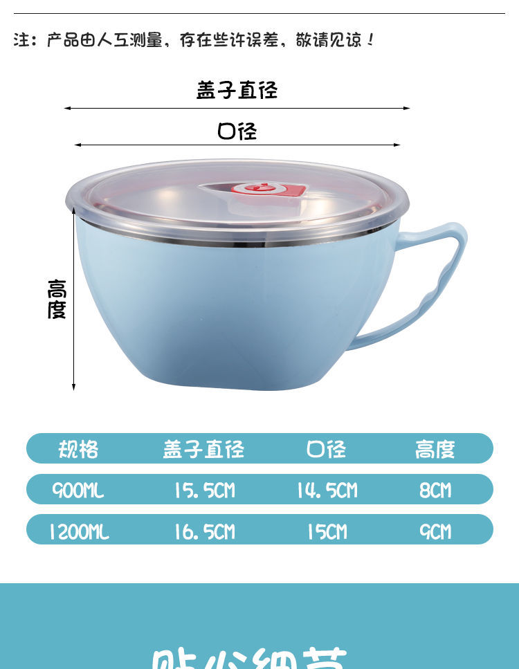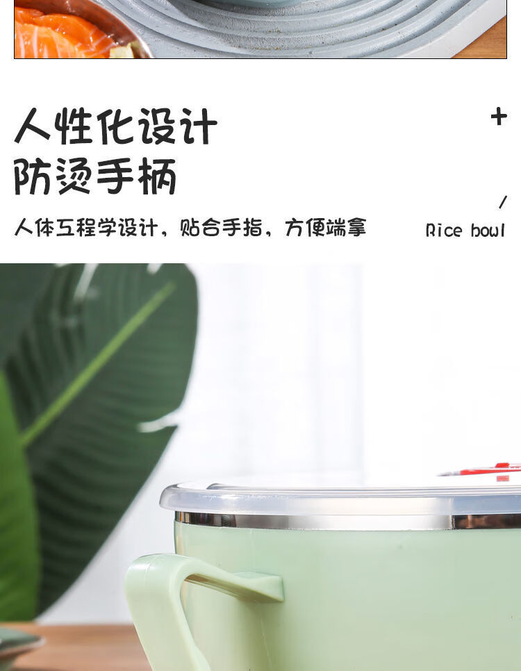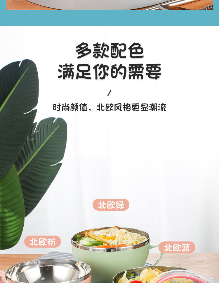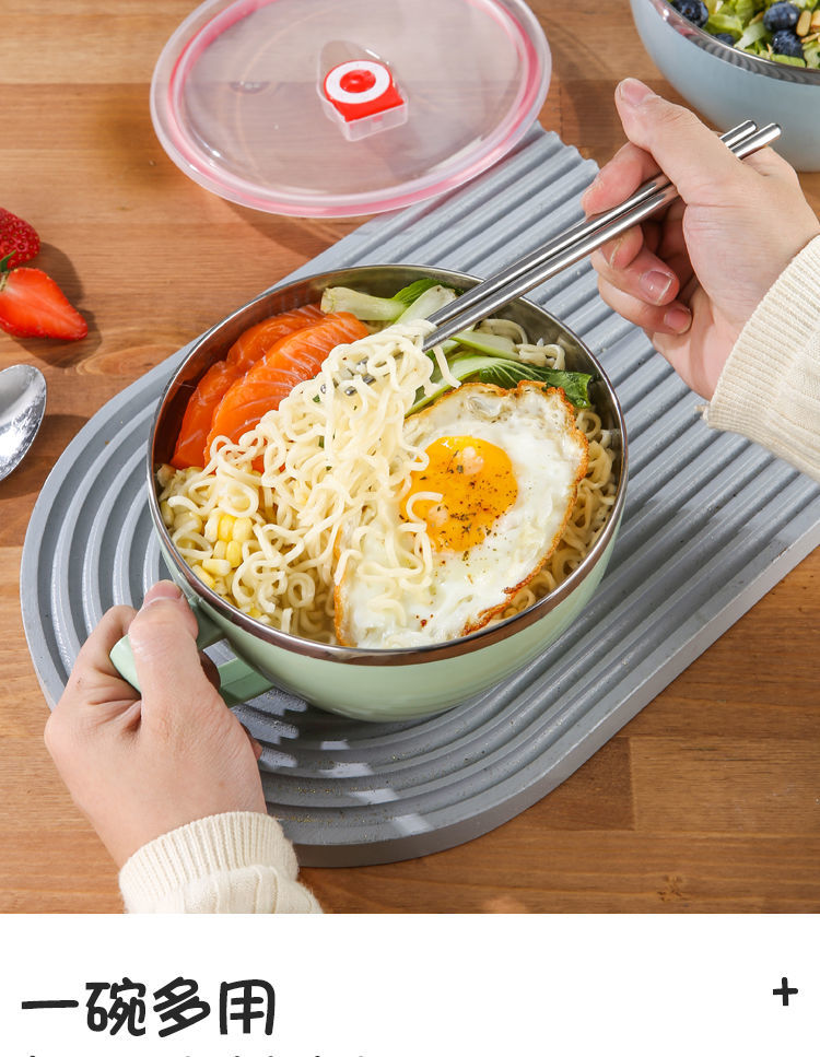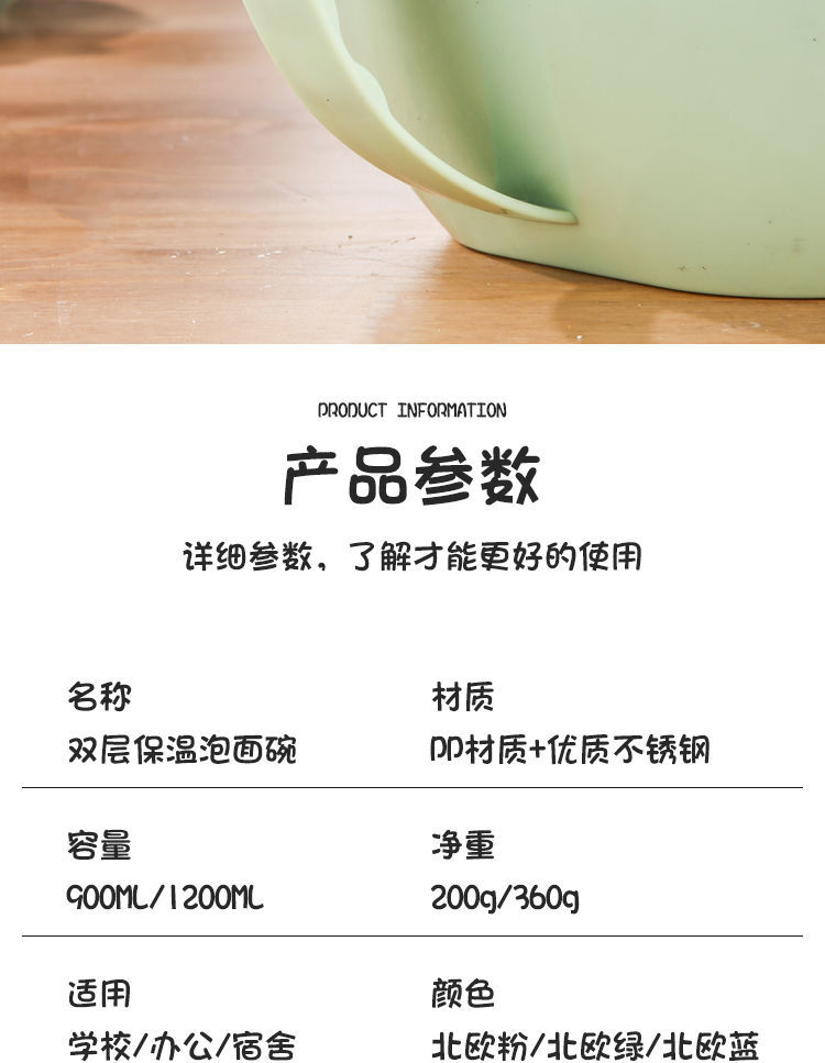 Lunch box for work, stainless steel instant noodle bowl with lid, student dormitory instant noodle bowl, large anti-scald soup cup, large capacity fast food lunch box, customized Nordic green 900ML (with spoon)
