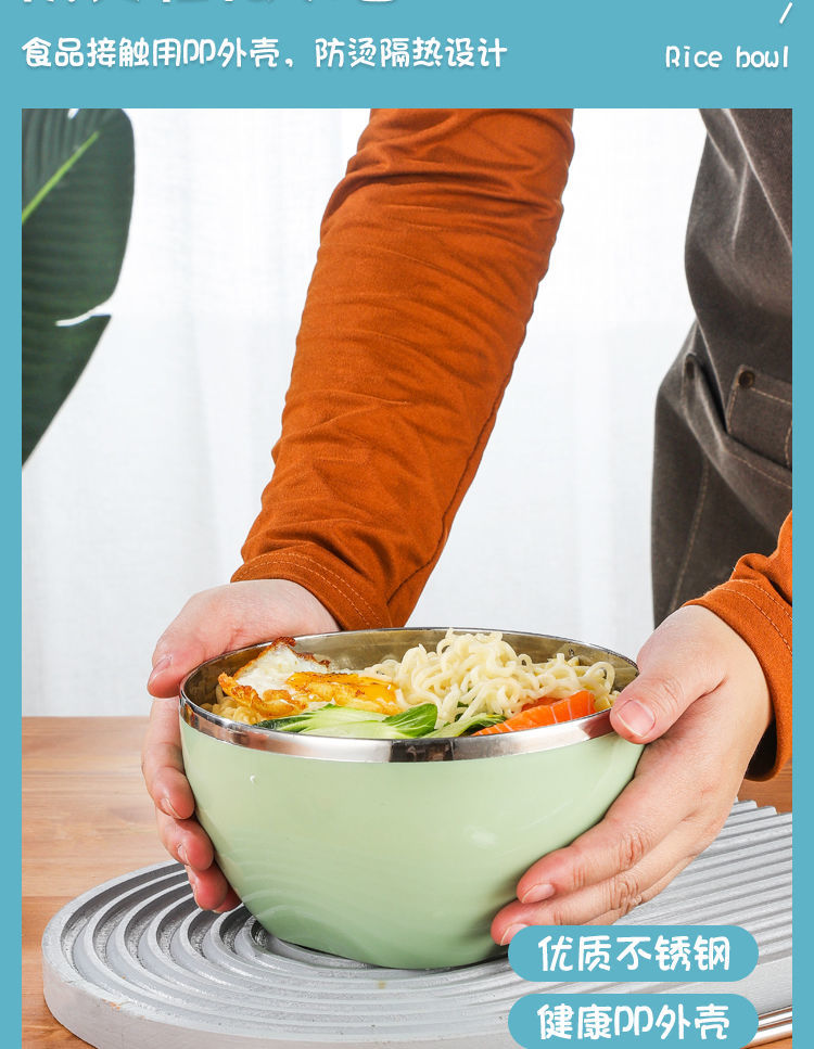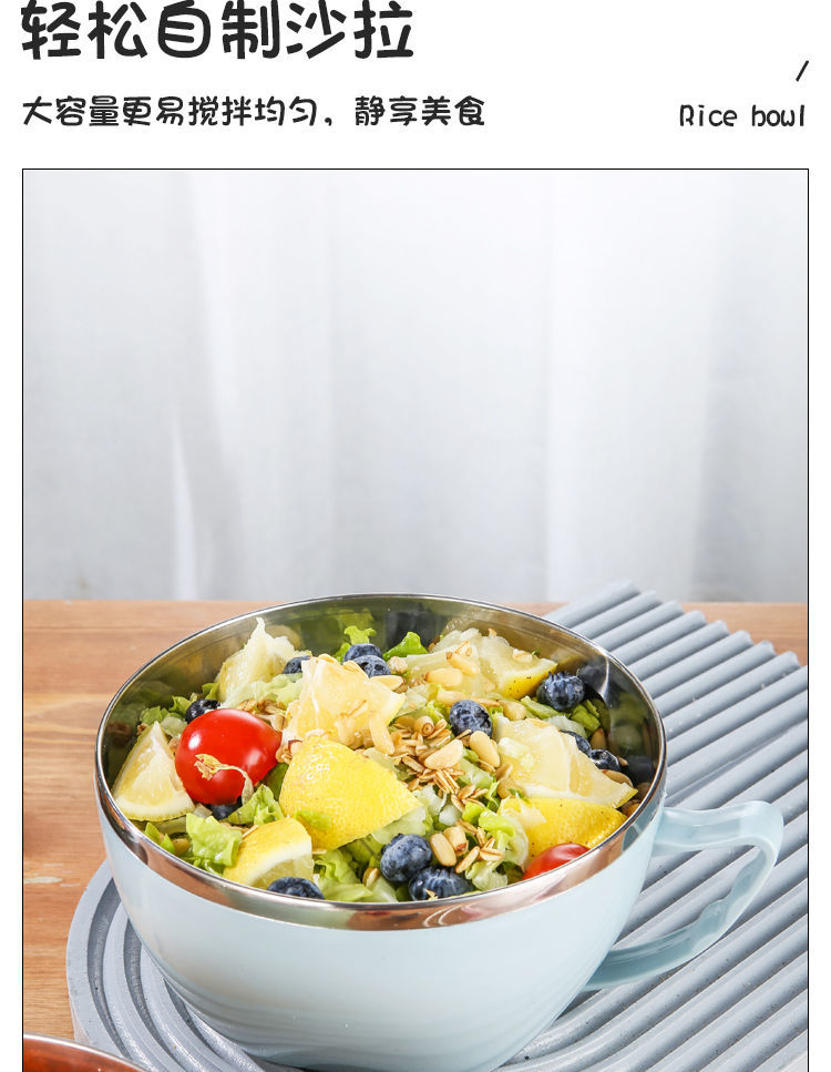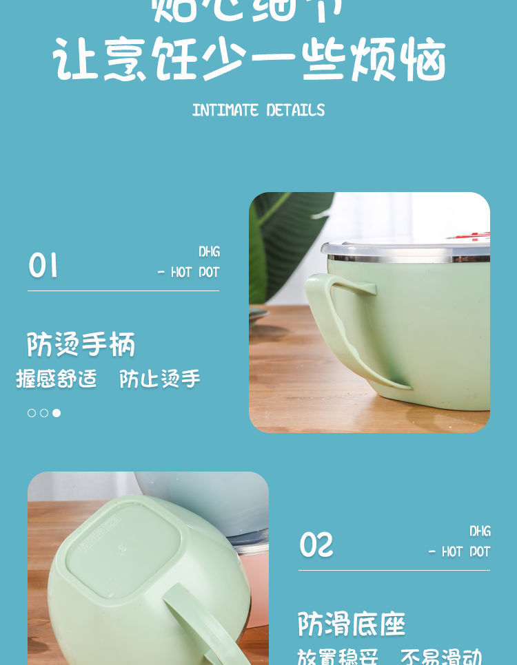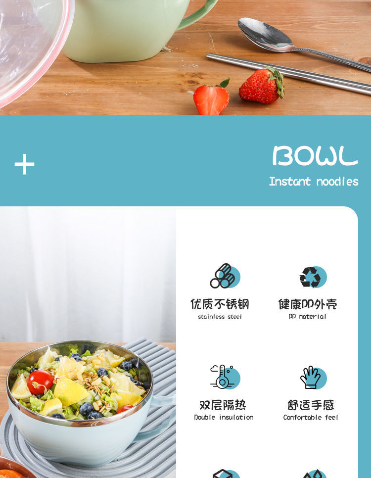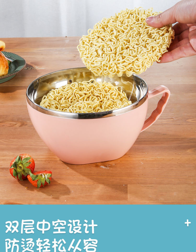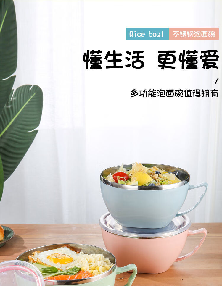 Lunch box for work, stainless steel instant noodle bowl with lid, student dormitory instant noodle bowl, large anti-scald soup cup, large capacity fast food lunch box, customized Nordic green 900ML (with spoon)