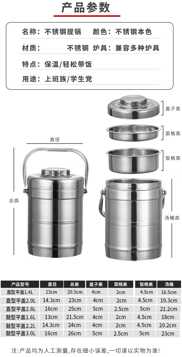 Tijia stainless steel pot large capacity double-layer insulated lunch box for students and office workers portable anti-spill multi-layer with rice insulation 1.4L insulated pot straight 3-6 hours
