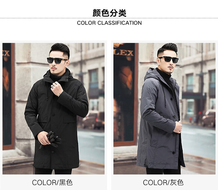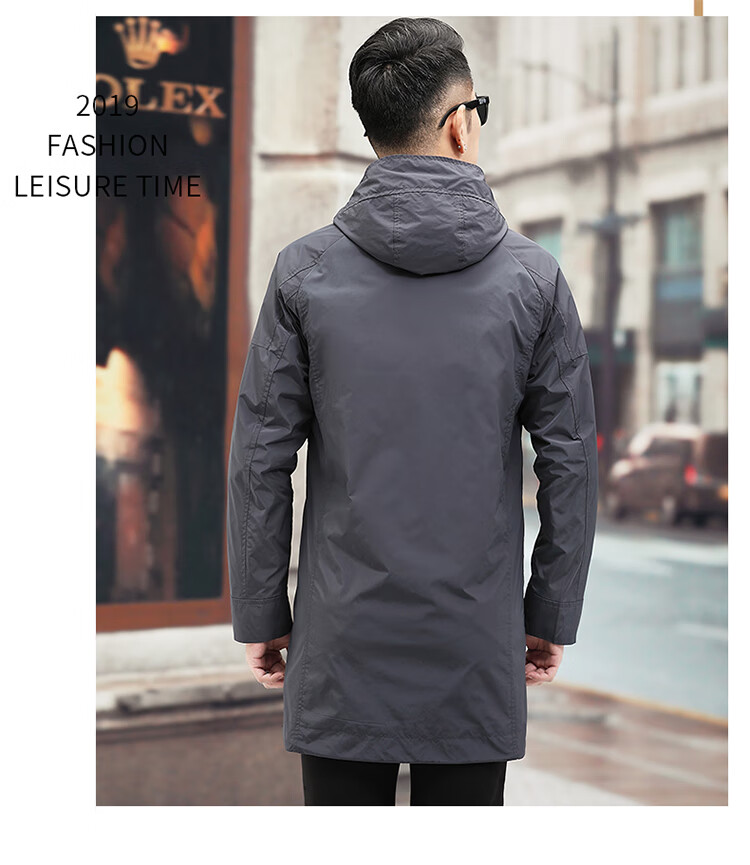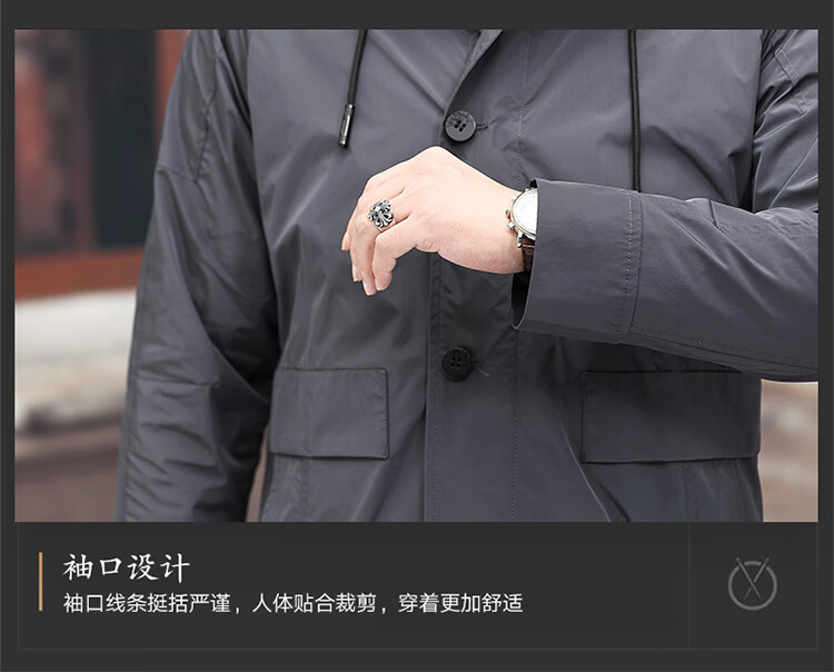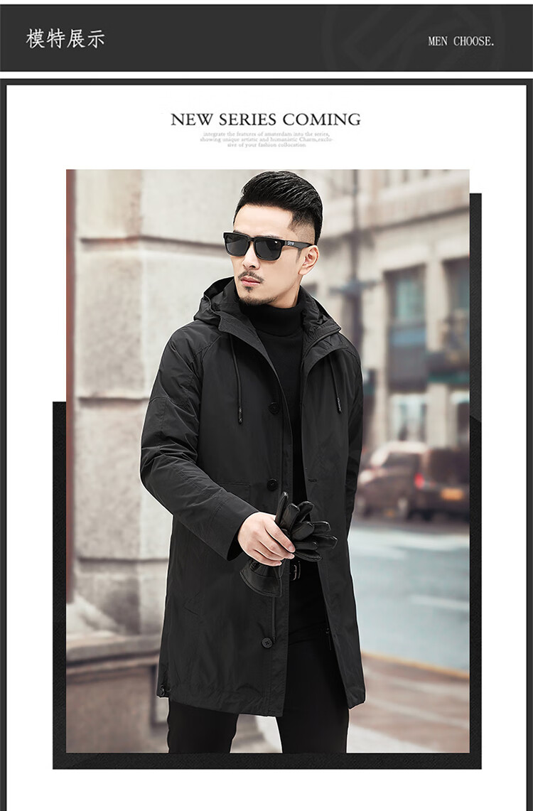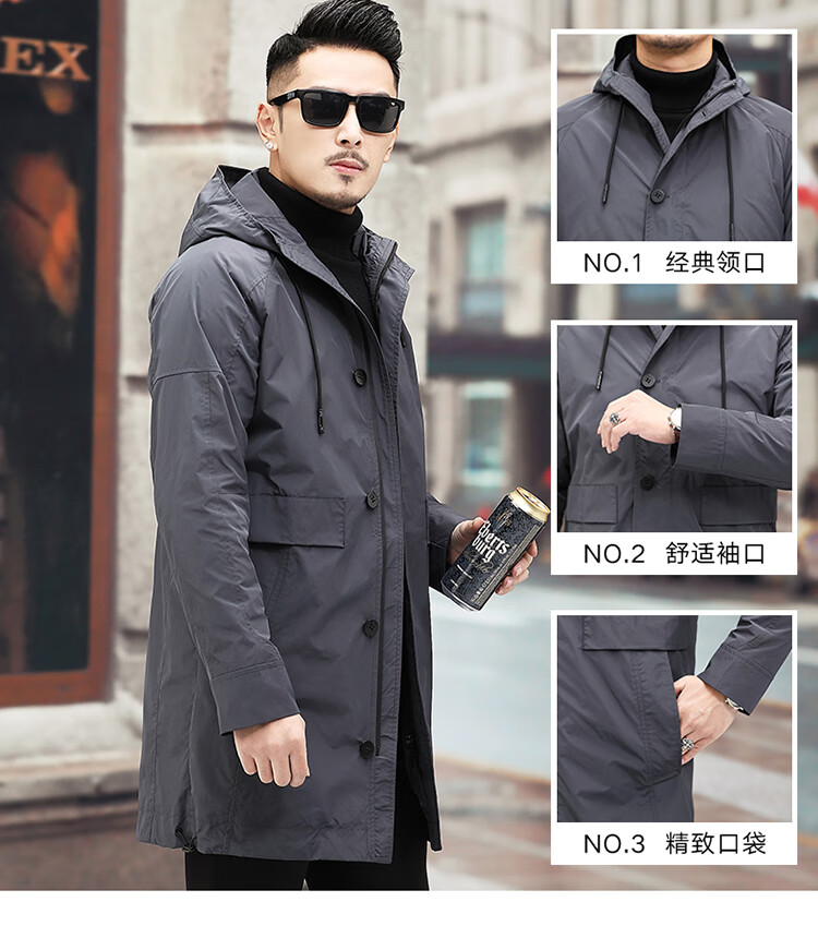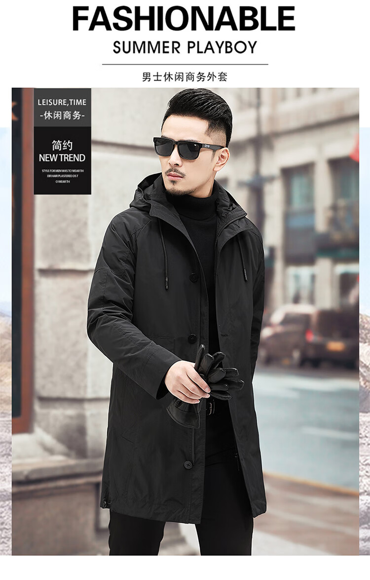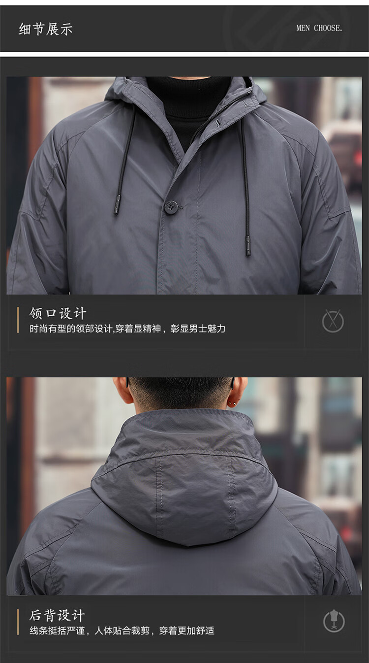 Luo Meng high-end windbreaker men's spring and autumn thickened warm business casual mid-length thickened down hooded winter coat FY192213 gray 175/L